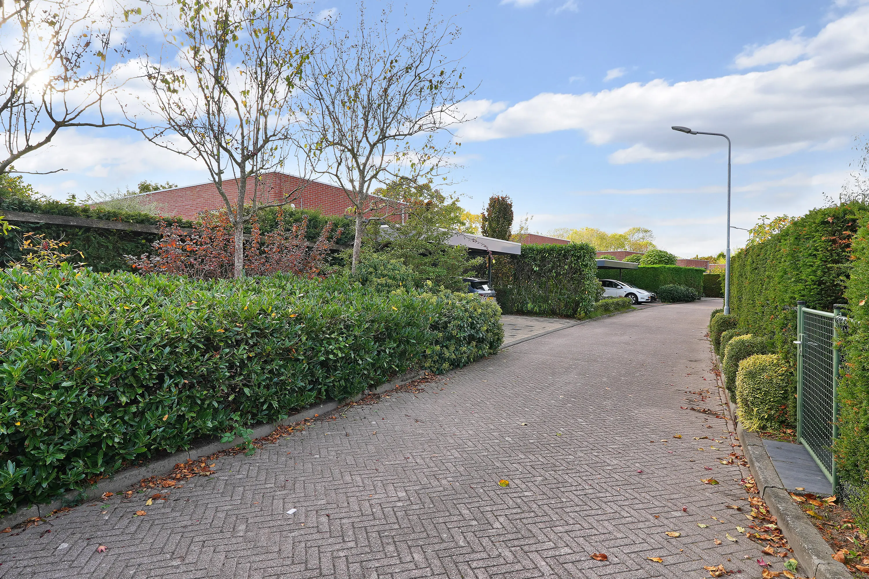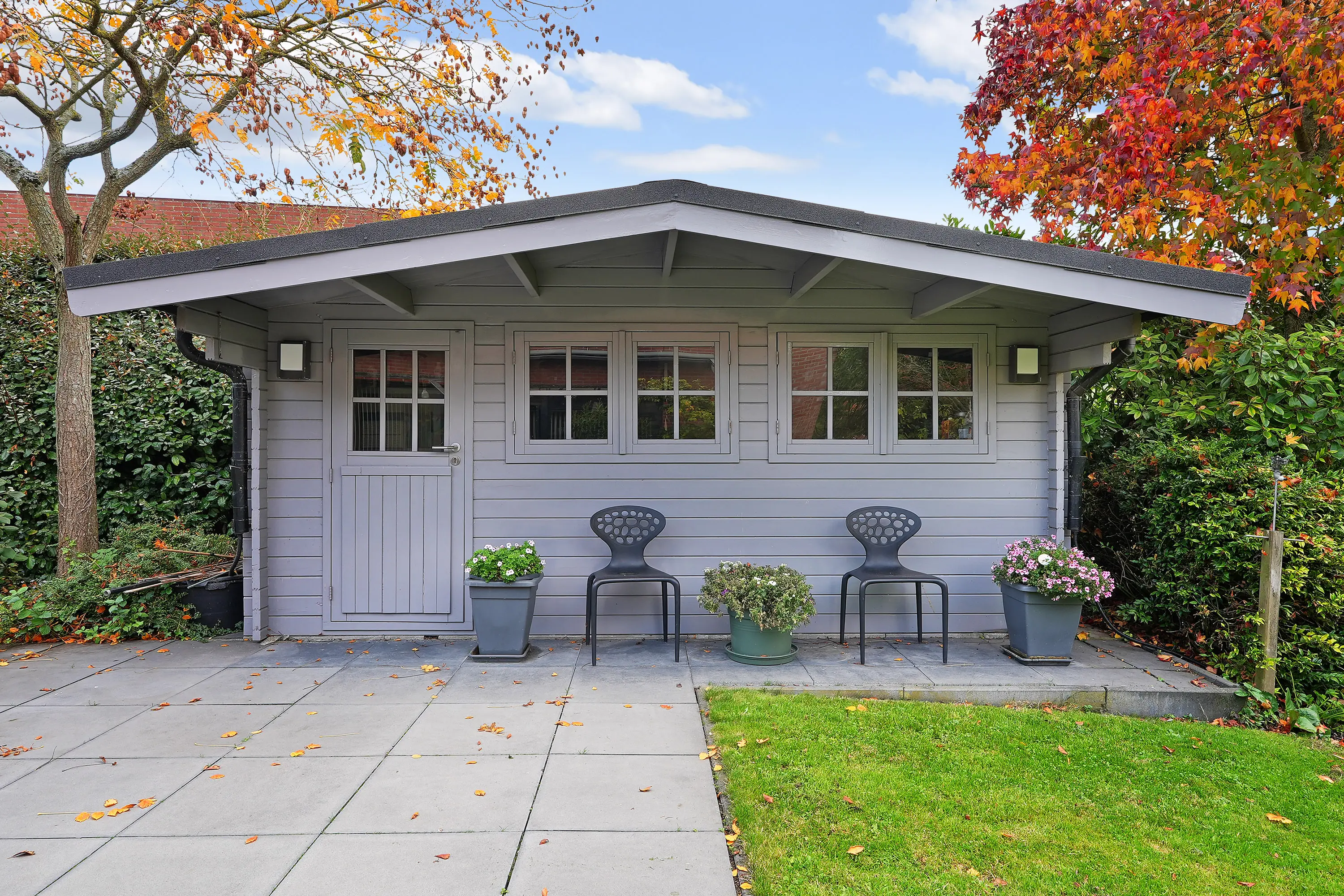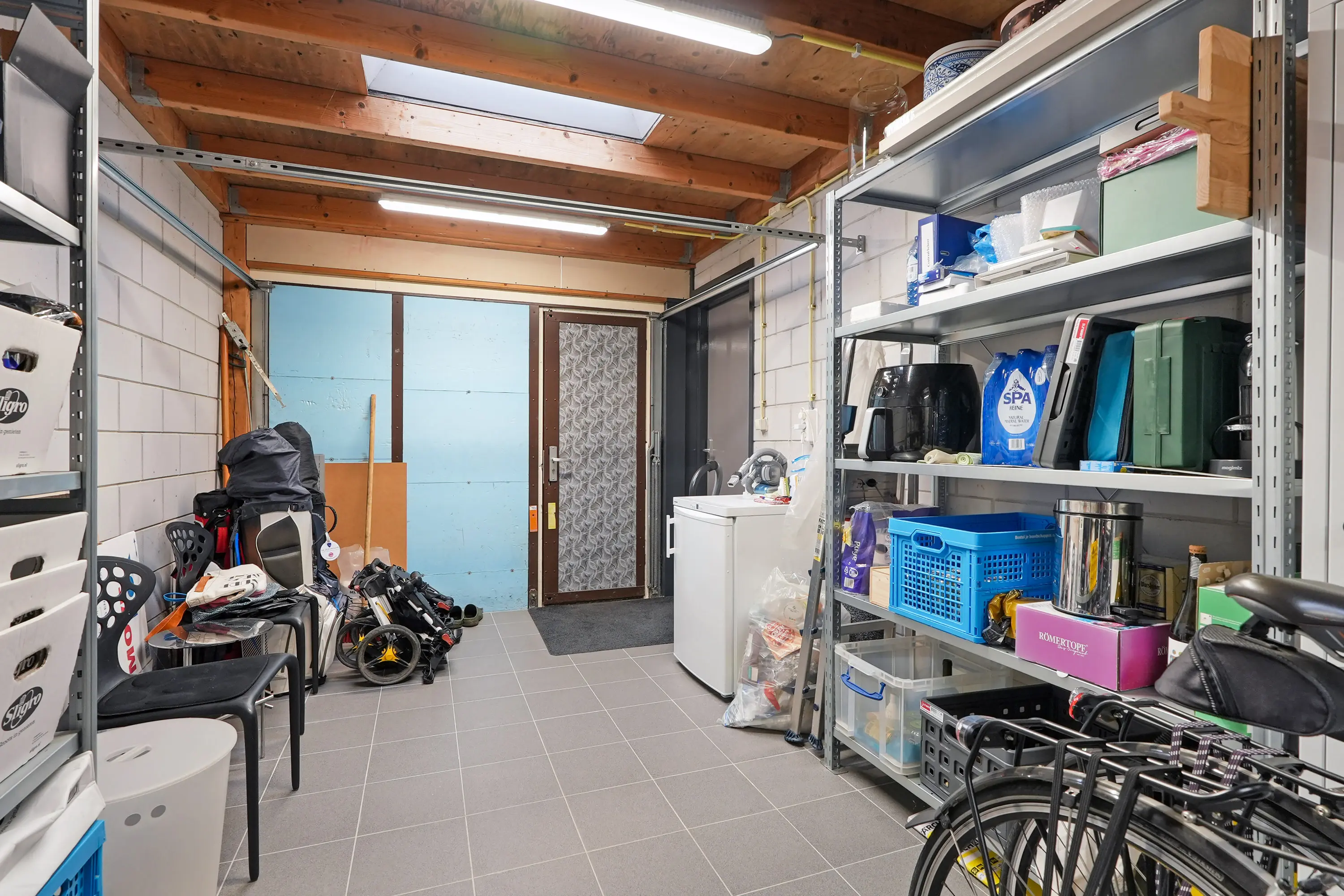 Aan de voorzijde van de woning is een dubbele carport met ruimte voor twee auto’s. Naast de entree bevindt zich een royale, keurig betegelde berging van circa 20 m2, ideaal voor fietsen en opslag. In de tuin bevindt zich een tweede houten berging, ideaal voor het stallen van tuingereedschap. De buitenruimte is met zorg onderhouden en vormt een waardevolle aanvulling op het totaalbeeld van deze stijlvolle stadsvilla aan het water.