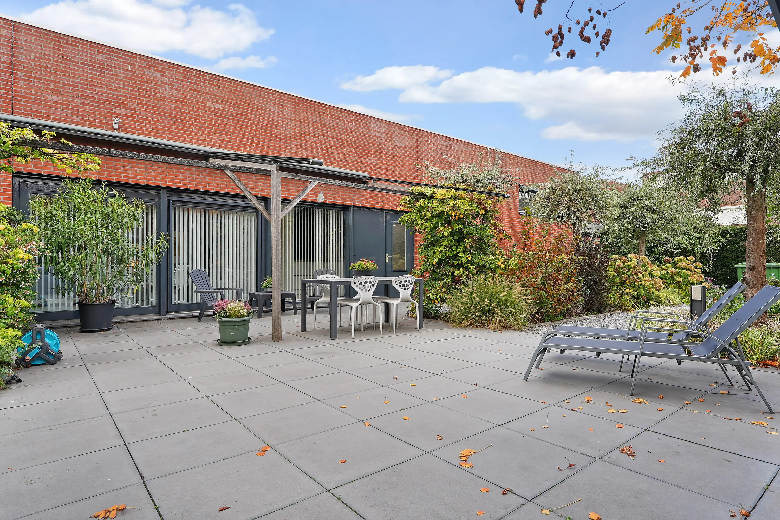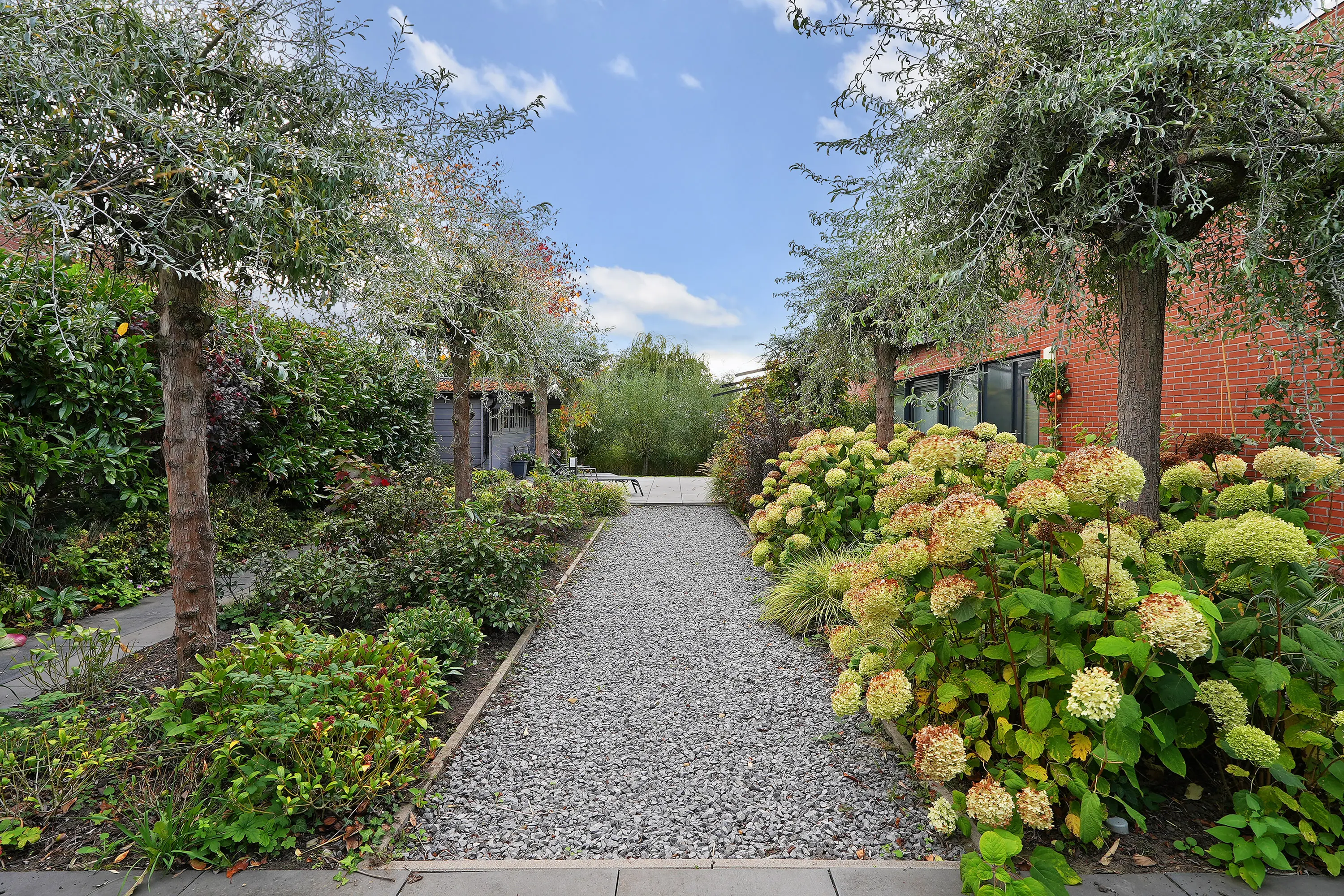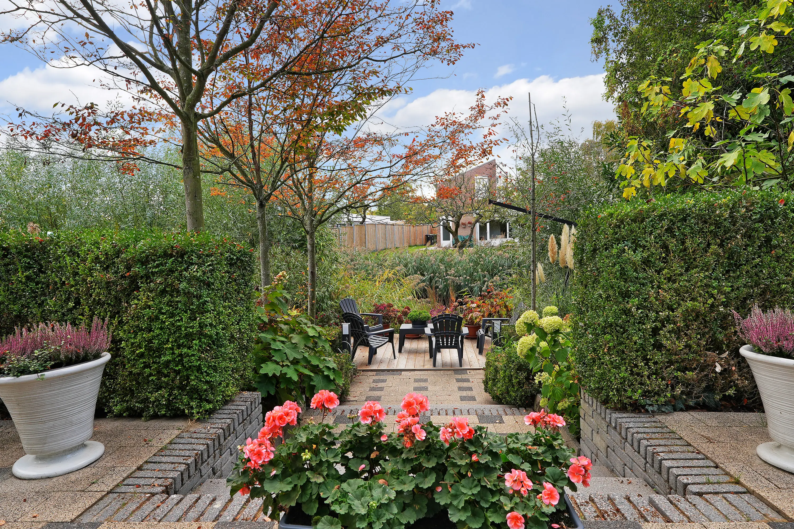 De tuin, ontworpen en aangelegd door Jan Pouwelse Groendoeners, vormt een harmonieuze verlenging van het interieur en past perfect bij de architectuur van de woning. Het perceel van 860 m² is fraai ingericht met volwassen beplanting, een verzorgd gazon en meerdere zonneterrassen die uitnodigen tot ontspannen en buitenleven. Aan de waterzijde bevindt zich een houten vlonder (2023), een heerlijke plek om in alle rust te genieten van het uitzicht en de zon. De tuin biedt optimale privacy en een aangename balans tussen openheid en geborgenheid.
