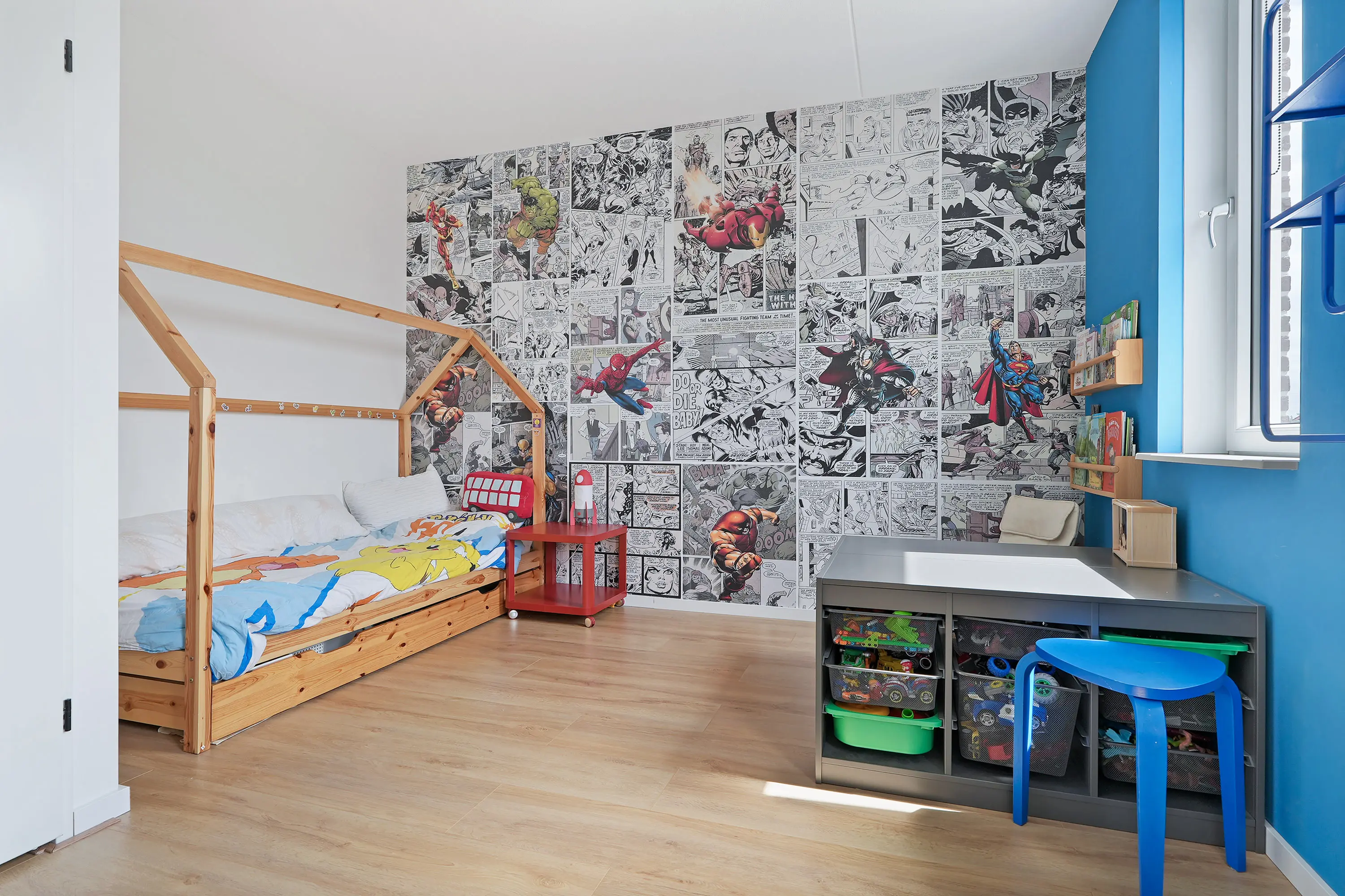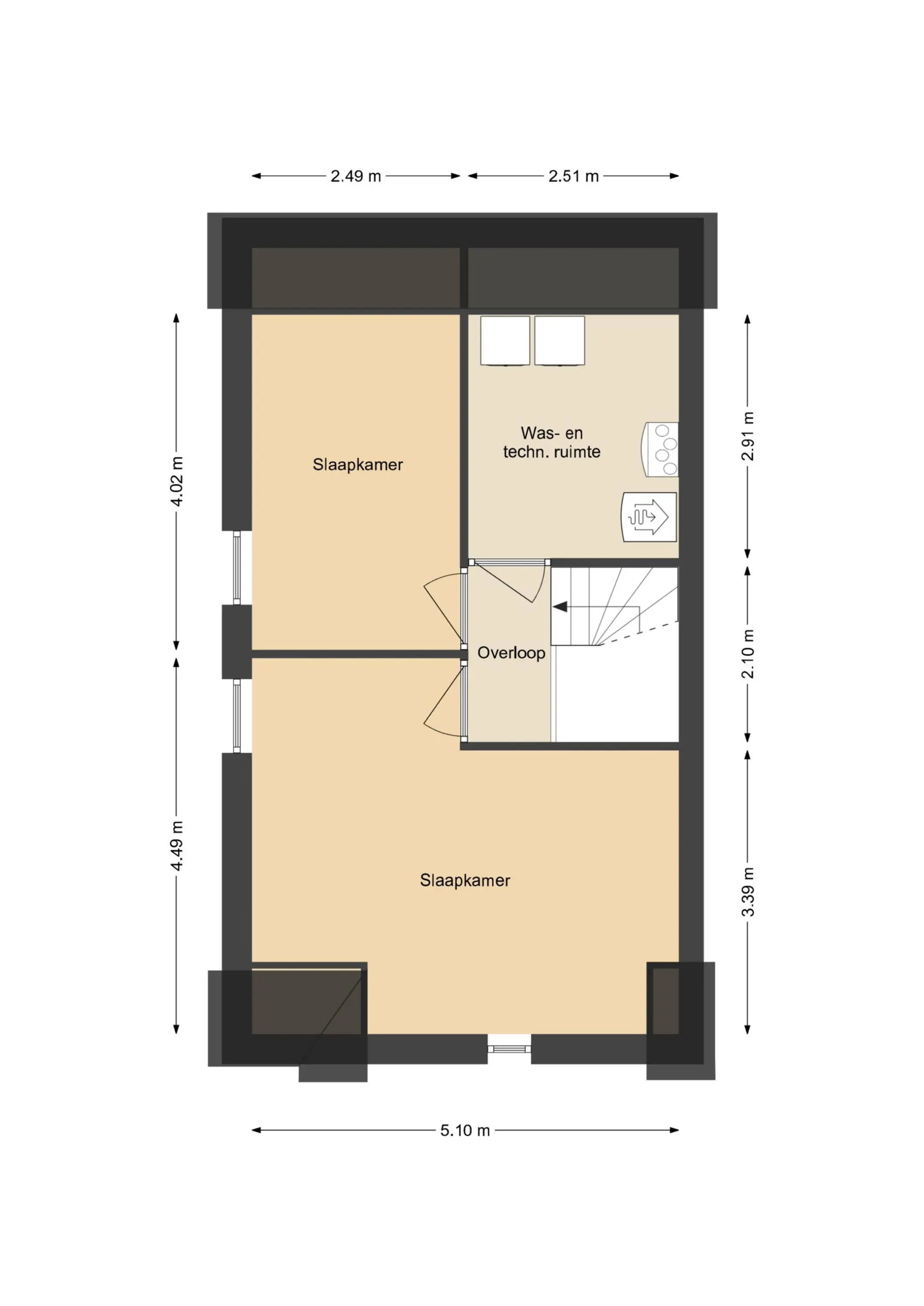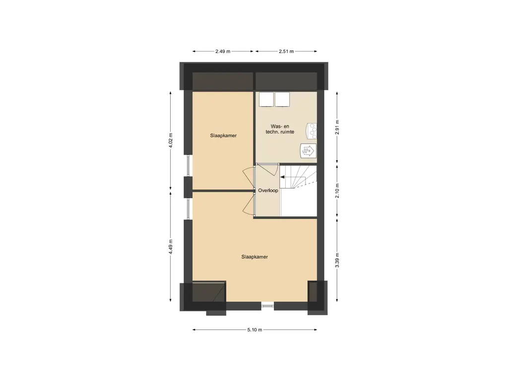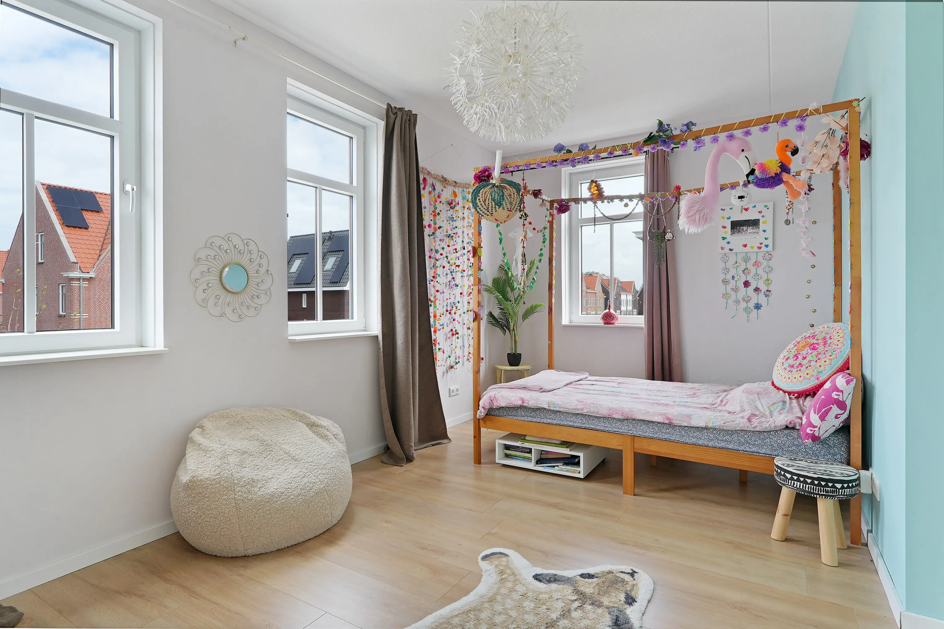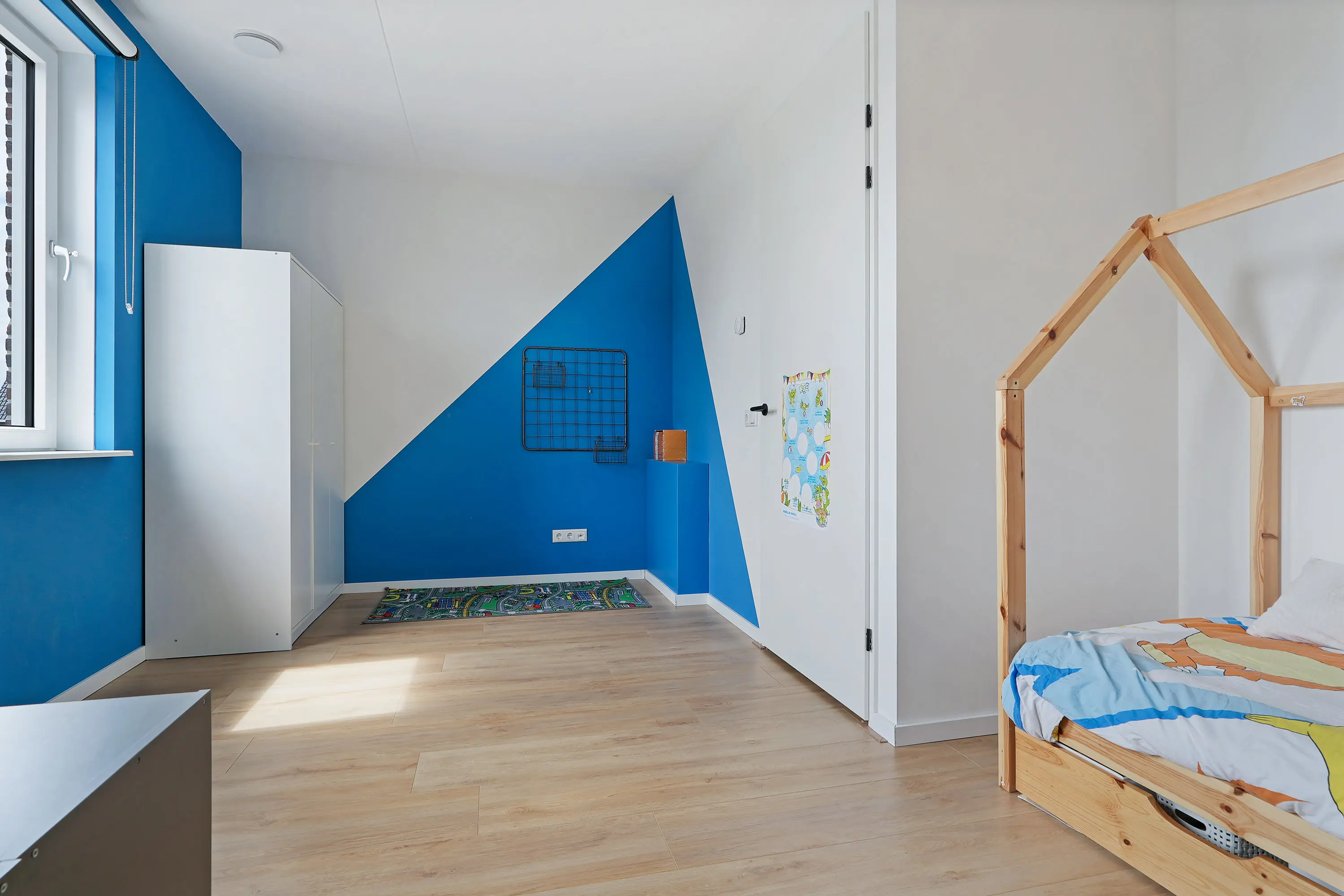 Een volwaardige verdieping met twee slaapkamers, waaronder een unieke ouderslaapkamer onder het karakteristieke samengestelde dak. De hoge nok maakt deze ruimte indrukwekkend. Daarnaast bevindt zich hier een aparte technische ruimte met wasmachineopstelling, warmtepomp en omvormer.