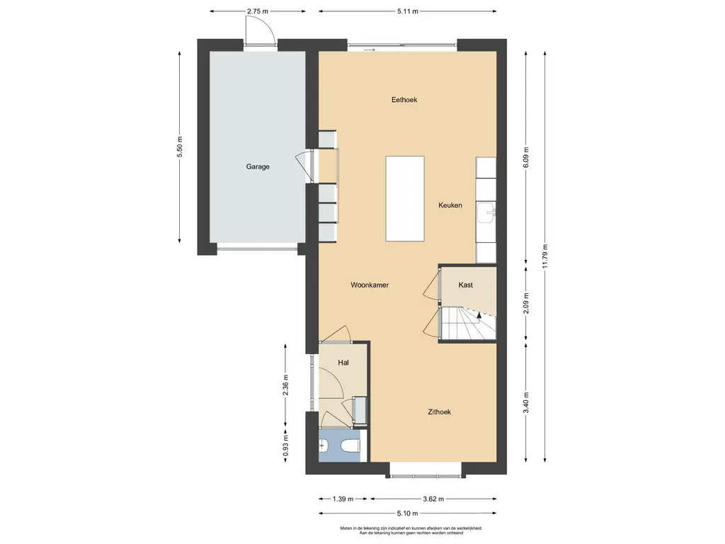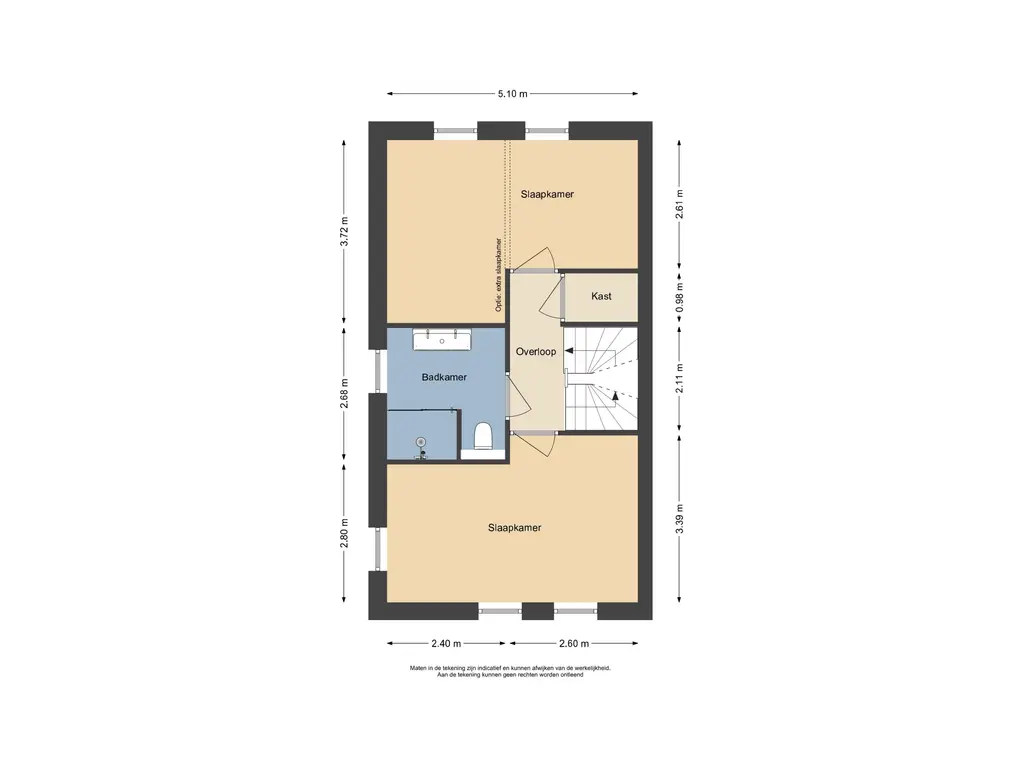 Deze informatie is door ons met de nodige zorgvuldigheid samengesteld. Onzerzijds wordt echter geen enkele aansprakelijkheid aanvaard voor enige onvolledigheid, onjuistheid of anderszins, dan wel de gevolgen daarvan. Alle opgegeven maten en oppervlakten zijn indicatief.