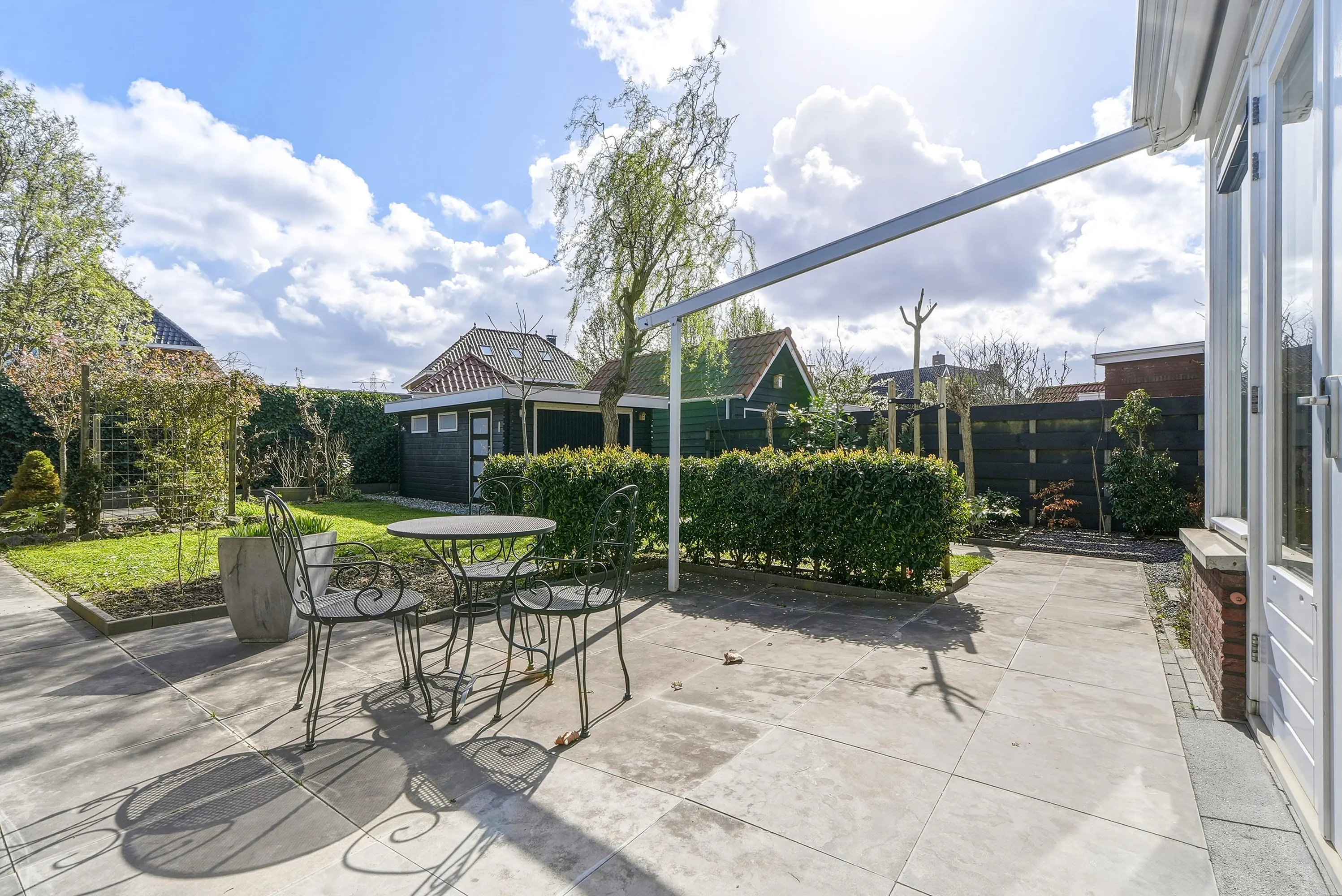 De ruime en verzorgde tuin is voorzien van zeer veel privacy, grote pergolino, vrijstaande berging met elektra en heerlijk zonneterras. Aan de voorzijde een diepe tuin, carport en eigen oprit voor meerdere auto's. In de carport bevindt zich een poort naar de achtertuin.