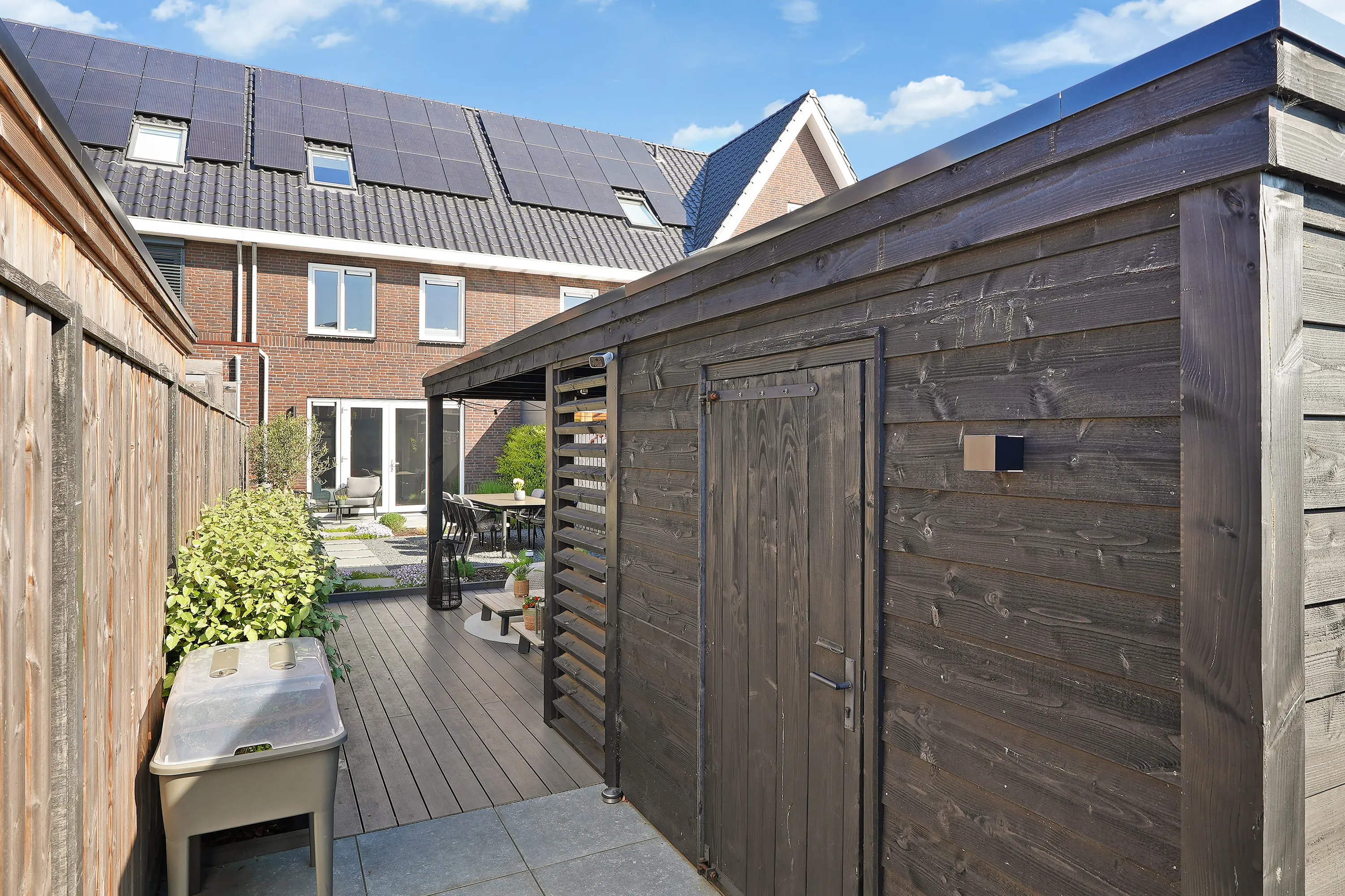 De achtertuin van Jazzroute 85 is werkelijk een parel: prachtig aangelegd met meerdere terrassen, een overkapping en veel groen. Hier kunt u optimaal het gehele jaar genieten van de zon vanwege de zuid gelegen tuin. Maar ook privacy en buitenleven vindt u hier volop terug! De royale berging is ideaal voor fietsen, tuinspullen en extra opslag. Tevens beschikt u hier over een achterom.