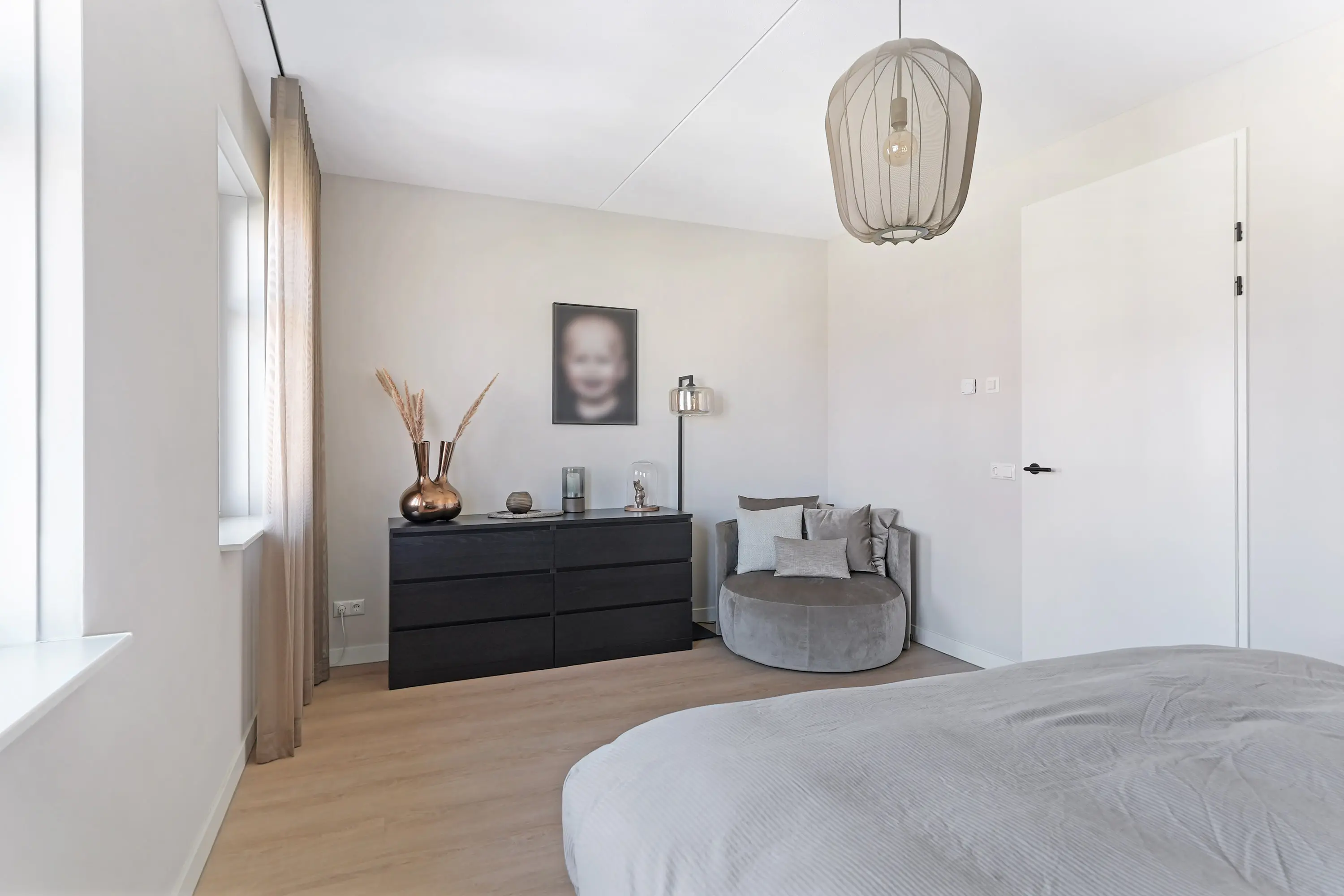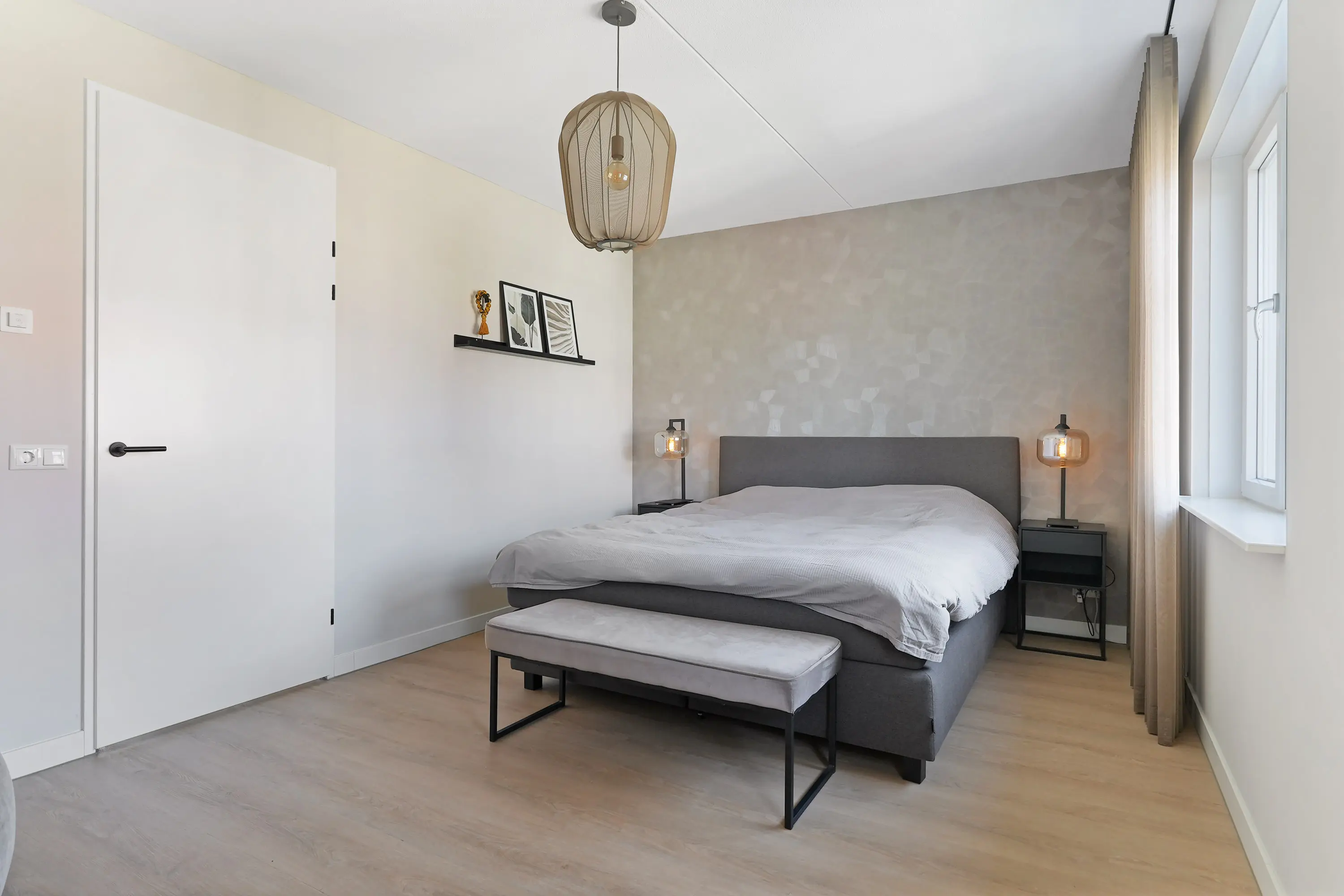 De woning heeft vier ruime slaapkamers, allen strak en modern afgewerkt. De slaapkamer aan de voorzijde beschikt over rolluiken. De badkamer is van alle luxe voorzien: ligbad, inloopdouche en brede wastafel met spiegel. Hier kunt u iedere dag genieten van uw eigen wellnessmoment.