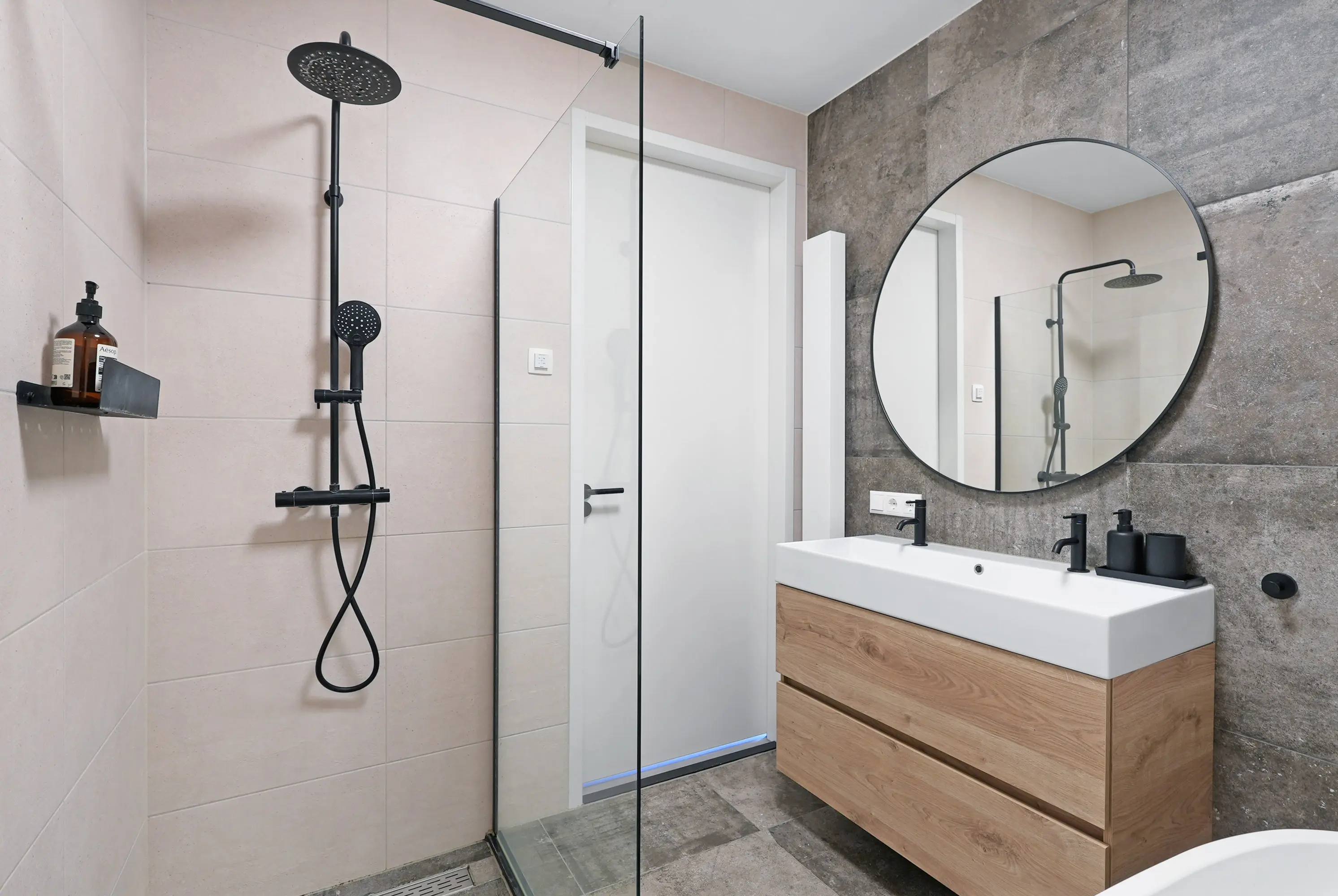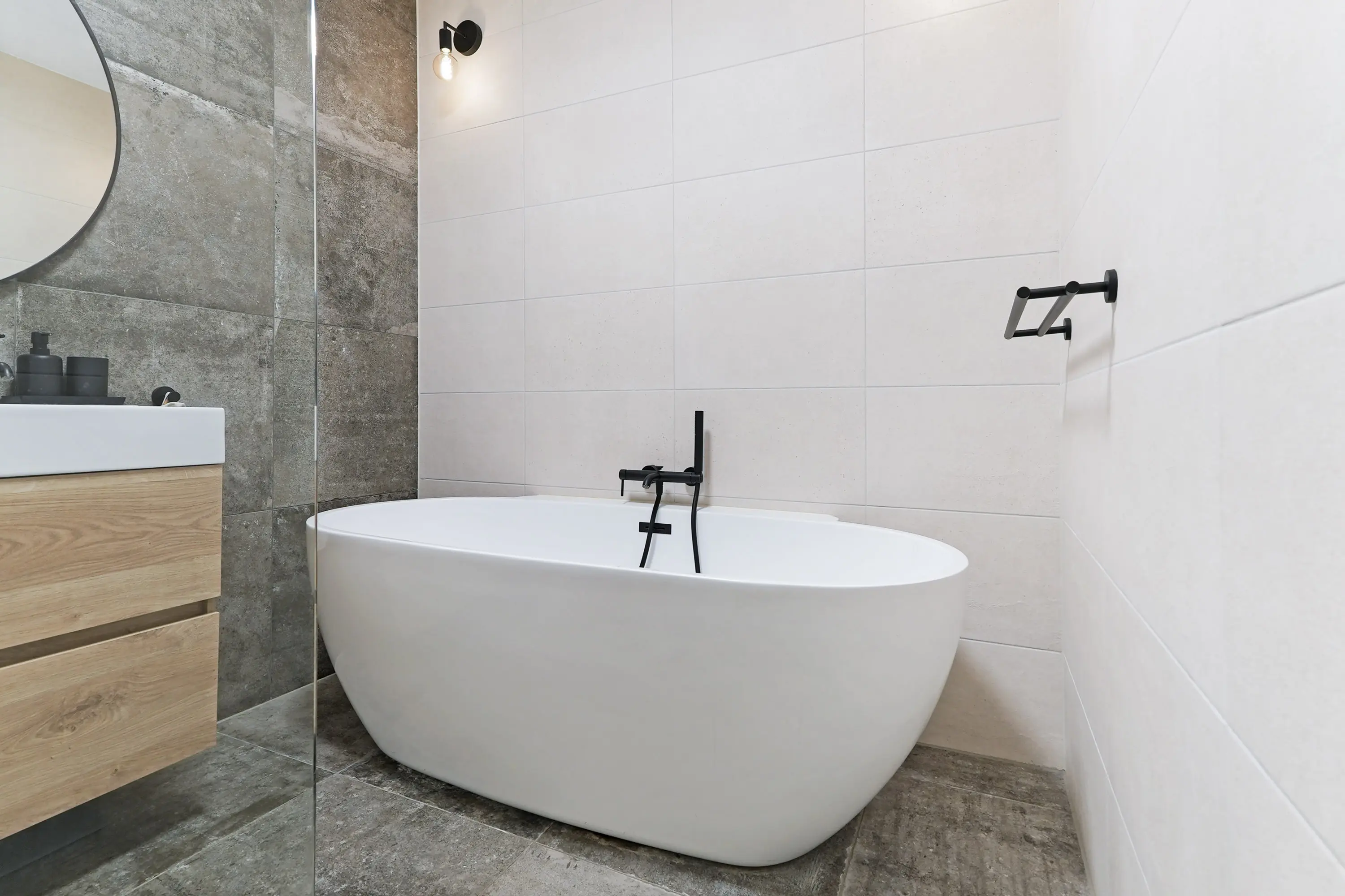 - Luxe badkamer met ligbad, inloopdouche en brede wastafel