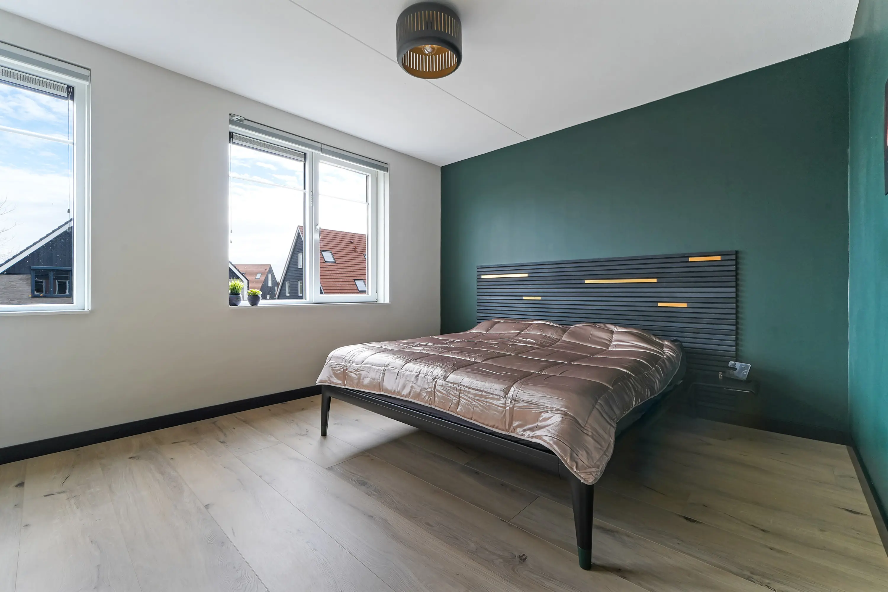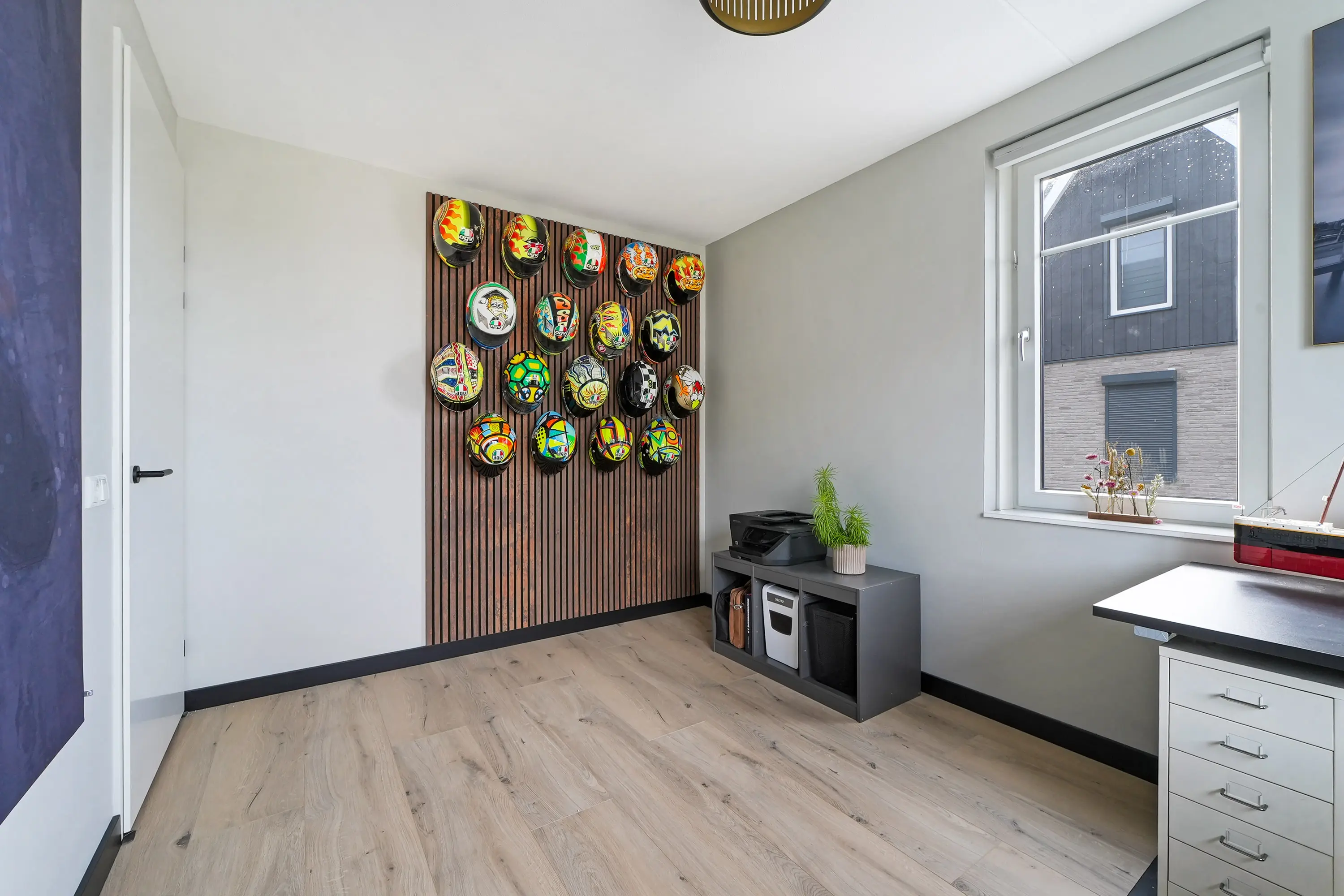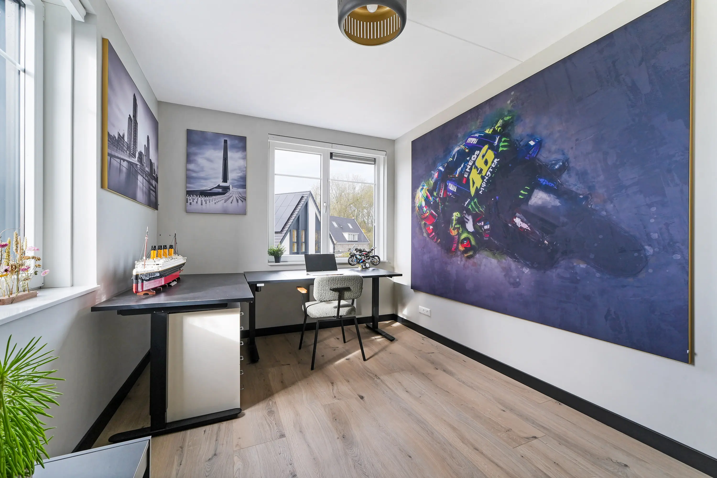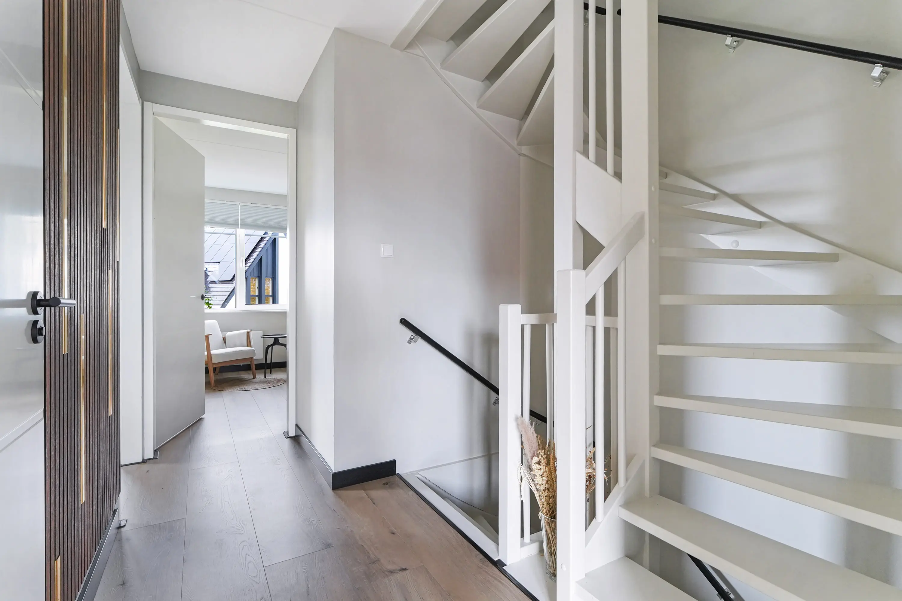 Via de vaste trap bereikt u de volwaardige tweede verdieping met nog twee riante slaapkamers. Dankzij de hoge nok en verlengde kap voelen beide kamers opvallend ruim aan. Daarnaast vindt u hier een technische ruimte met aansluitingen voor wasmachine en droger, de warmtepomp, omvormer en mechanische ventilatie.