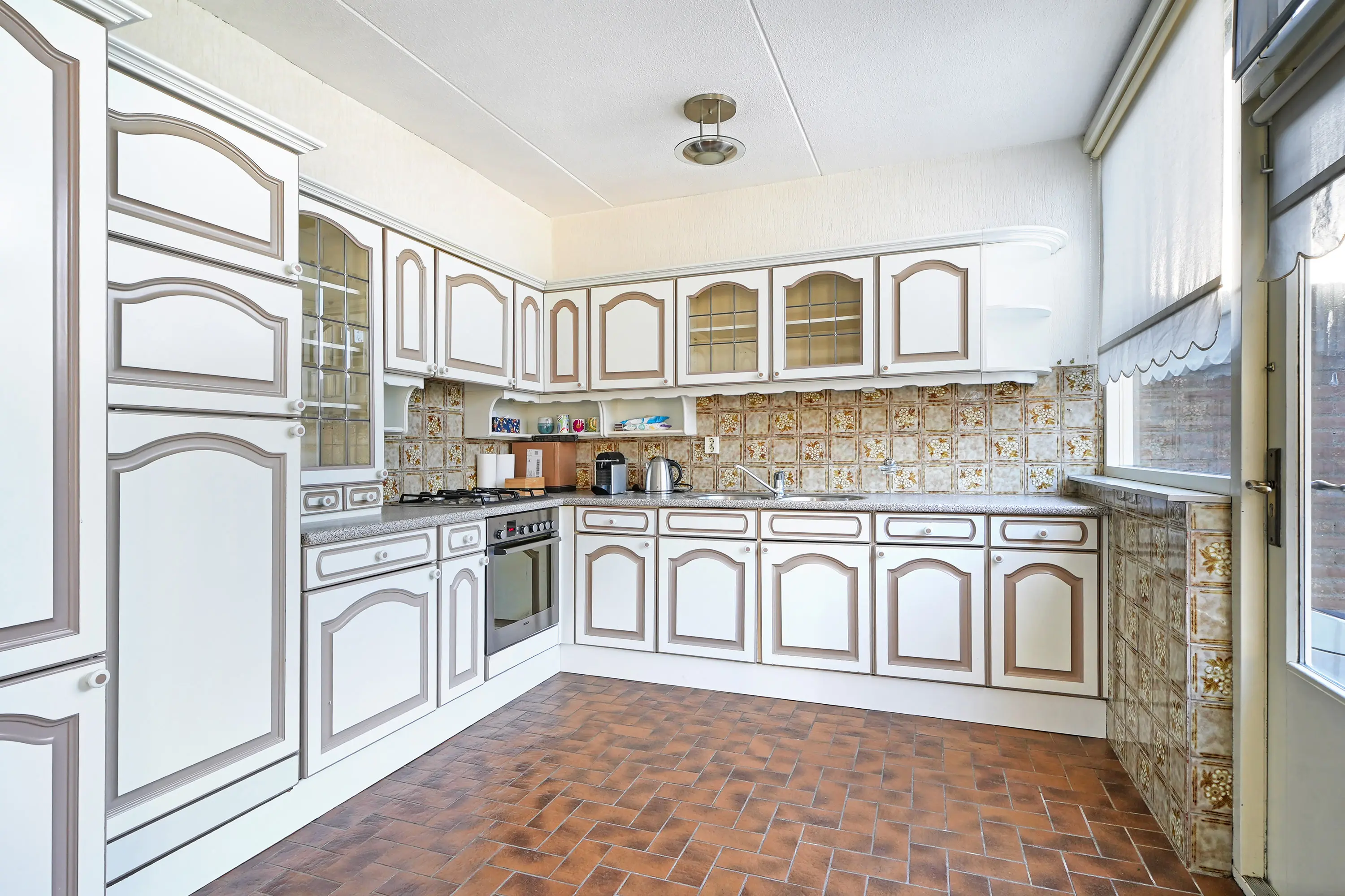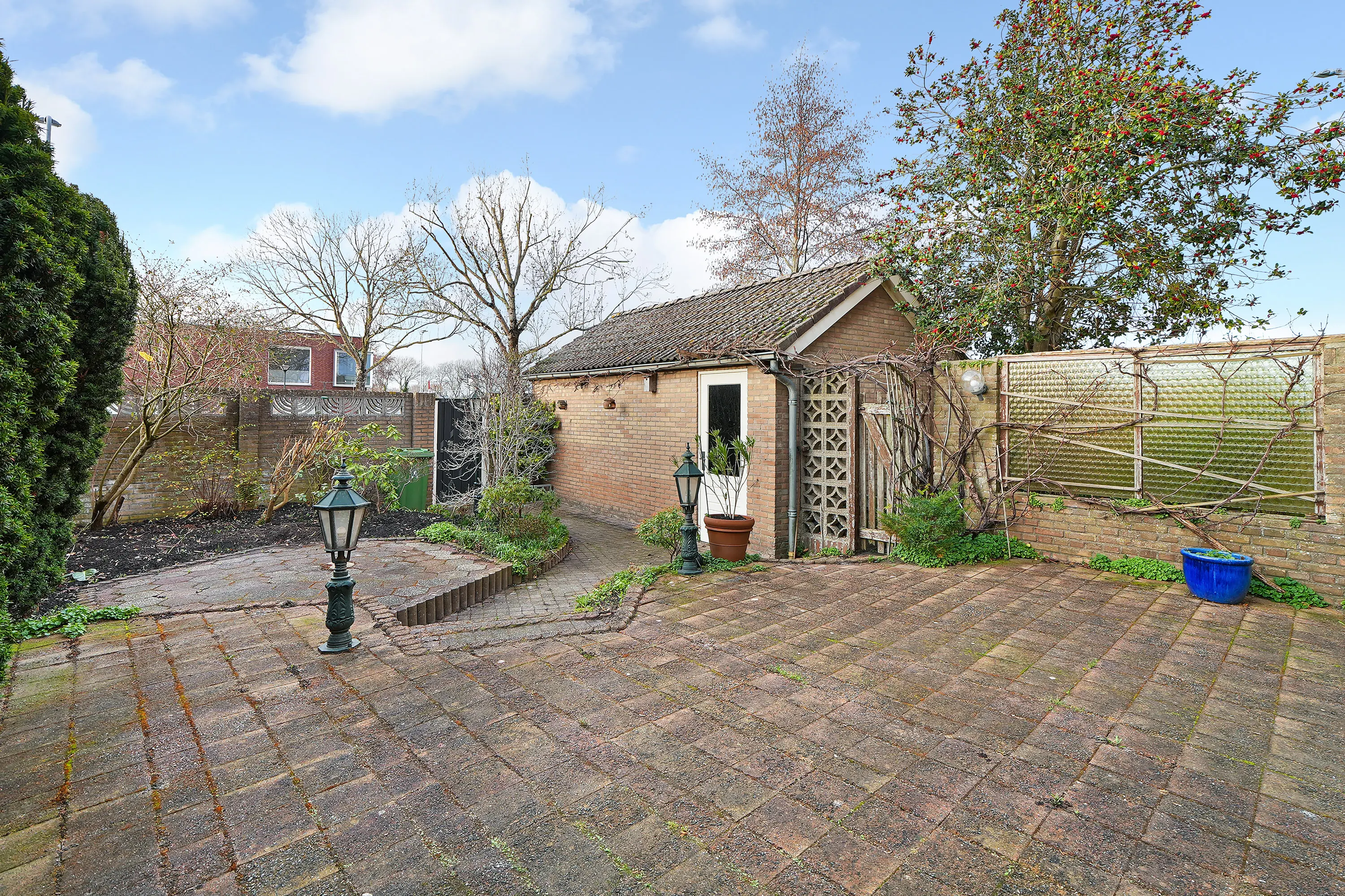 De verzorgde en ruime achtertuin is voorzien van achterom en vrijstaande, stenen garage met elektra en vliering. Er is tevens een diepe voortuin.