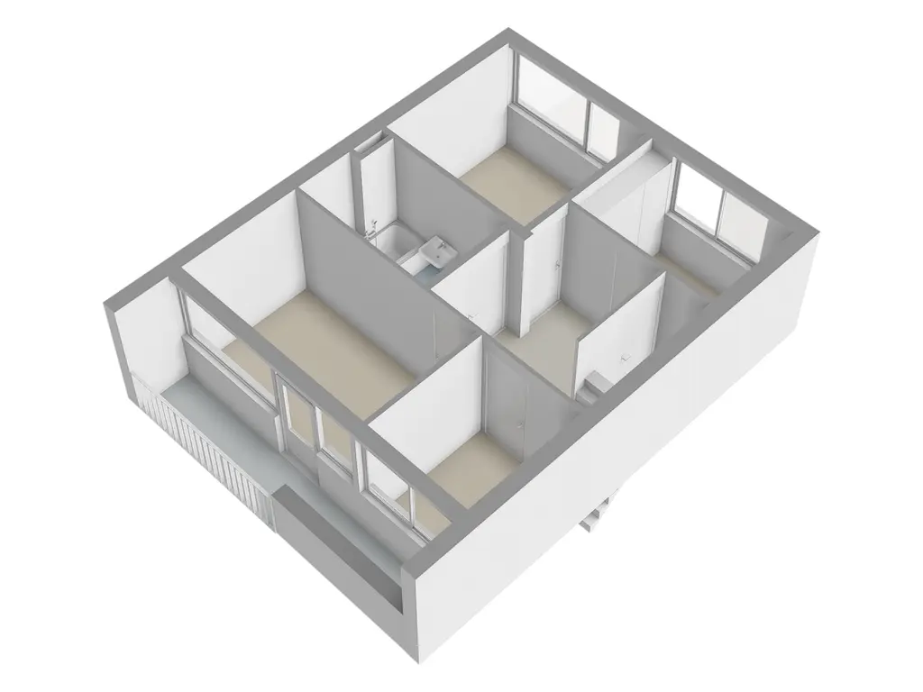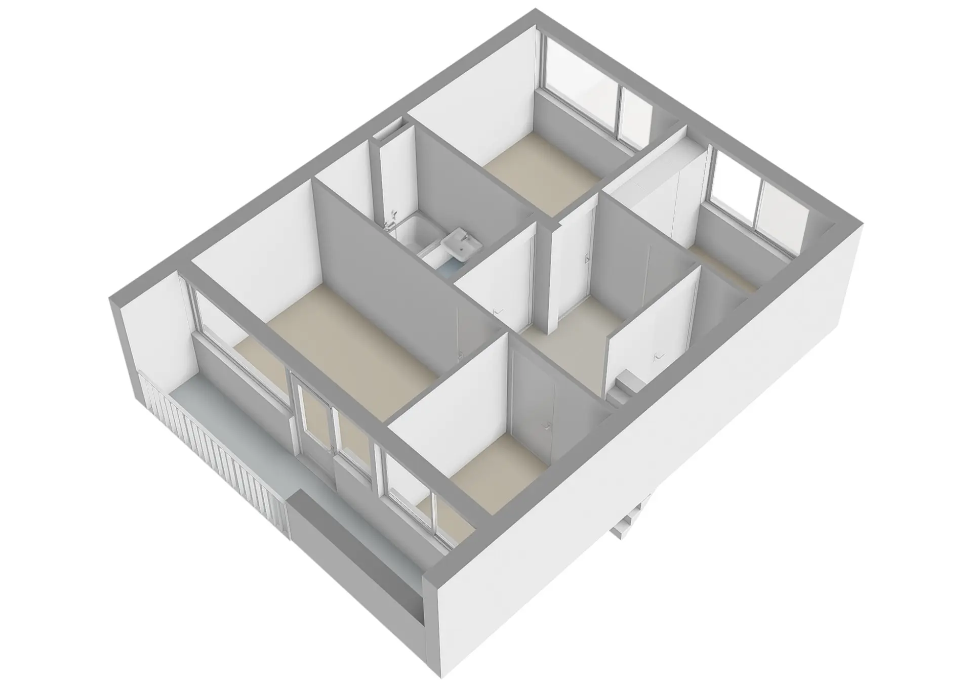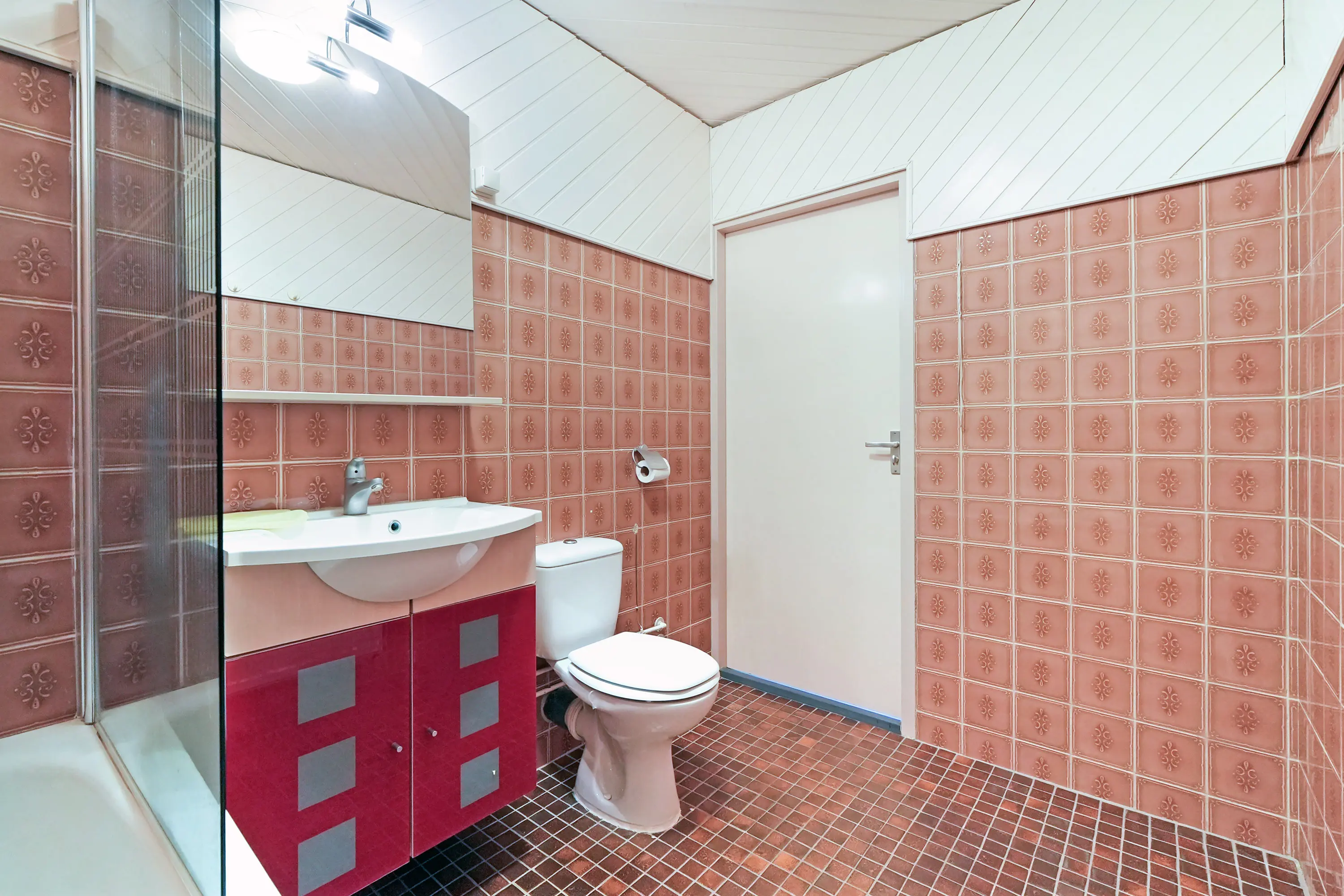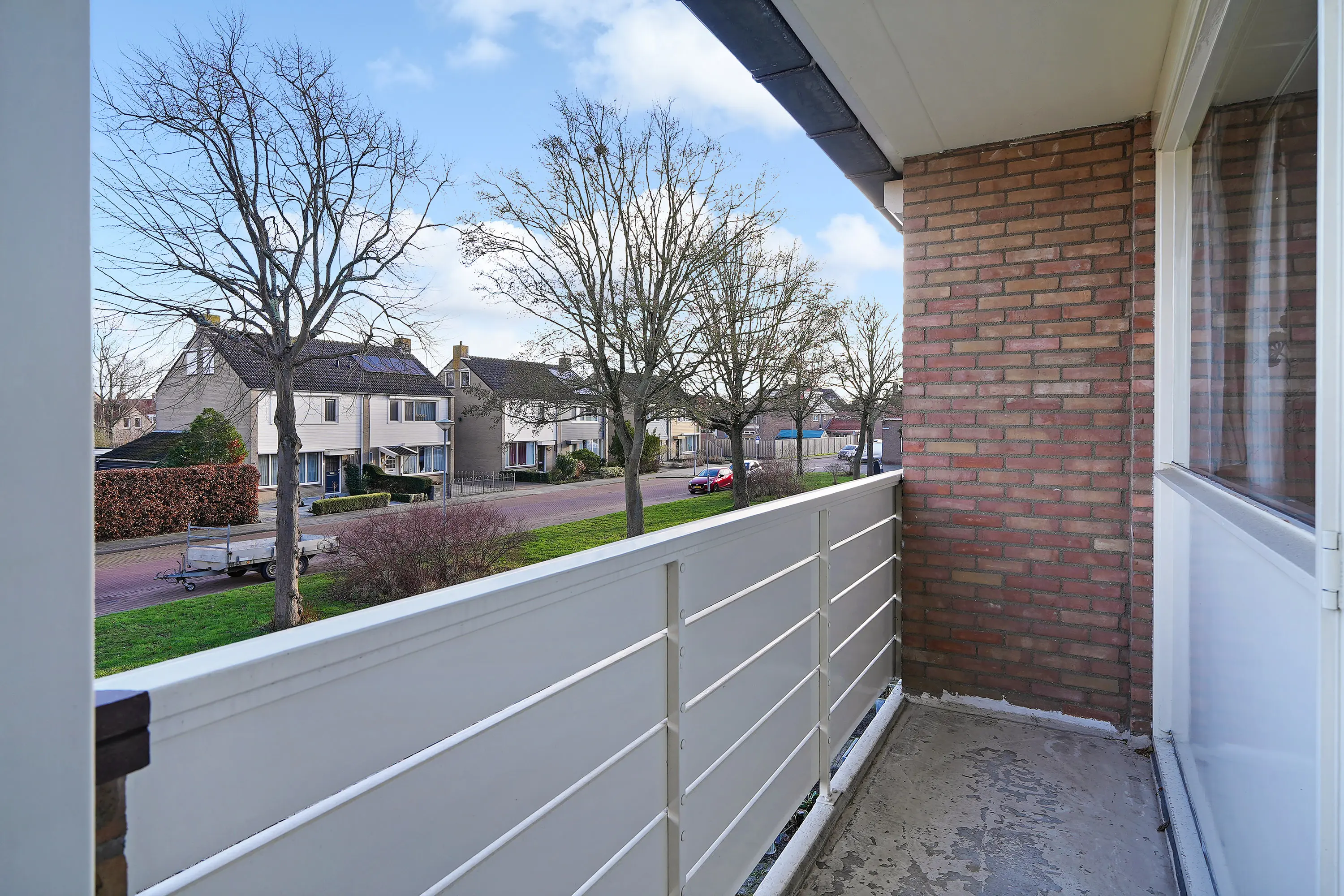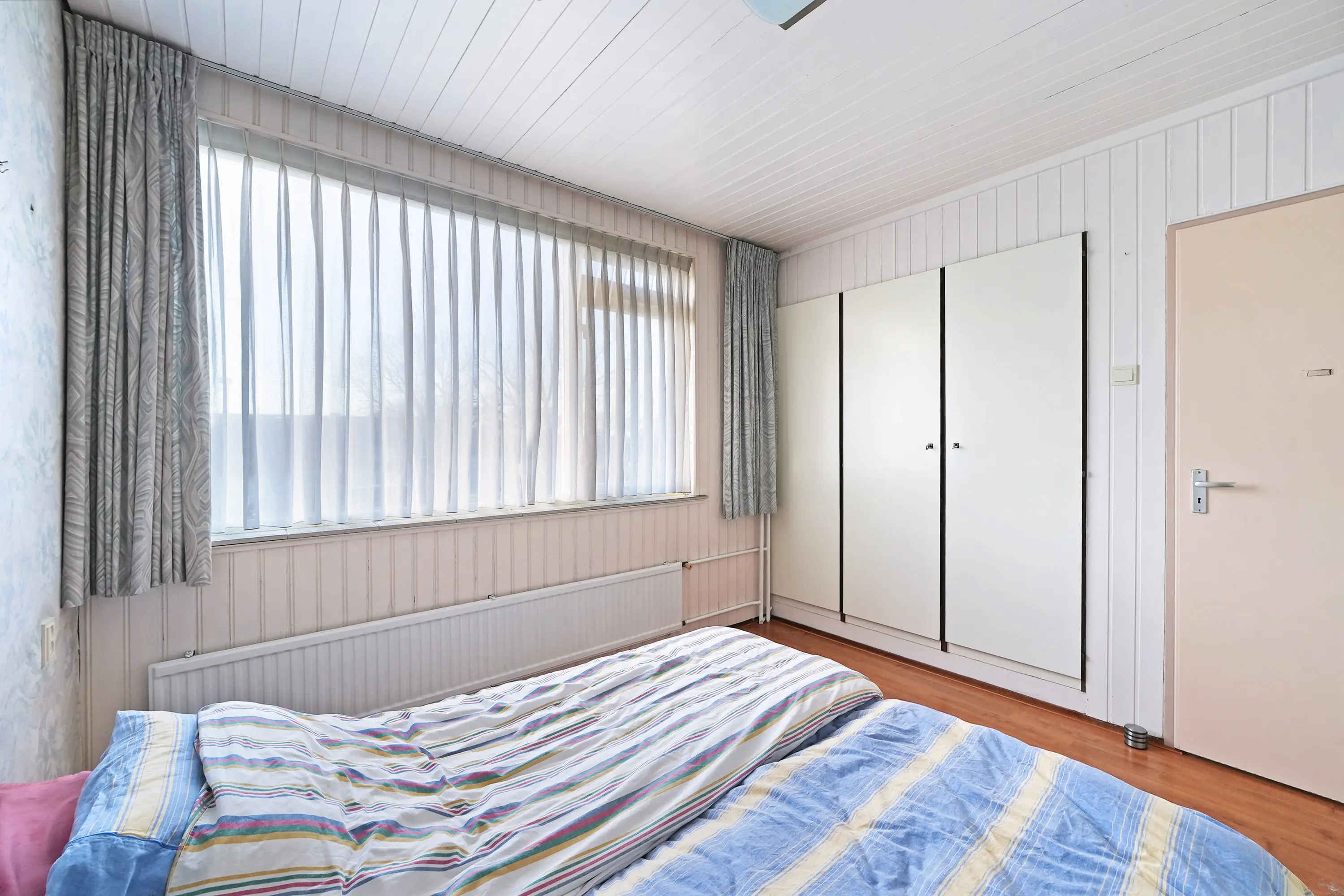 Ruime overloop met vaste trap naar de 2e verdieping, vier fijne slaapkamers waarvan twee met vaste kastruimte, één met wastafel en één met toegang tot de loggia een de voorzijde. Daarnaast bevindt zich hier nog een nette badkamer voorzien van ligbad, wastafelmeubel, toilet en wasmachineaansluiting.