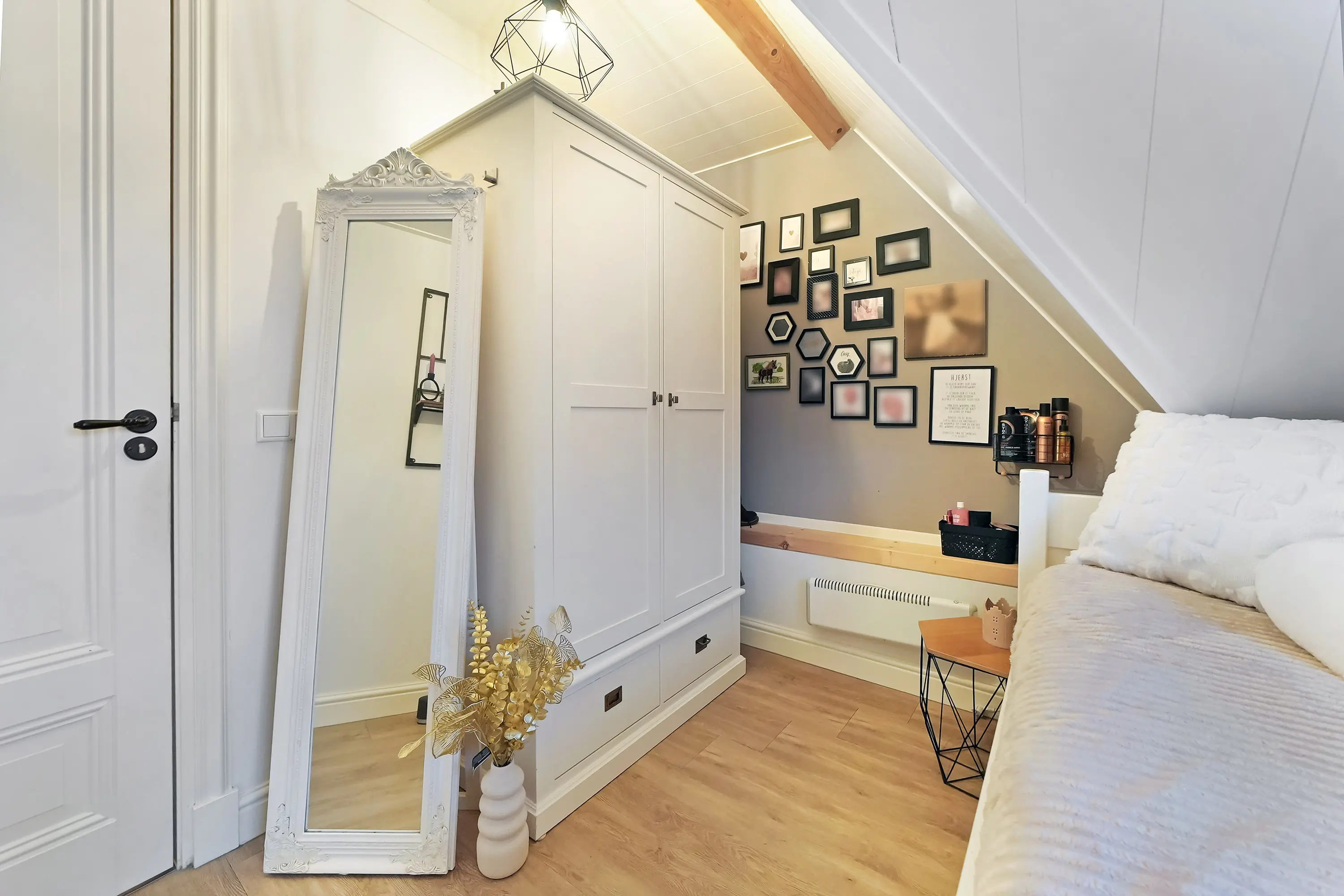 Op de eerste verdieping bevinden zich meerdere ruime slaapkamers, waardoor deze woning uitermate geschikt is voor grote gezinnen, thuiswerken of logeergebruik. In totaal beschikt de woning over 8 slaapkamer. De badkamer is zeer netjes uitgevoerd met moderne en tijdloze tegels. Deze beschikt over een brede wastafel, toilet en ruime inloopdouche.