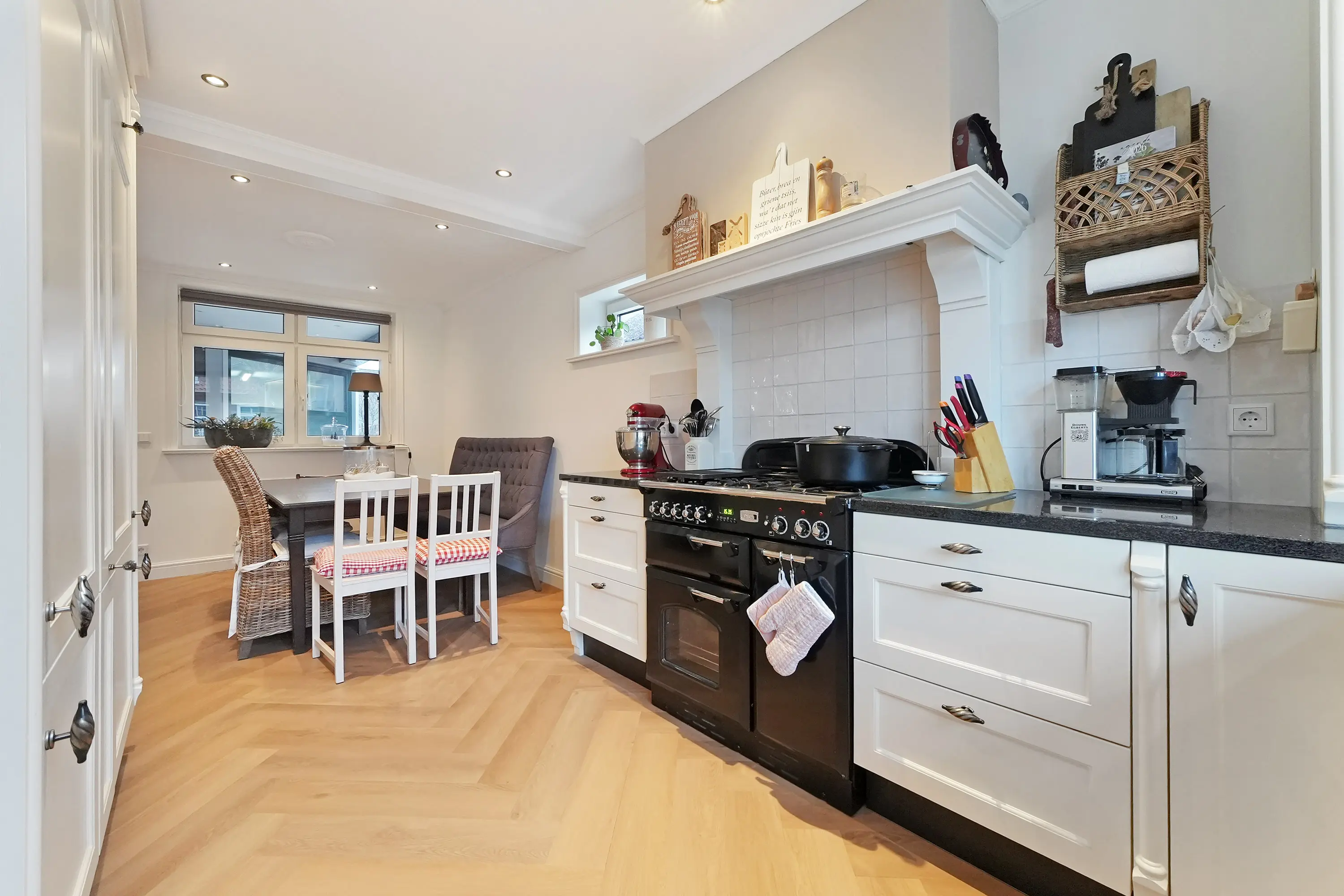 Dankzij de vloerverwarming is het hier het hele jaar door comfortabel wonen. De open keuken sluit naadloos aan op de woonkamer en biedt volop ruimte voor een grote eettafel. De keuken is voorzien van diverse inbouwapparatuur.