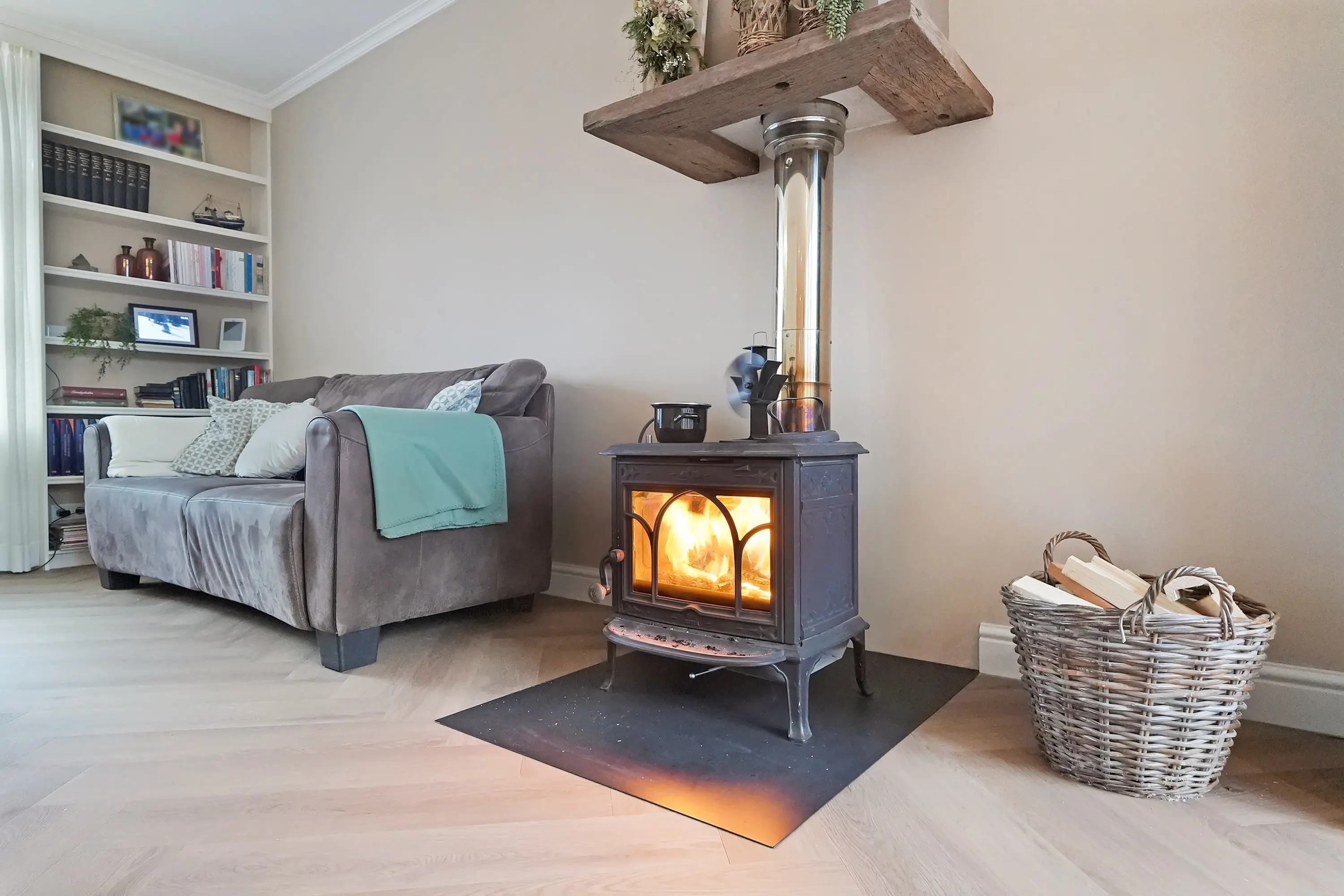Via de entree komt u in de ruime hal met meterkast, toilet en trapopgang naar de verdieping. Vanuit hier komt u in de woon- en eetkamer. De lichte en sfeervolle woonkamer is voorzien van een moderne visgraat vloer en geniet van veel daglicht. De openslaande tuindeuren zorgen voor een mooie verbinding met de tuin. De houtkachel zorgt hier voor extra warmte en gezelligheid!