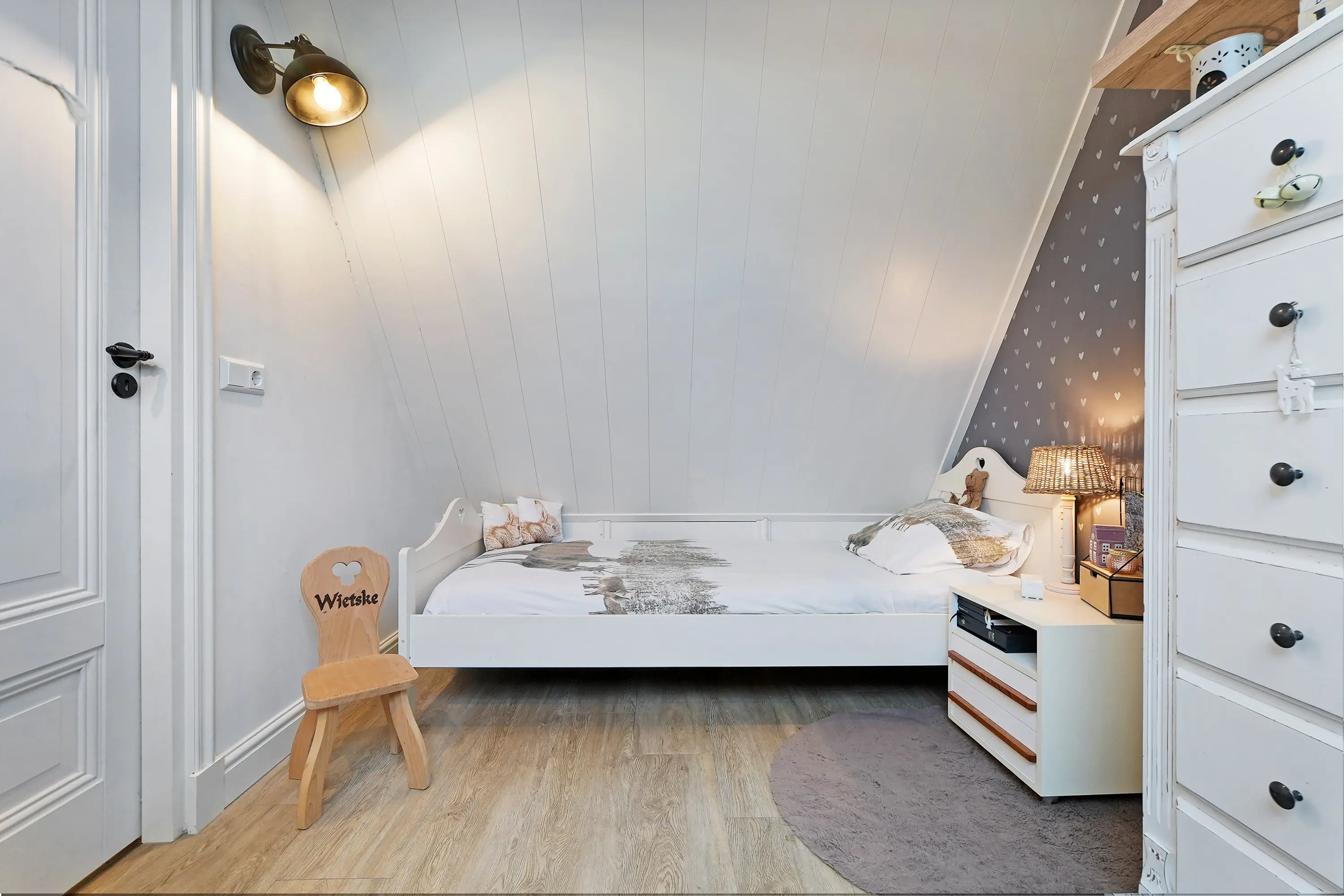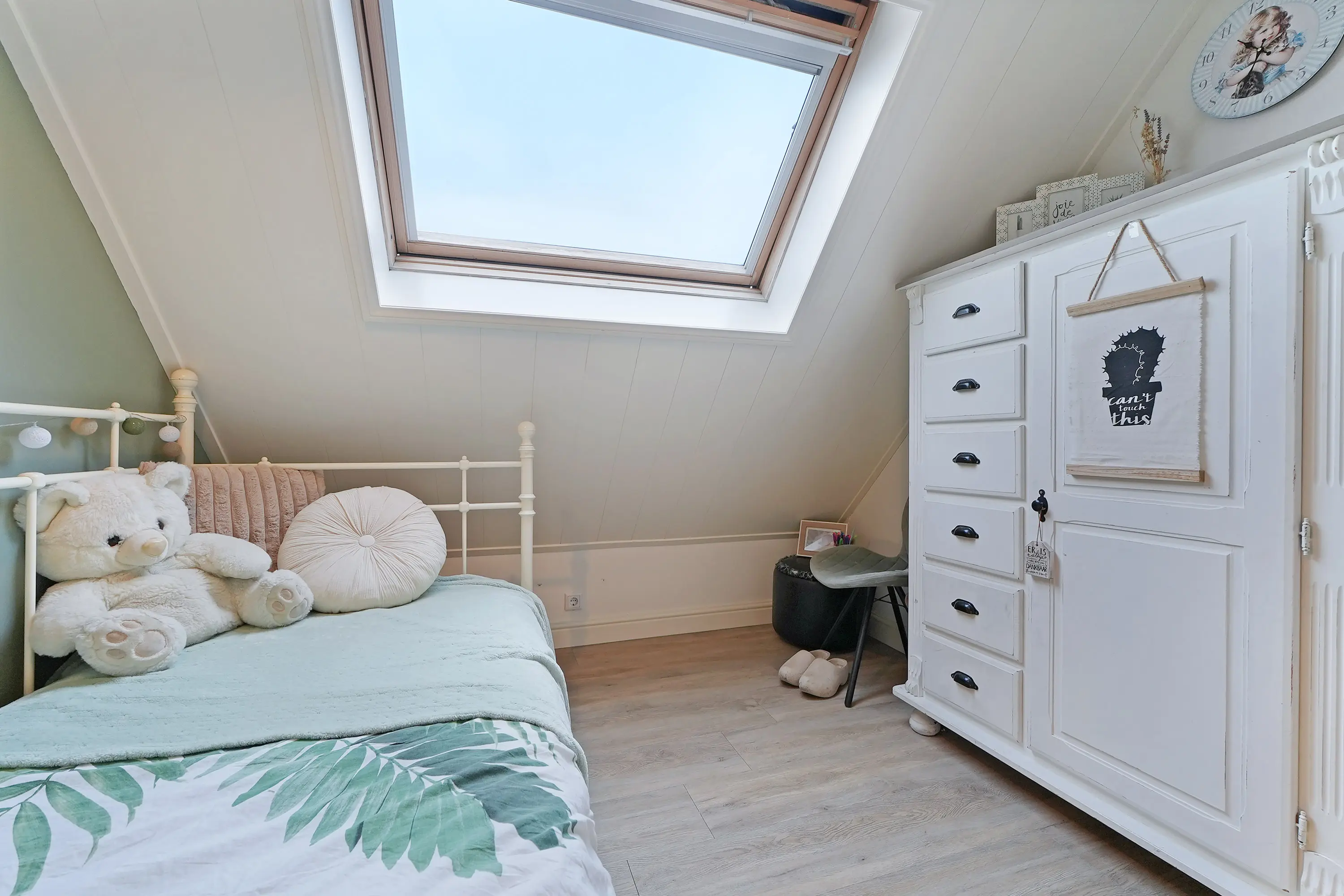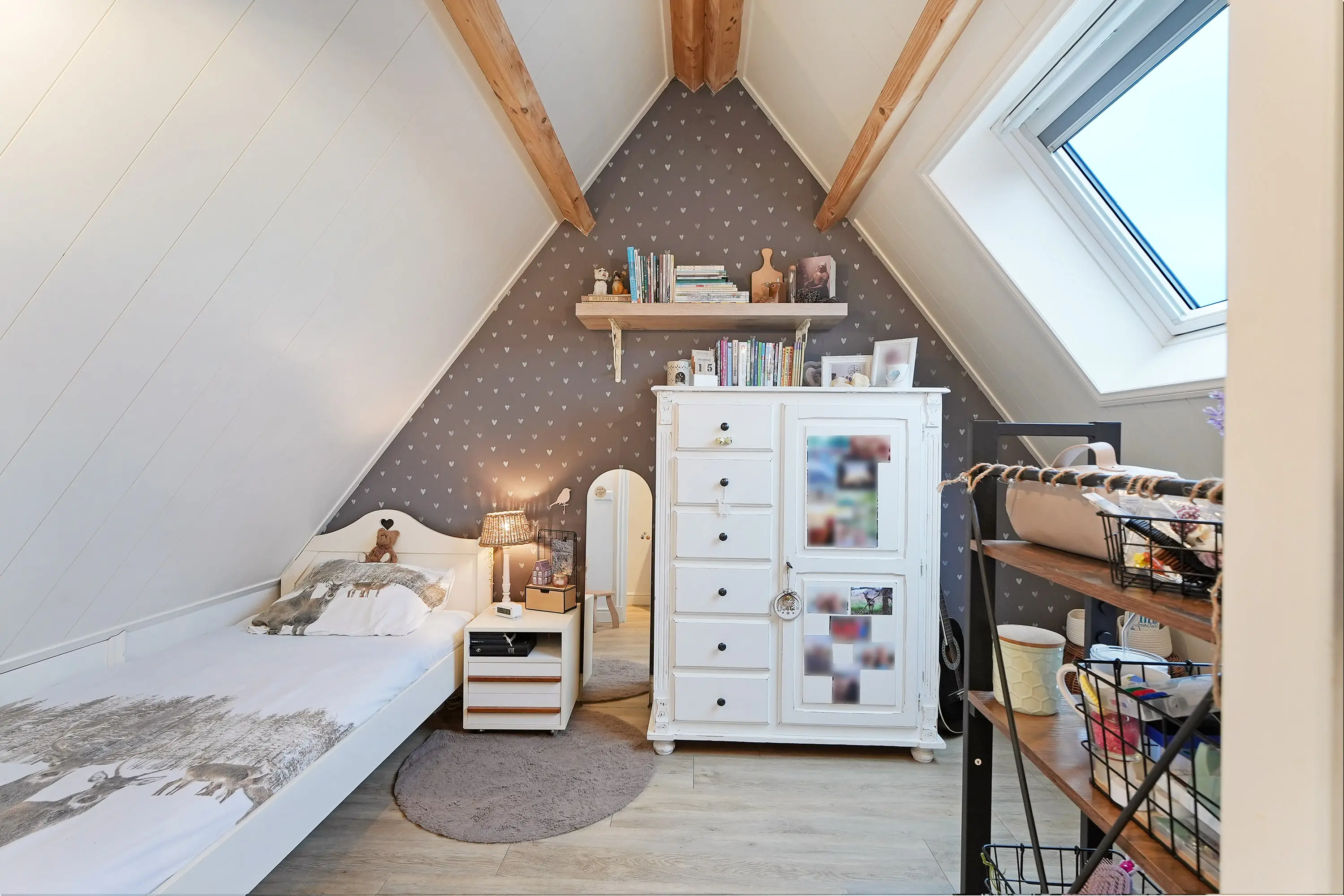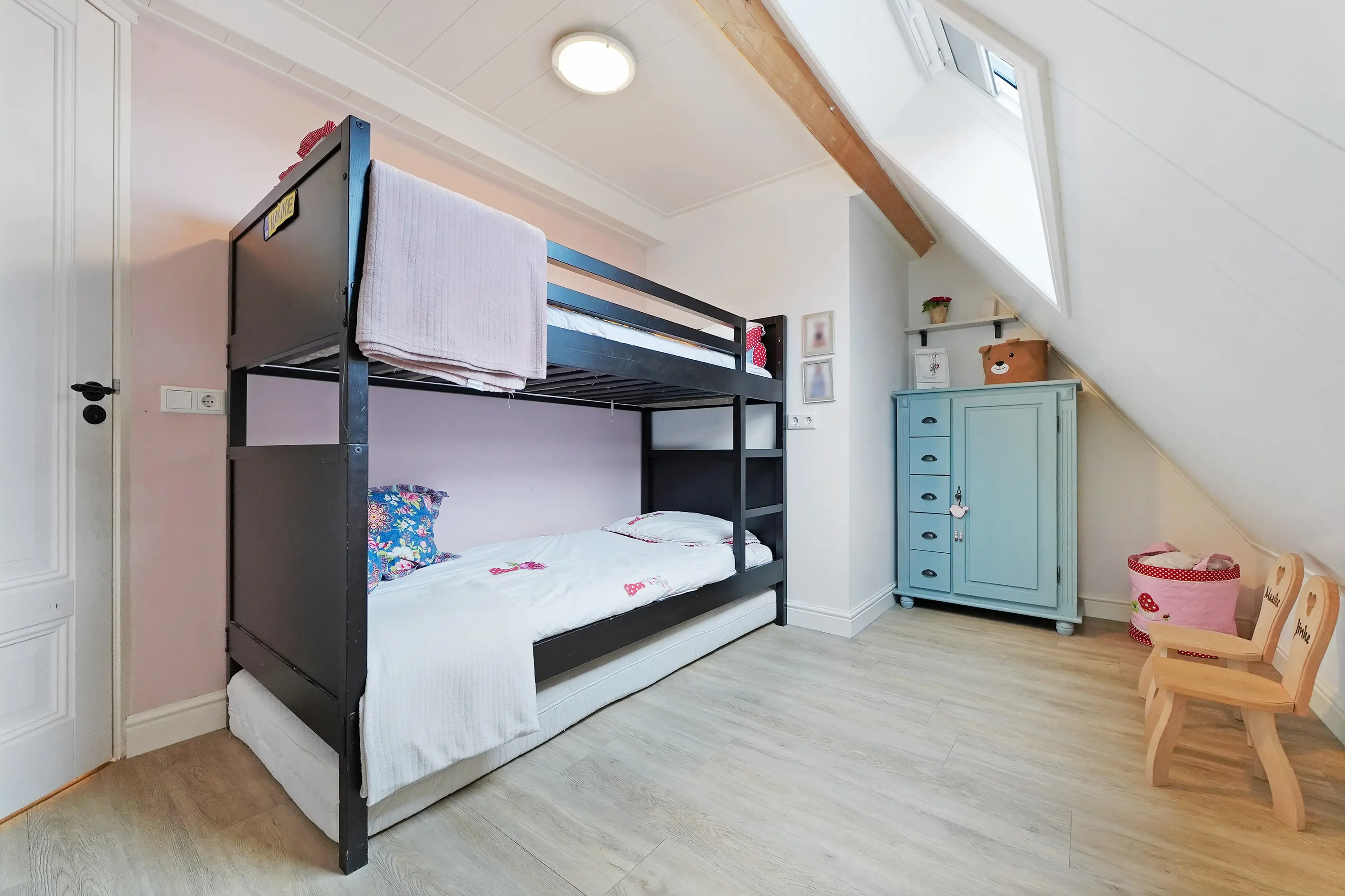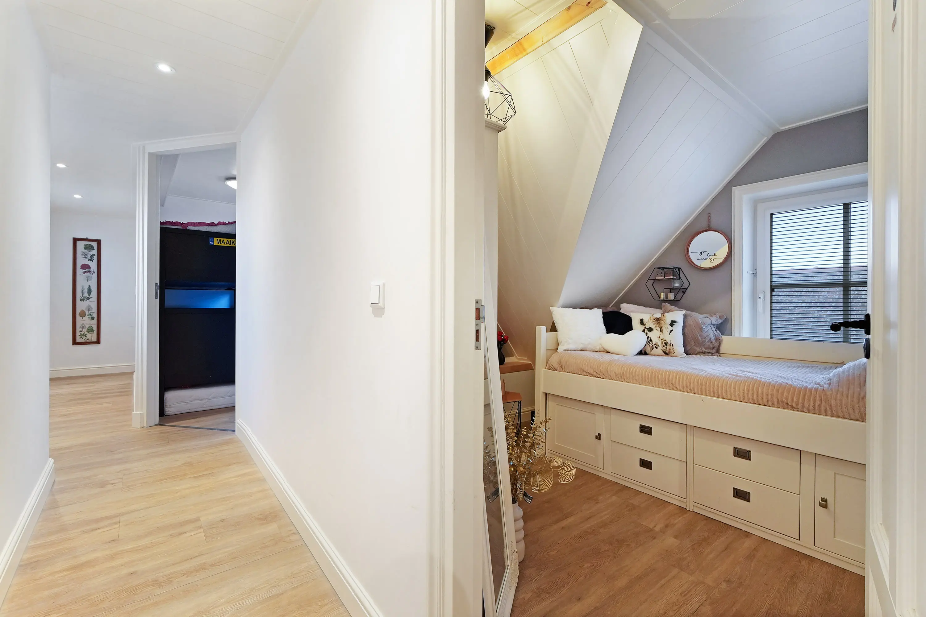 Op de eerste verdieping bevinden zich meerdere ruime slaapkamers, waardoor deze woning uitermate geschikt is voor grote gezinnen, thuiswerken of logeergebruik. In totaal beschikt de woning over 8 slaapkamers. De badkamer is zeer netjes uitgevoerd met moderne en tijdloze tegels. Deze beschikt over een brede wastafel, toilet en ruime inloopdouche.