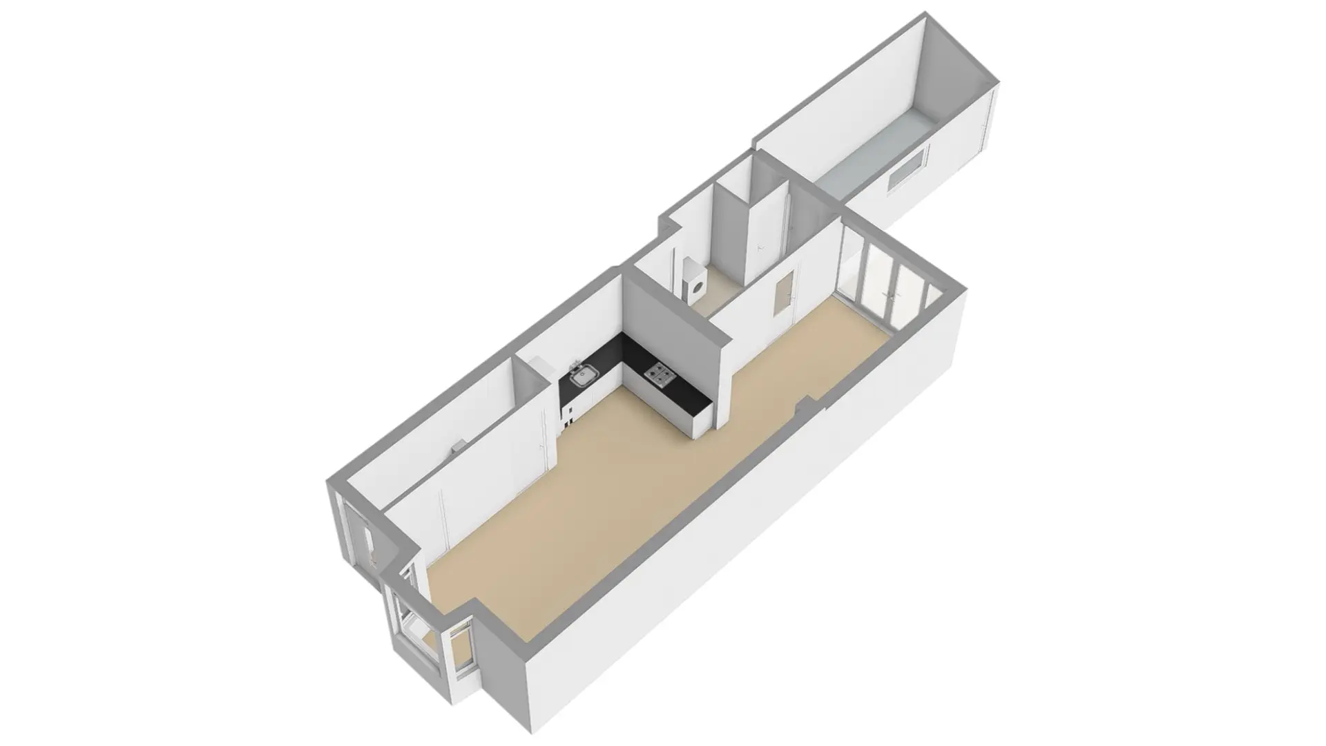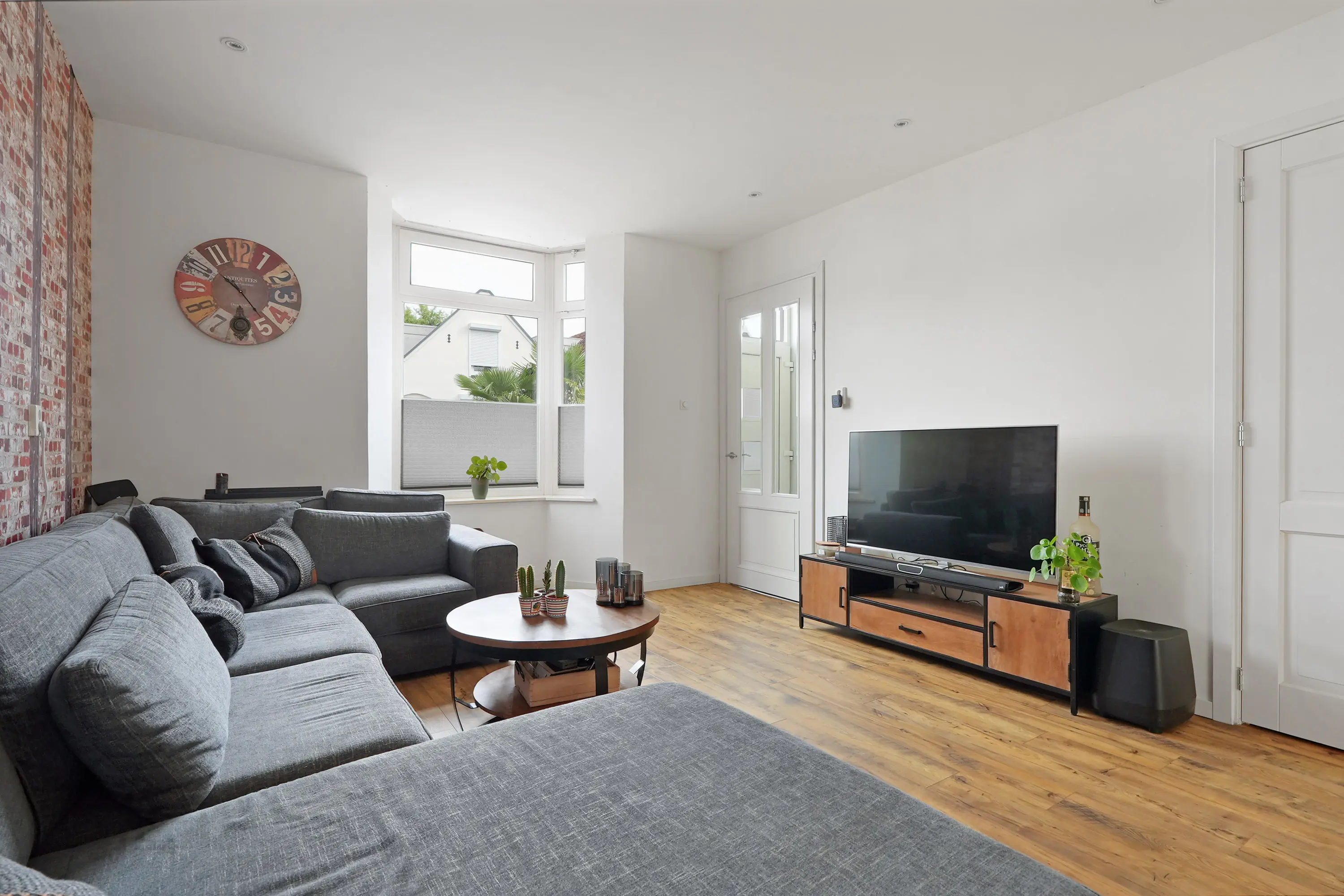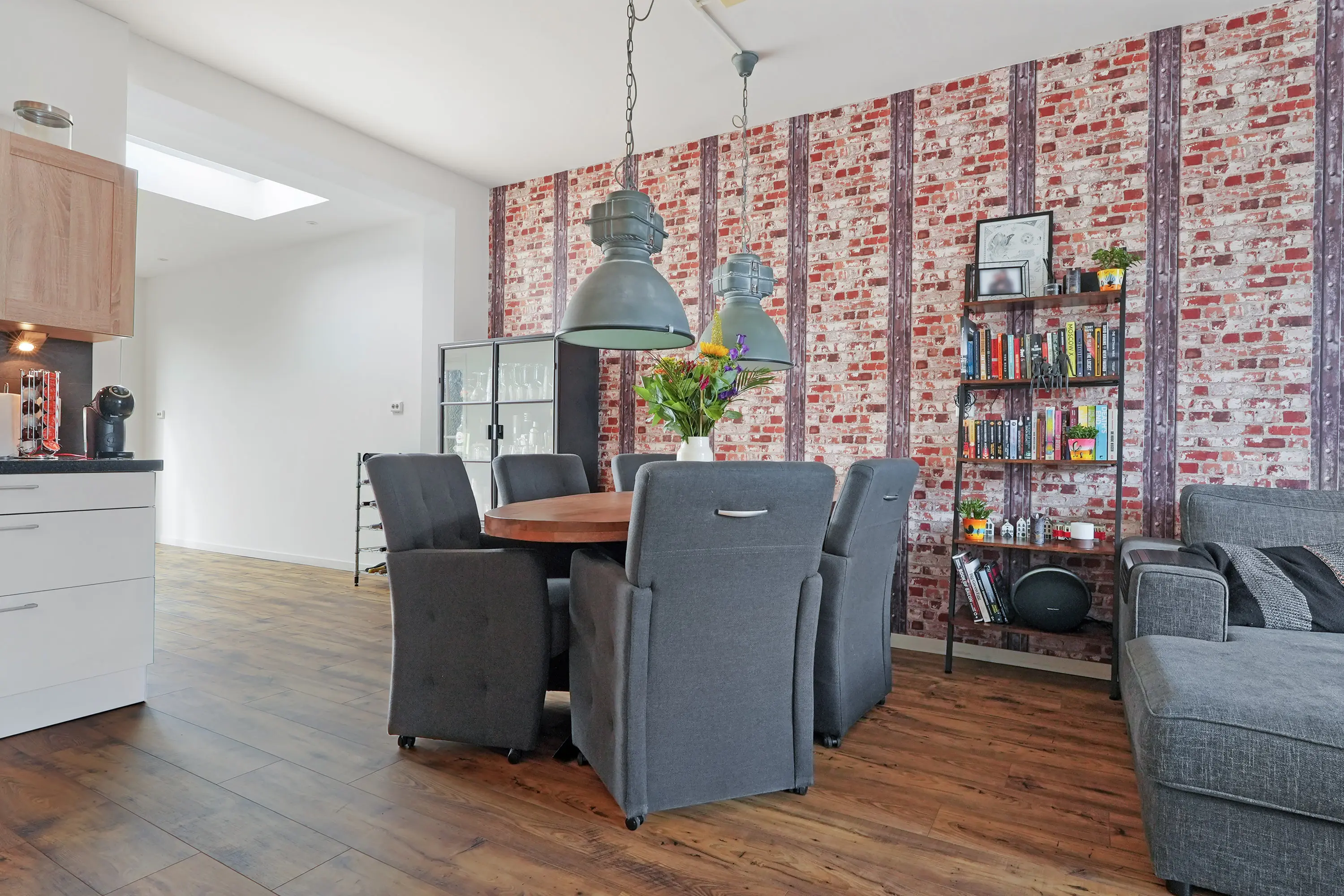 De entree brengt u in de hal met meterkast, trapopgang en toegang tot de woonkamer. Bij binnenkomst ervaart u direct de enorme diepte van maar liefst 12 meter – een bijzondere verrassing die zorgt voor een fantastische ruimtebeleving.