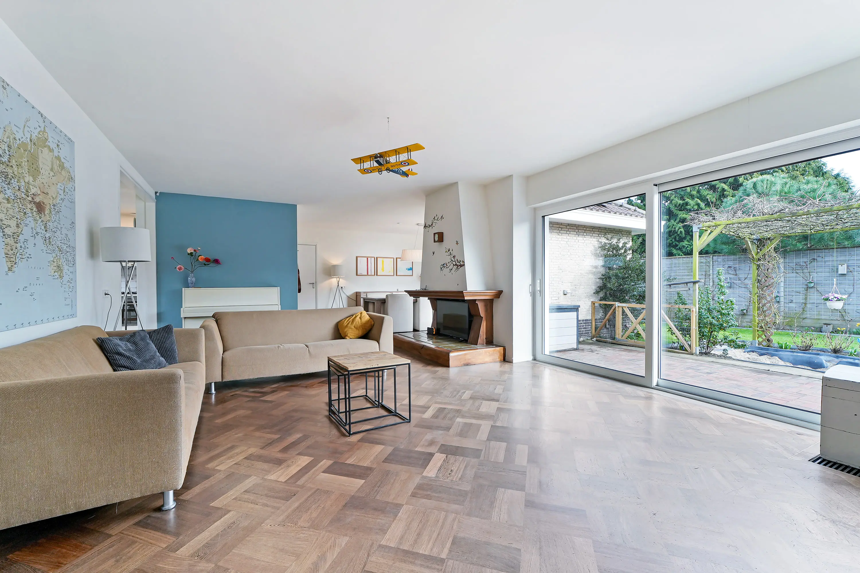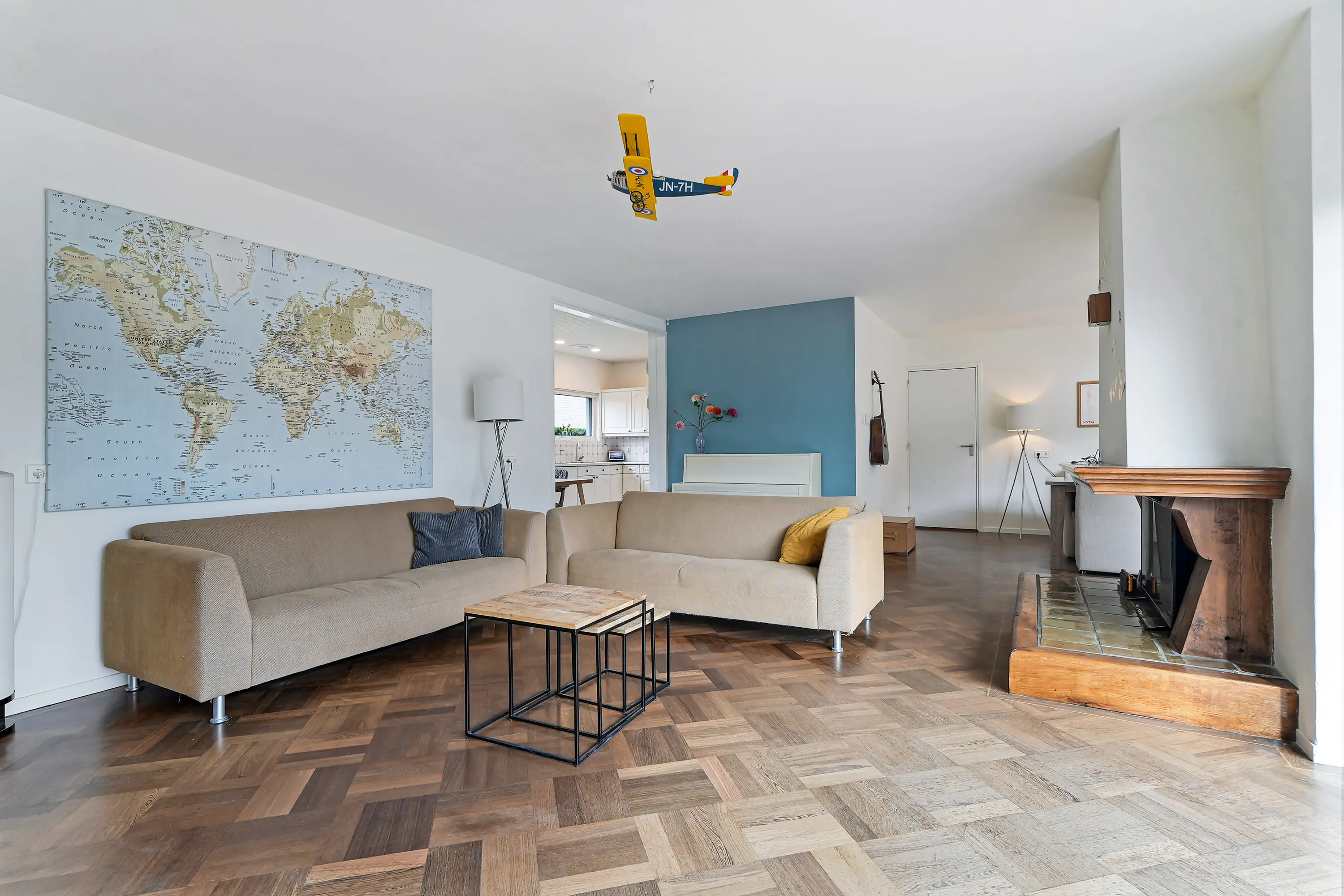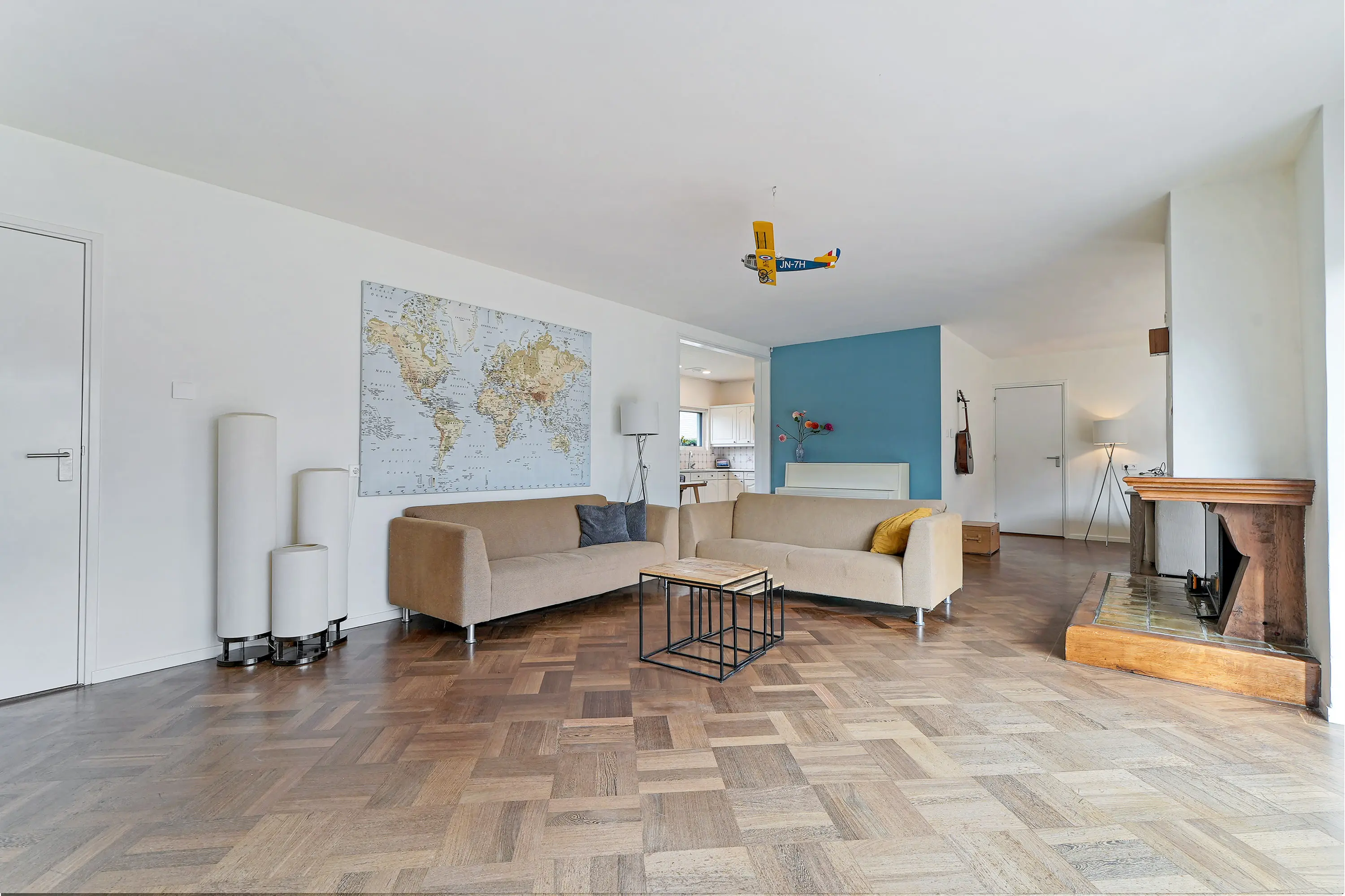 - royale woon-, eetkamer en keuken van in totaal ca. 70m2.