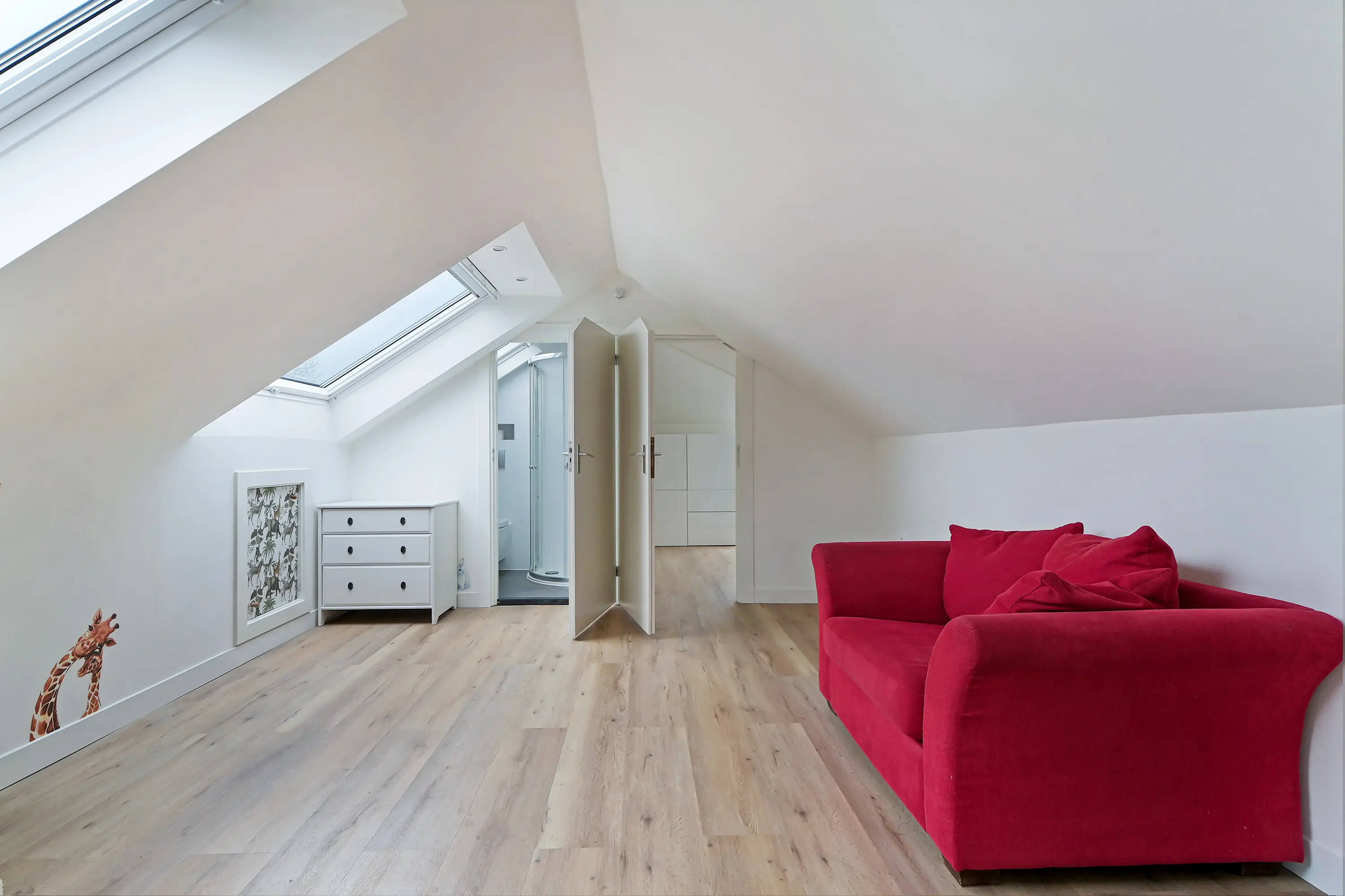 Deze verdieping beschikt over twee royale slaapkamers met leuke en praktische details. Denk hierbij aan handige opbergruimtes, maar ook speelse elementen voor kinderen. Eén van de kamers beschikt bijvoorbeeld over een bedstede, wat zowel praktisch als leuk is voor de kinderen.