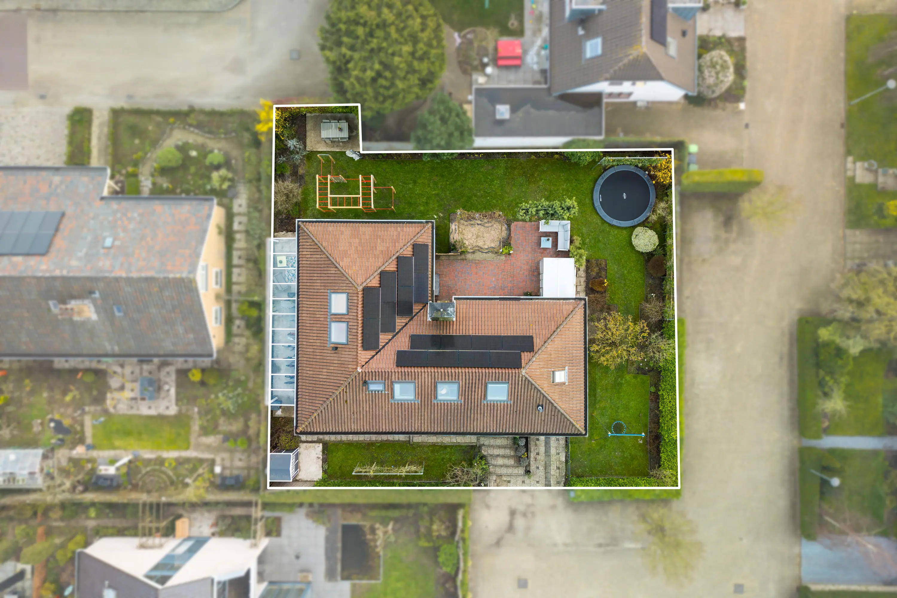 De woning is gelegen op een perceel van maar liefst 650 m², ingericht met diverse terrassen, speelplekken voor de kinderen, een grote overkapping voor onder andere het stallen van fietsen en voorbereidingen voor het realiseren van een schuur etc.!