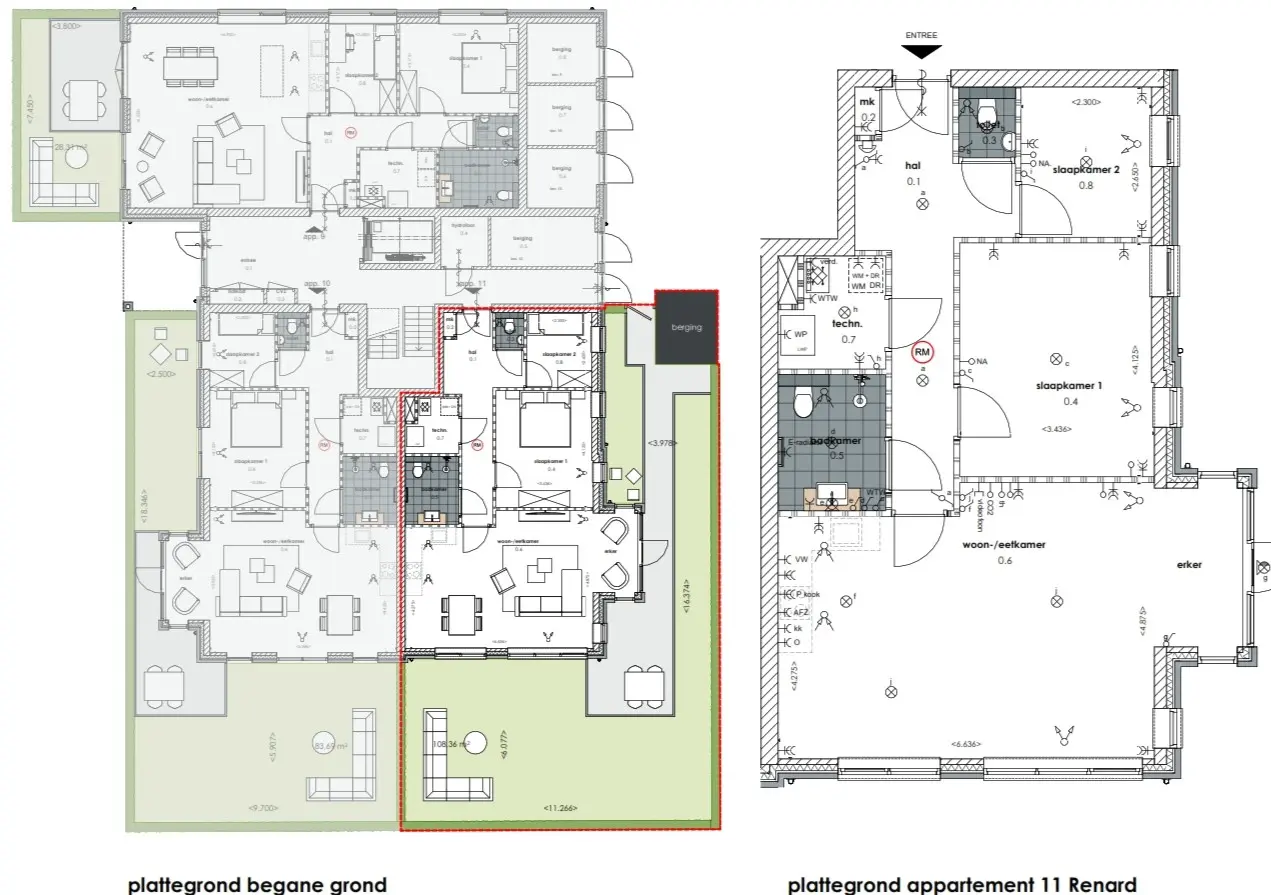 Het royale appartement op de begane grond met een woonoppervlakte van ca. 79m2 bevindt zich in het gebouw ''Renard''. Via de entree bereikt u alle verstrekken van het appartement waaronder de prachtig ruime woonkamer, de master bedroom, de 2e fijne slaapkamer, de luxe badkamer, het (gasten)toilet met fontein en de technische ruimte. Binnenkomend in de woonkamer ervaart u direct een prettige woonsfeer door de vele raampartijen. Er is genoeg ruimte om een geweldige woonkeuken te realiseren. De ruime badkamer is voorzien van een inloopdouche, wastafelmeubel en toilet. Voor zowel de badkamer als het (gasten)toilet is een fraai pakket aan tegels en sanitair samengesteld. De openslaande deur aan de rechterzijde van de woonkamer geeft toegang tot de zonnige, sfeervolle tuin van ca. 108m2. Hier kunt u optimaal genieten! De berging vindt u naast het appartementsgebouw. Handig voor het opbergen van uw fiets en andere spullen. Tevens behoort tot dit appartement één onoverdekte parkeerplaats.