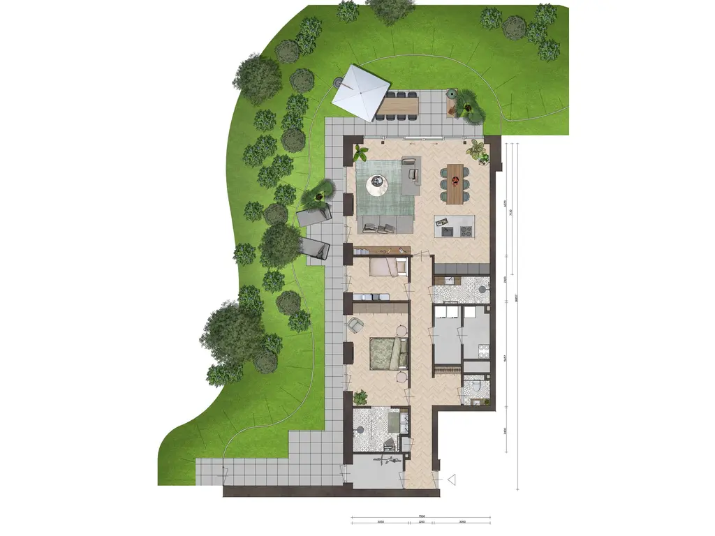 Dit schitterende appartement op de begane grond geeft u elke dag een vakantiegevoel. Alle kamers hebben verdiepingshoge ramen waardoor u ontwaakt, kookt of werkt met zicht op de schitterende parkachtige setting waarin u woont. Het terras rondom verleidt om lekker naar buiten te gaan. Geniet in de ochtendzon van koffie, hoor de vogels fluiten en zie langzaam de dauw op het gras verdwijnen. Rond het (verhoogde) terras zijn vlindervriendelijke struiken geplant, waardoor u beschut zit en de natuur letterlijk tot aan uw huis rijkt.
