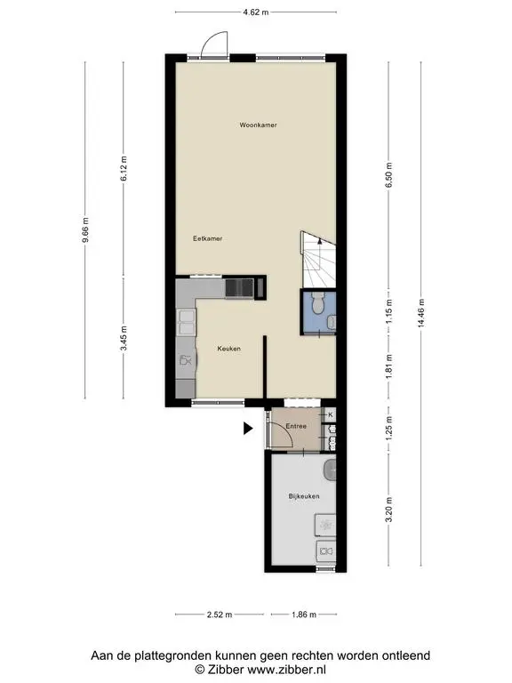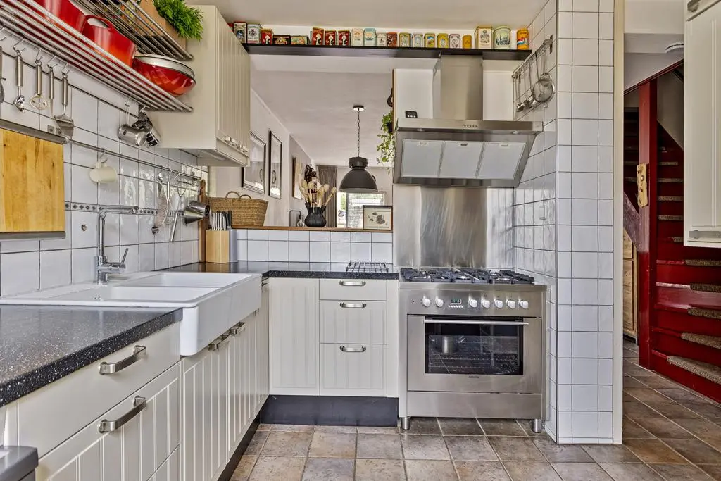 Entree in hal met meterkast, toilet, toegang tot de inpandig bereikbare berging en doorgang naar de woonkamer. De royale woonkamer is heerlijk licht en heeft een doorkijk naar de halfopen keuken. In de woonkamer treft u een ruime zithoek aan de tuinzijde en de eethoek aan de voorzijde. De halfopen keuken is eveneens ruim van opzet, het grote werkblad zorgt voor veel werkruimte en de vele kasten maken het mogelijk om al uw keukengerei netjes te kunnen opbergen. De vanuit de hal bereikbare berging is een leuke plus in deze woning, zo kunt u hier uw wasmachine en/of drogeropstelling plaatsen of u gebruikt de berging voor hobby of het stallen van de fiets(en). Vanuit de woonkamer is de tuin te bereiken.