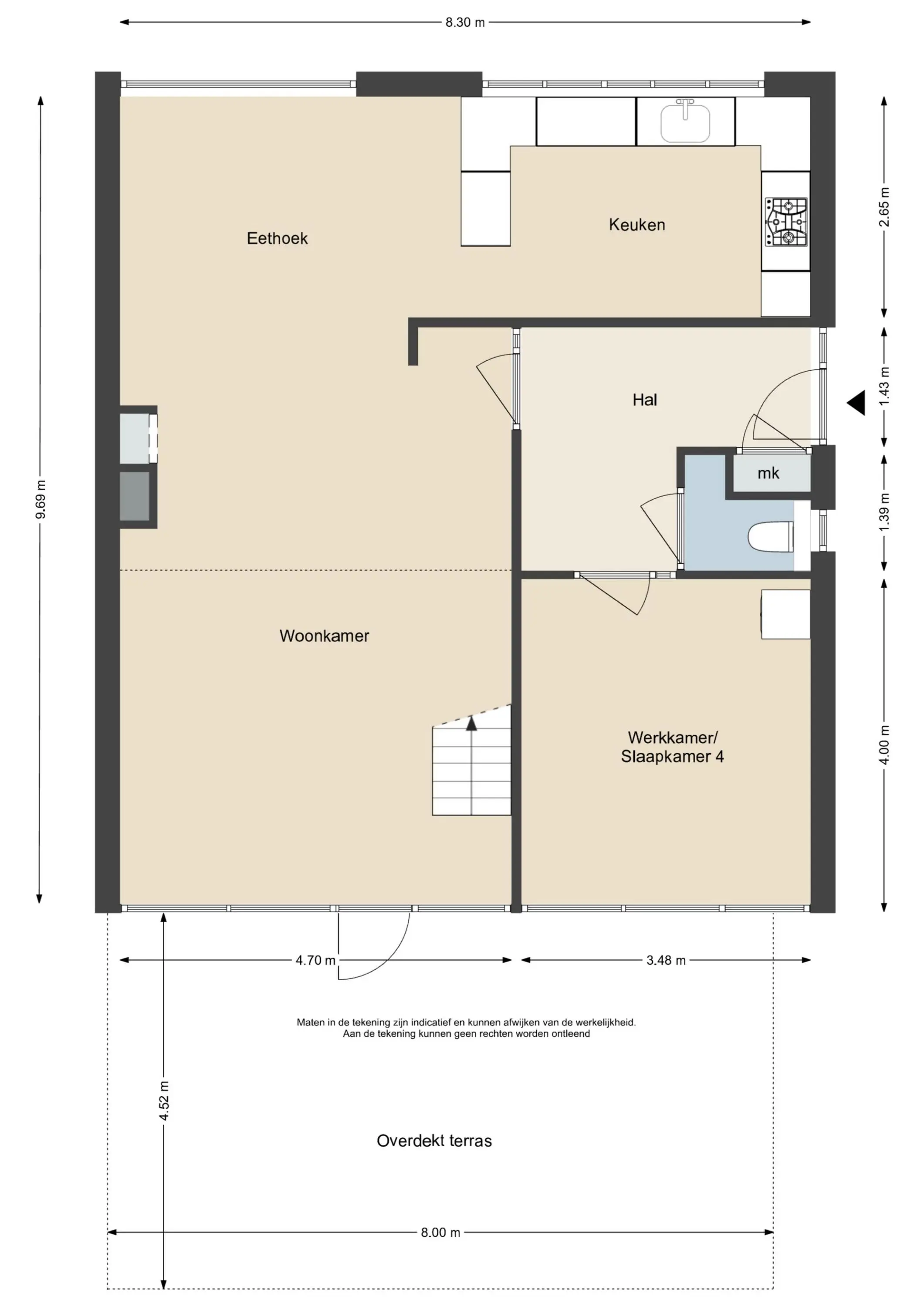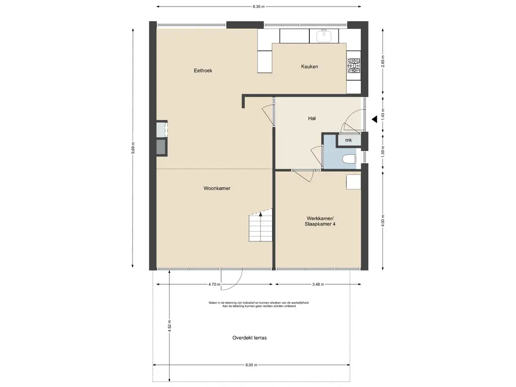 Deze informatie is door ons met de nodige zorgvuldigheid samengesteld. Onzerzijds wordt echter geen enkele aansprakelijkheid aanvaard voor enige onvolledigheid, onjuistheid of anderszins, dan wel de gevolgen daarvan. Alle opgegeven maten en oppervlakten zijn indicatief.