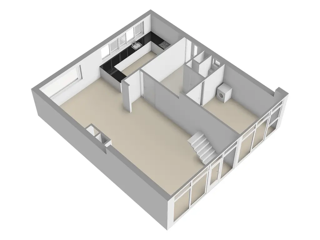U komt binnen in de ruime hal met toegang tot het toilet en de meterkast. Vanuit hier bereikt u zowel de woonkamer als de kantoorruimte. In deze kamer is momenteel de wasruimte gesitueerd, maar met een kleine aanpassing kan hier eenvoudig een extra slaapkamer worden gecreëerd.