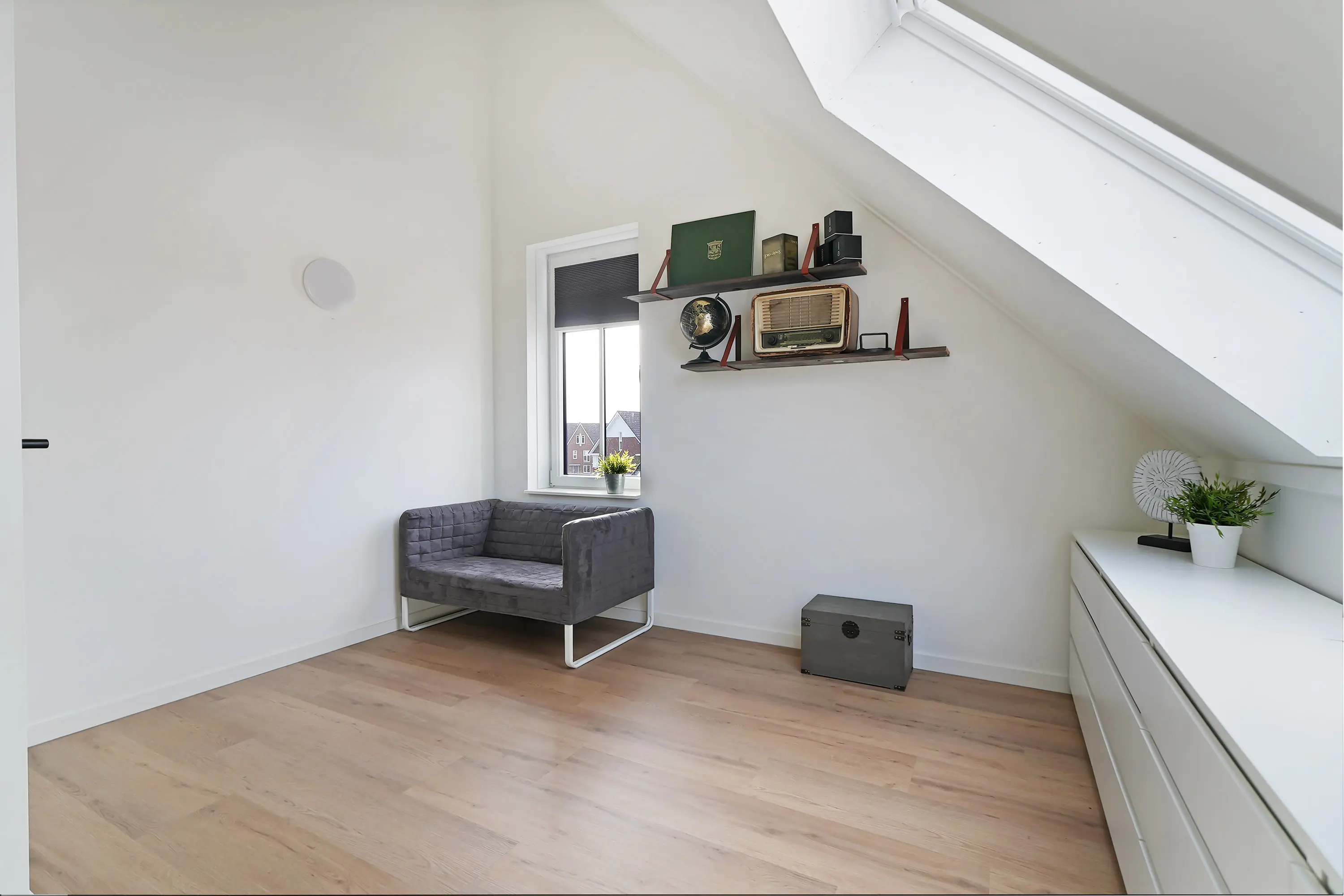 Een volwaardige verdieping waar de overloop toegang geeft tot nog eens twee mooie en bovenal ruime slaapkamers, waaronder wederom een kamer die zich over de volledige breedte van de woning strekt. Ook hier een lichte beleving door de toegevoegde dakramen. De hoge nok maakt deze slaapkamers echt indrukwekkend. Daarnaast treft u via de overloop de separate techniekruimte met daar de wasmachine-opstelling, warmtepomp, WTW en omvormer van de zonnepanelen.