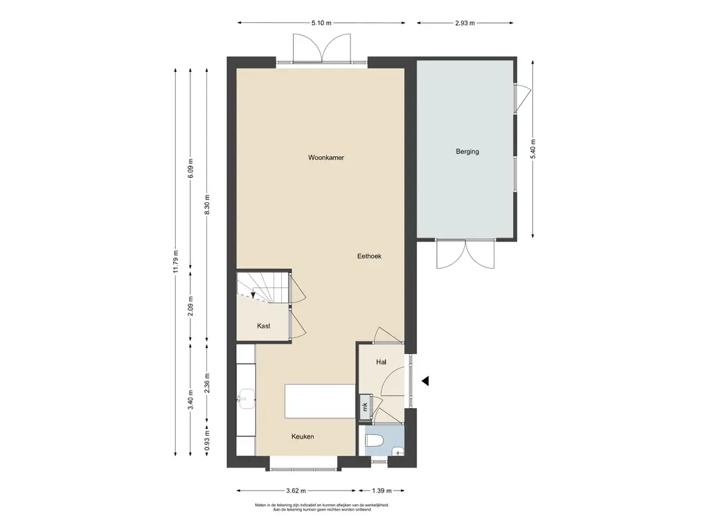 Deze informatie is door ons met de nodige zorgvuldigheid samengesteld. Onzerzijds wordt echter geen enkele aansprakelijkheid aanvaard voor enige onvolledigheid, onjuistheid of anderszins, dan wel de gevolgen daarvan. Alle opgegeven maten en oppervlakten zijn indicatief.