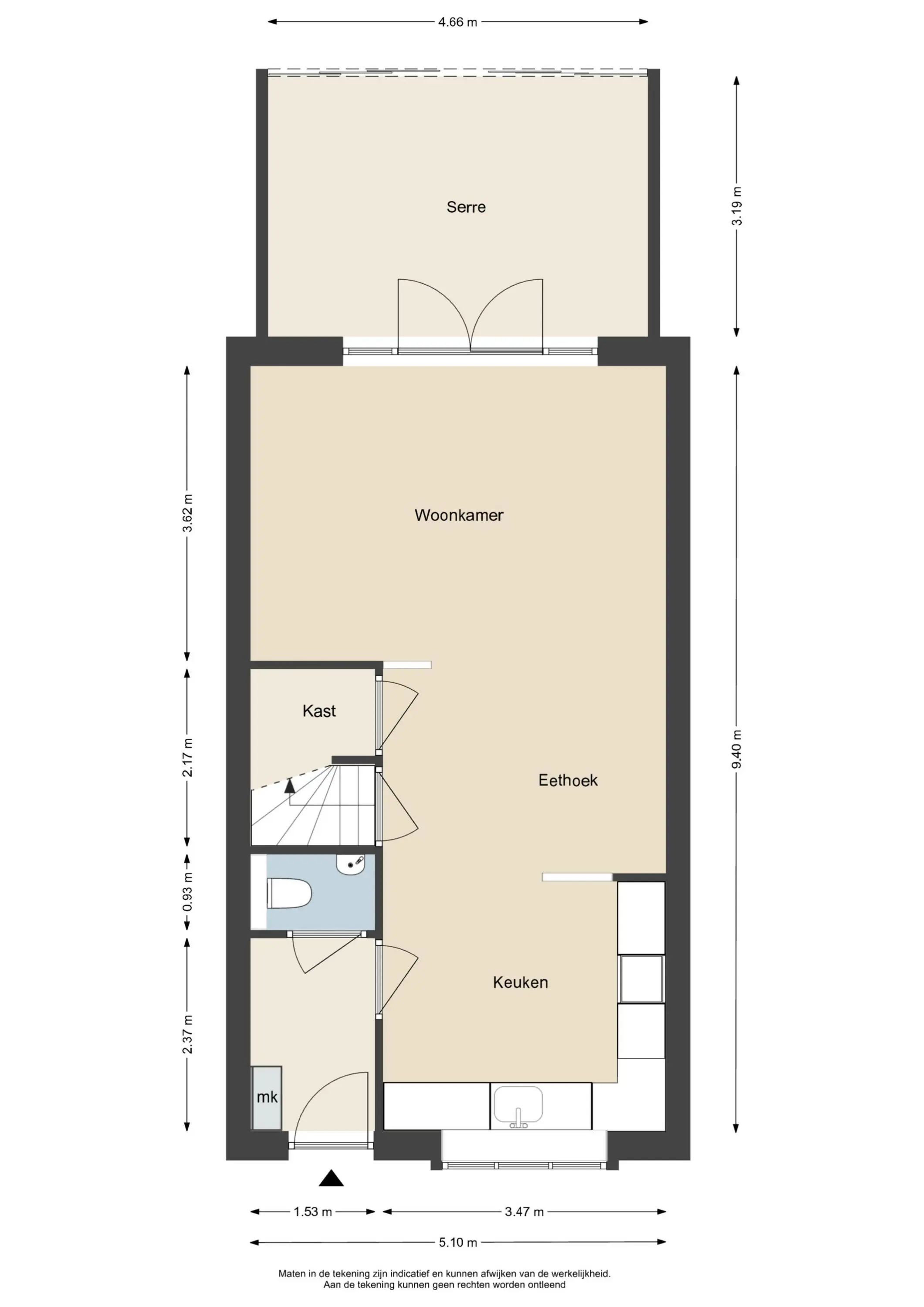 Deze informatie is door ons met de nodige zorgvuldigheid samengesteld. Onzerzijds wordt echter geen enkele aansprakelijkheid aanvaard voor enige onvolledigheid, onjuistheid of anderszins, dan wel de gevolgen daarvan. Alle opgegeven maten en oppervlakten zijn indicatief.