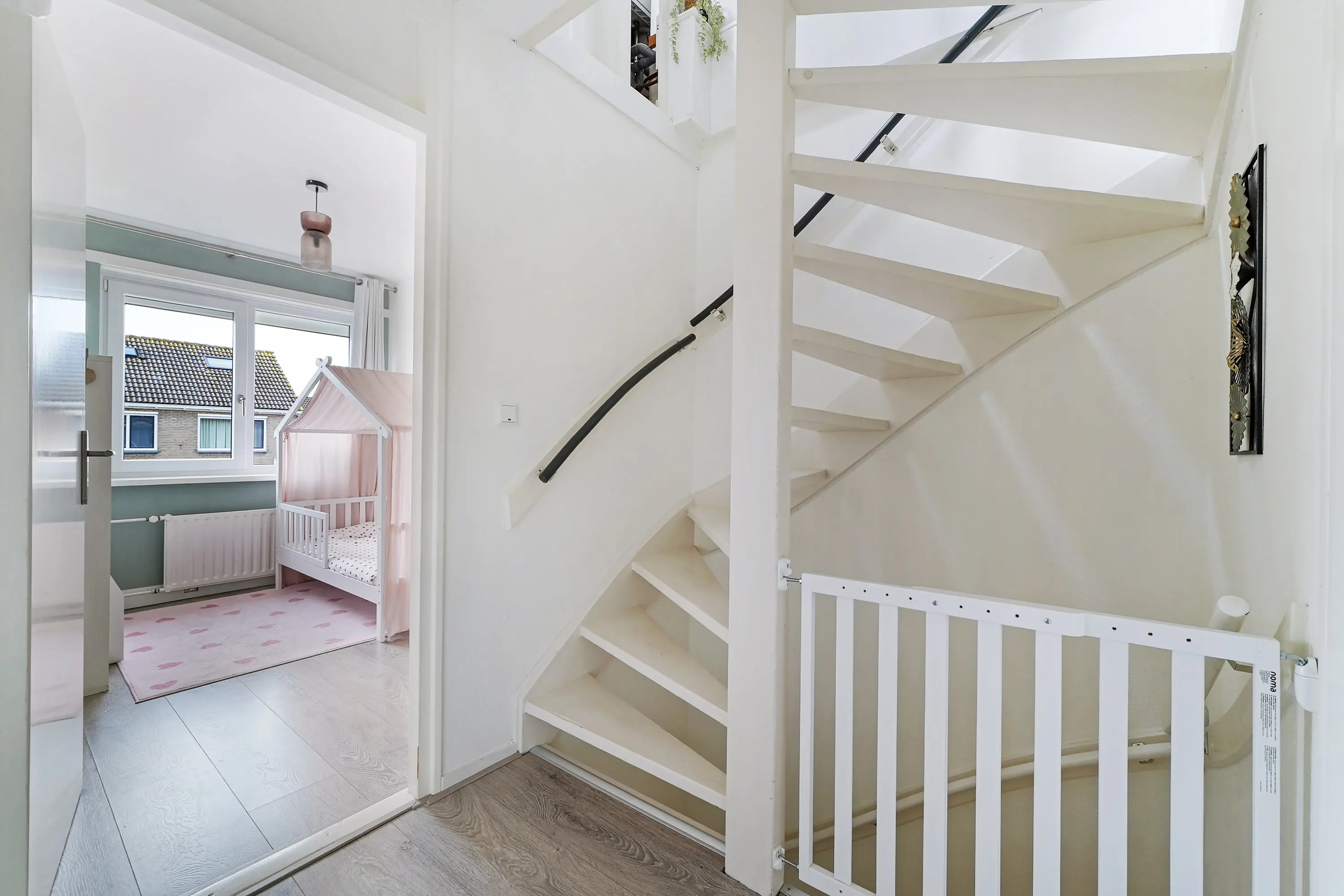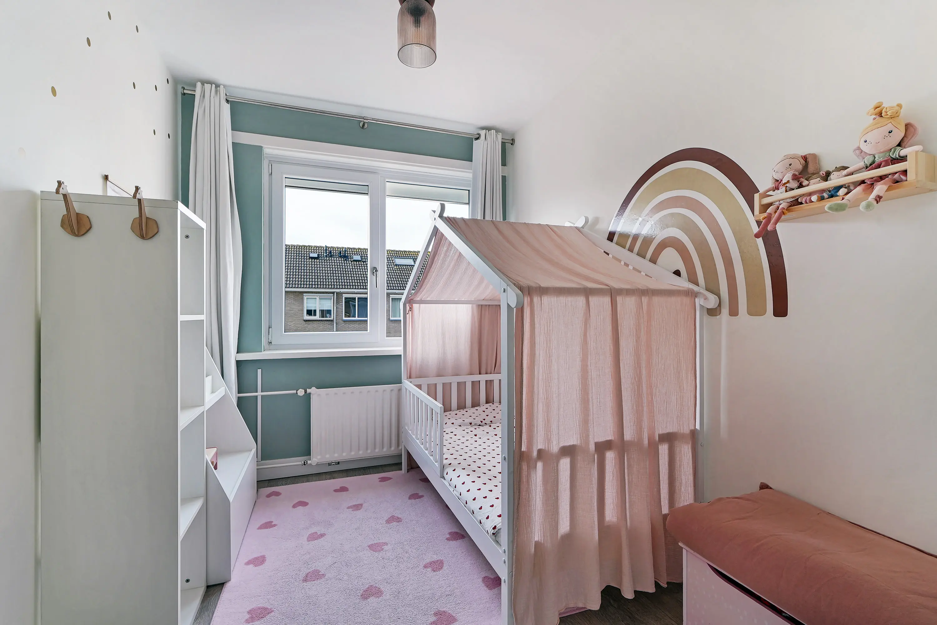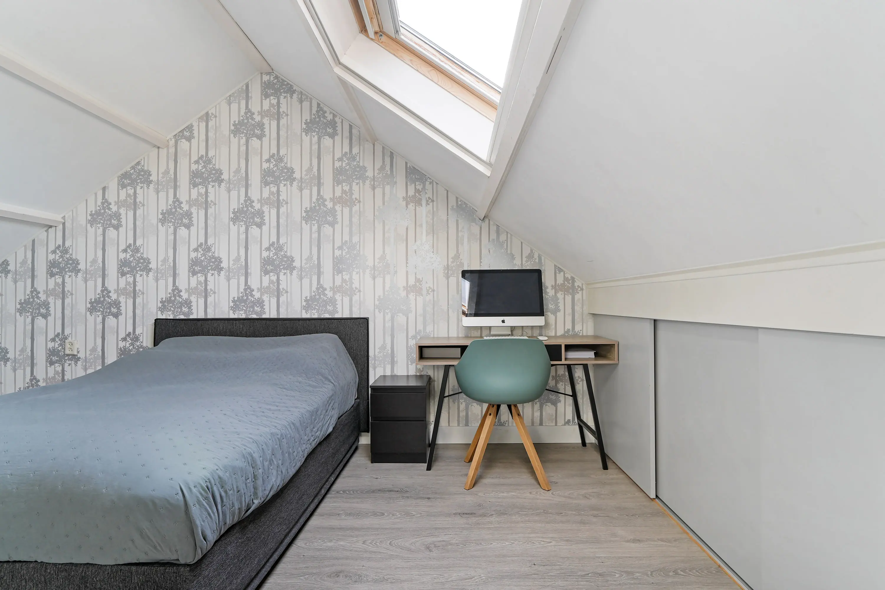 Overloop met wasmachineaansluiting en opstelling c.v.-ketel en tenslotte een ruime vierde slaapkamer met dakraam voorzien van screen en bergruimte.