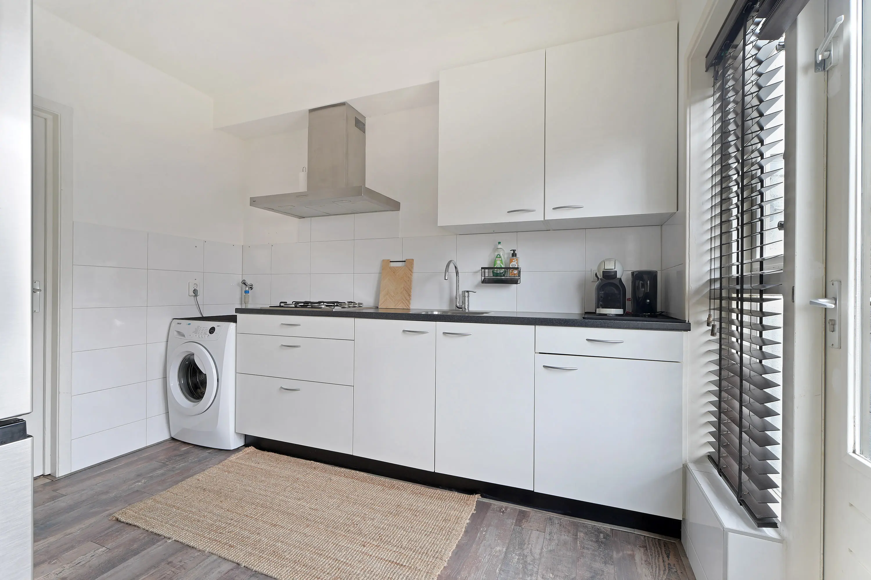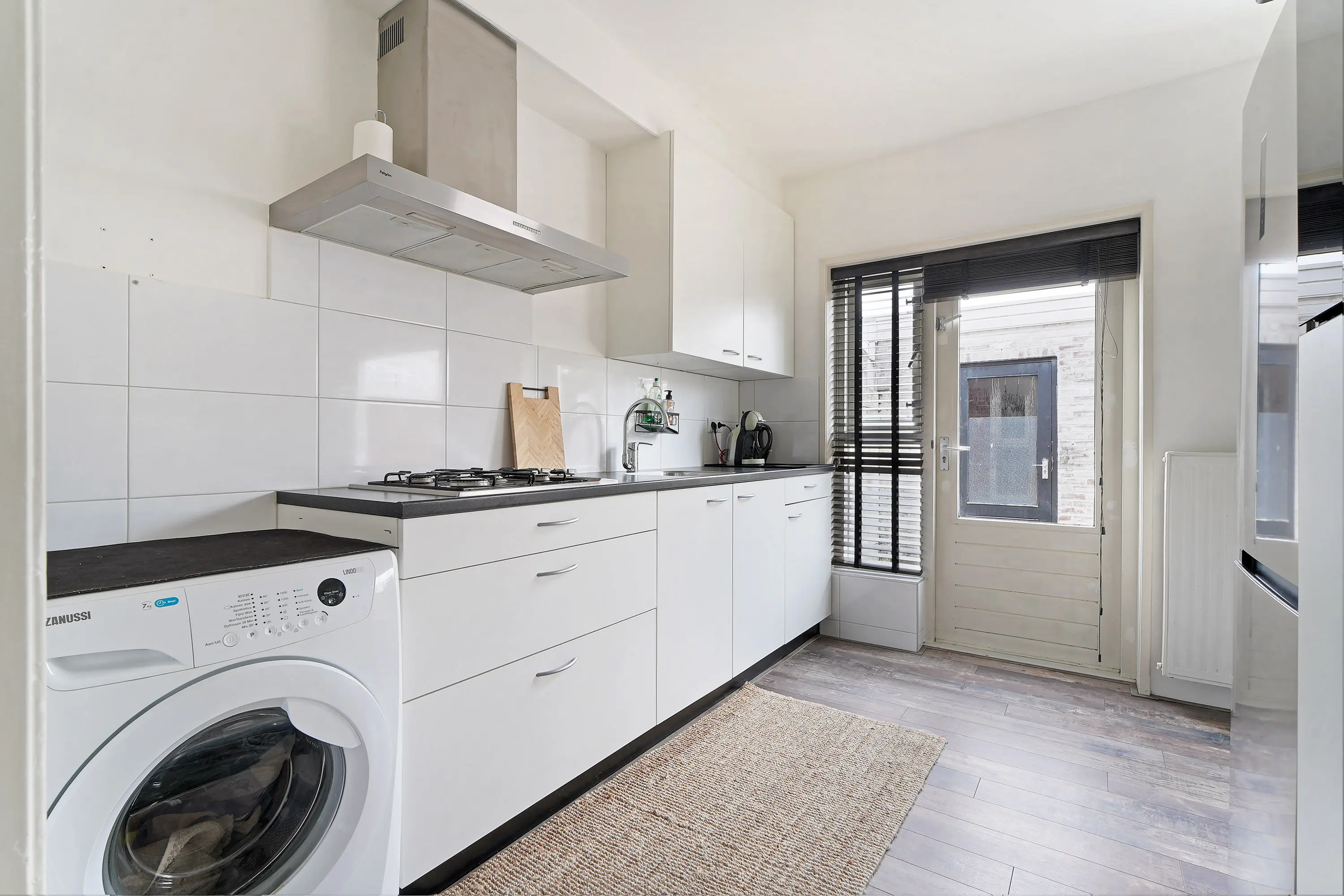 Entree in de hal met toilet, meterkast en bergkast. Vanuit de hal bereikt u de verzorgde keuken die direct toegang biedt tot de woonkamer. De doorzonwoonkamer is ruim opgezet en dankzij de grote raampartijen opvallend licht en uitnodigend. De zithoek treft u aan de straatzijde en de eethoek aan de tuinzijde. Vanuit de keuken is te tuin te bereiken.