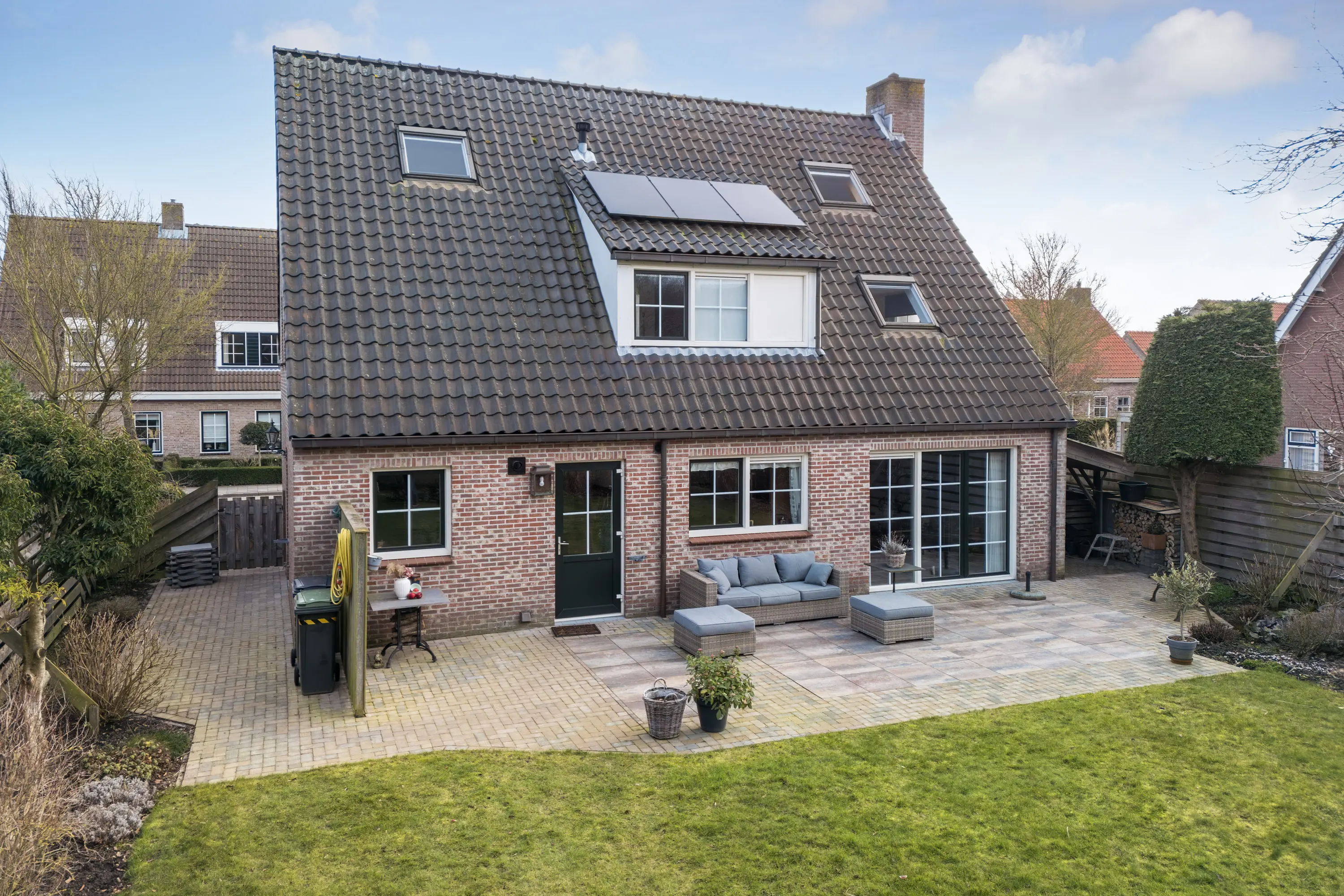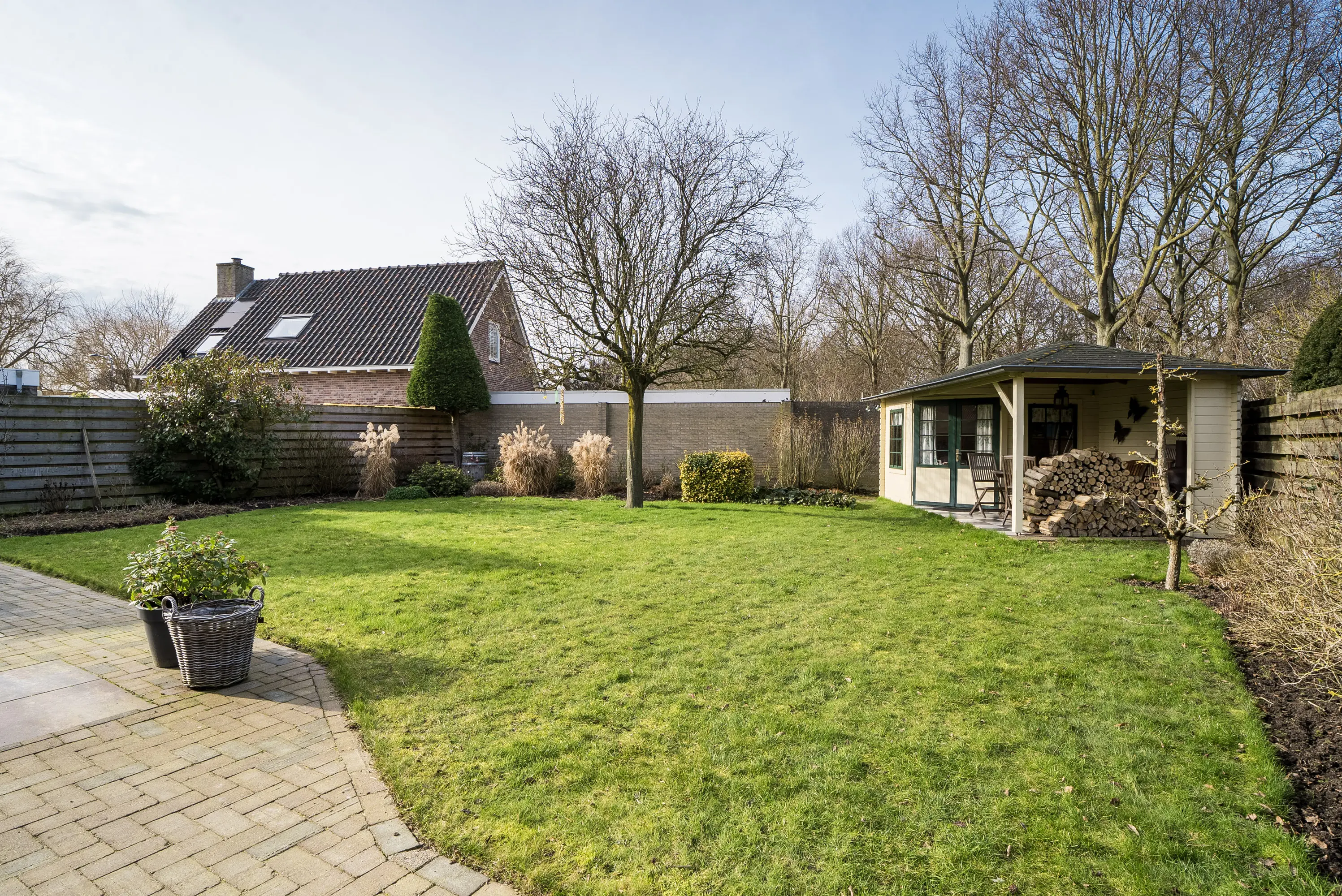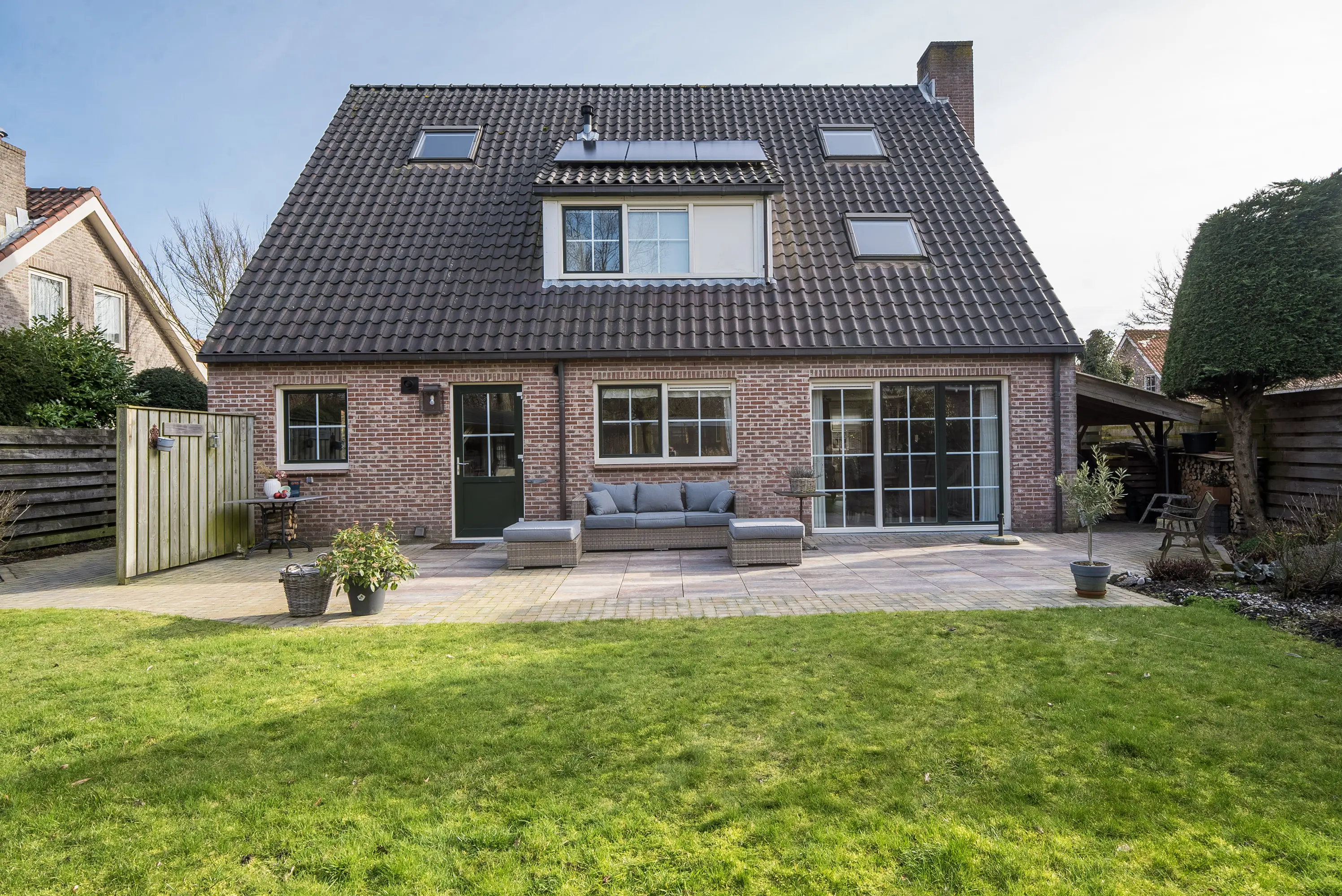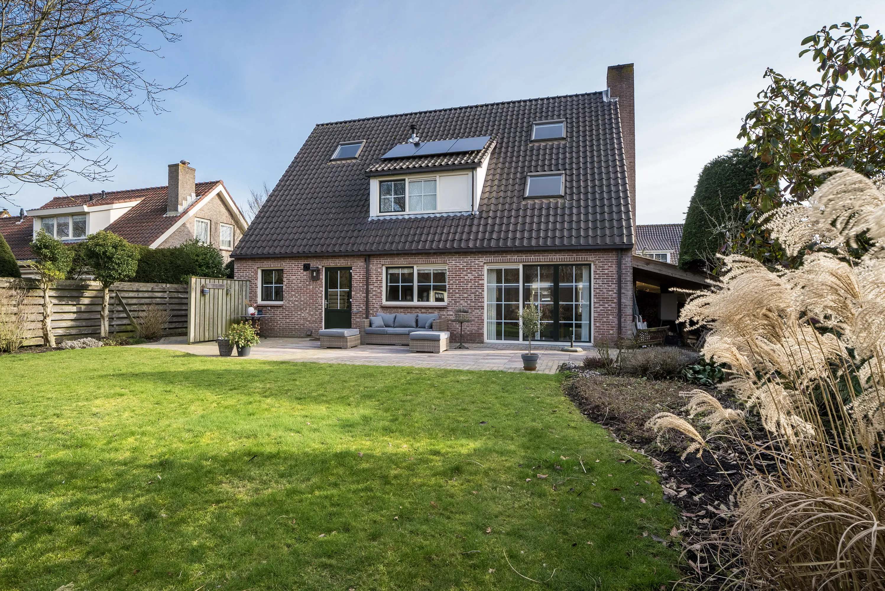 De grote, groene tuin rondom de woning biedt volop privacy, zon en rust. Door de gunstige ligging kunt u hier de hele dag van de zon genieten. Het achtergelegen bosje zorgt voor een prachtig, vrij uitzicht en geeft een heerlijk gevoel van ruimte en natuur. Voor kinderen is dit een fantastische plek om te spelen en te ontdekken, terwijl u zelf in alle rust kunt genieten van het buitenleven.