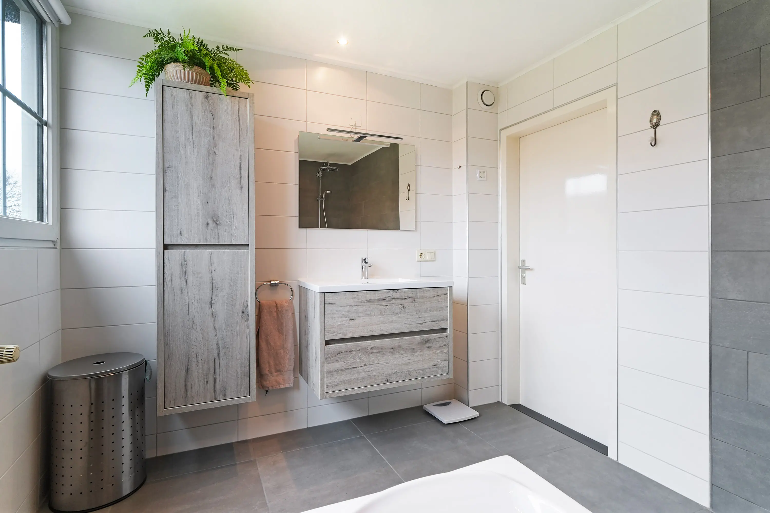 De ruime overloop biedt toegang tot meerdere goed bemeten slaapkamers, die stuk voor stuk beschikken over prettig lichtinval en praktische indelingsmogelijkheden. De moderne badkamer is compleet uitgevoerd en voorzien van een inloopdouche, ligbad, toilet en een stijlvol wasmeubel. Verder zijn er enkele kamers voorzien van een wastafel en inbouw opbergruimtes.