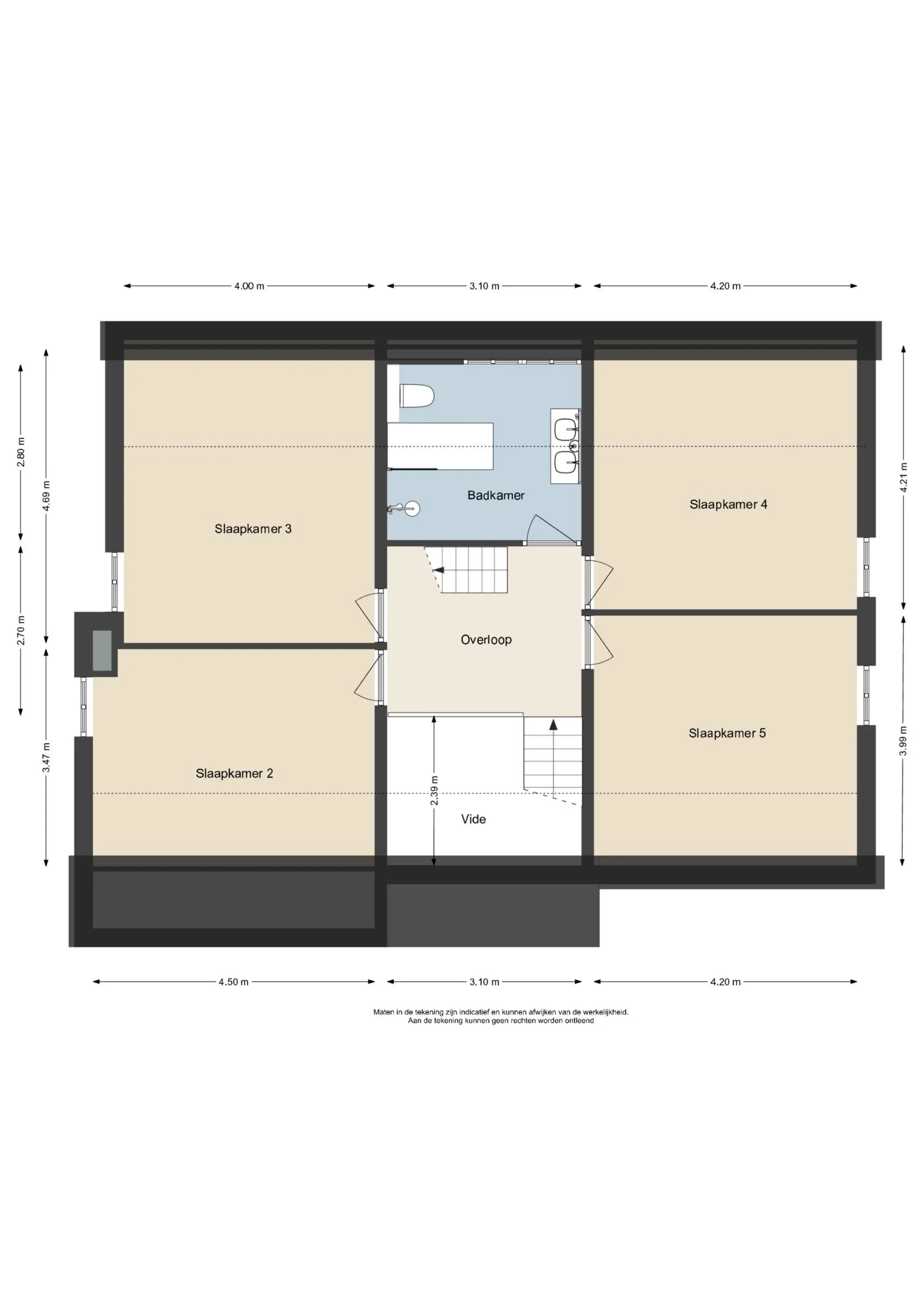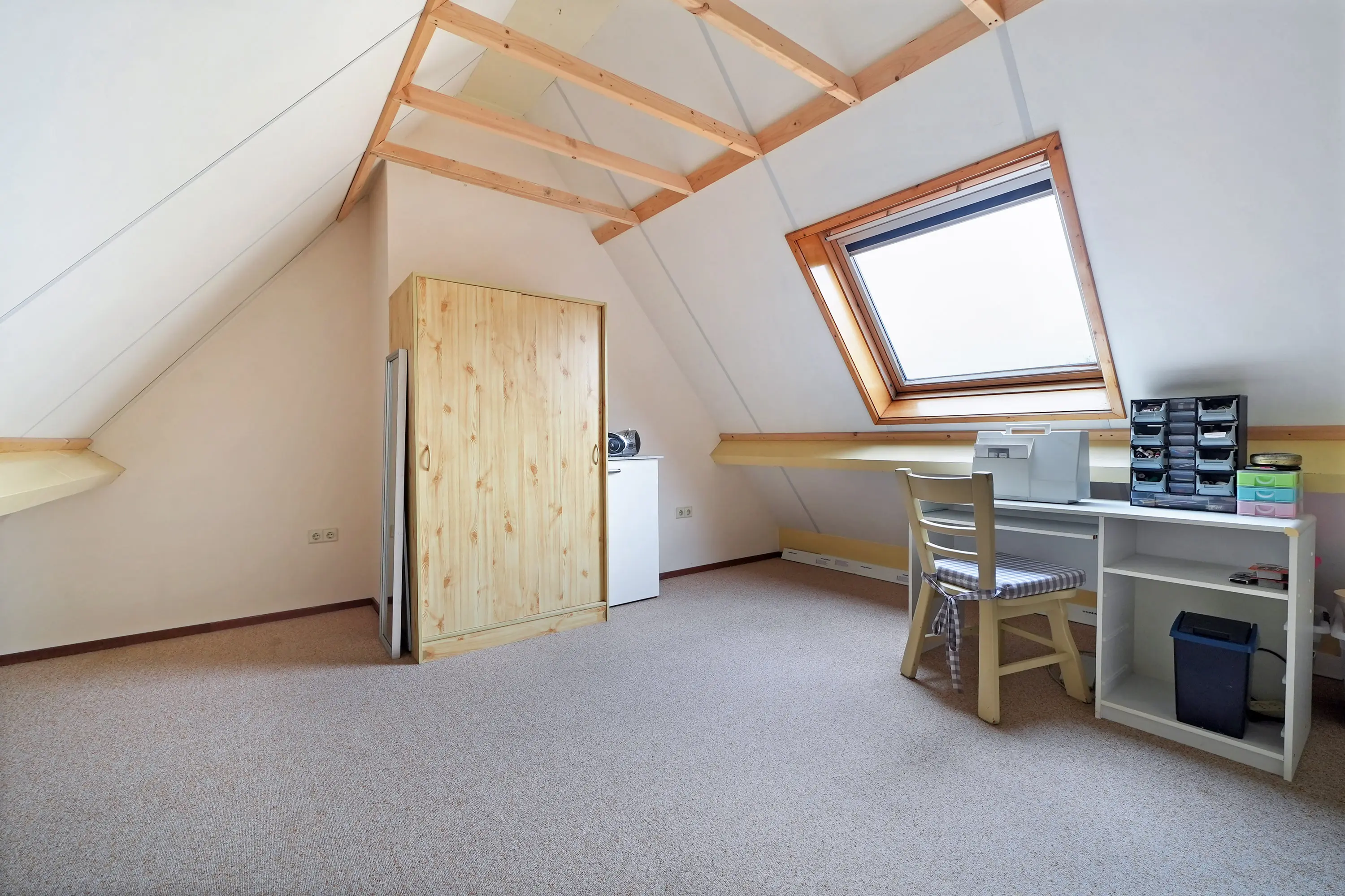 Via een vaste trap bereikt u de tweede verdieping, waar zich nog twee slaapkamers bevinden. Deze verdieping biedt verrassend veel ruimte en is uitermate geschikt als slaapverdieping, speelruimte of thuiswerkplek. Dankzij de goede indeling en het aantal kamers is de woning flexibel in gebruik en toekomstbestendig.
