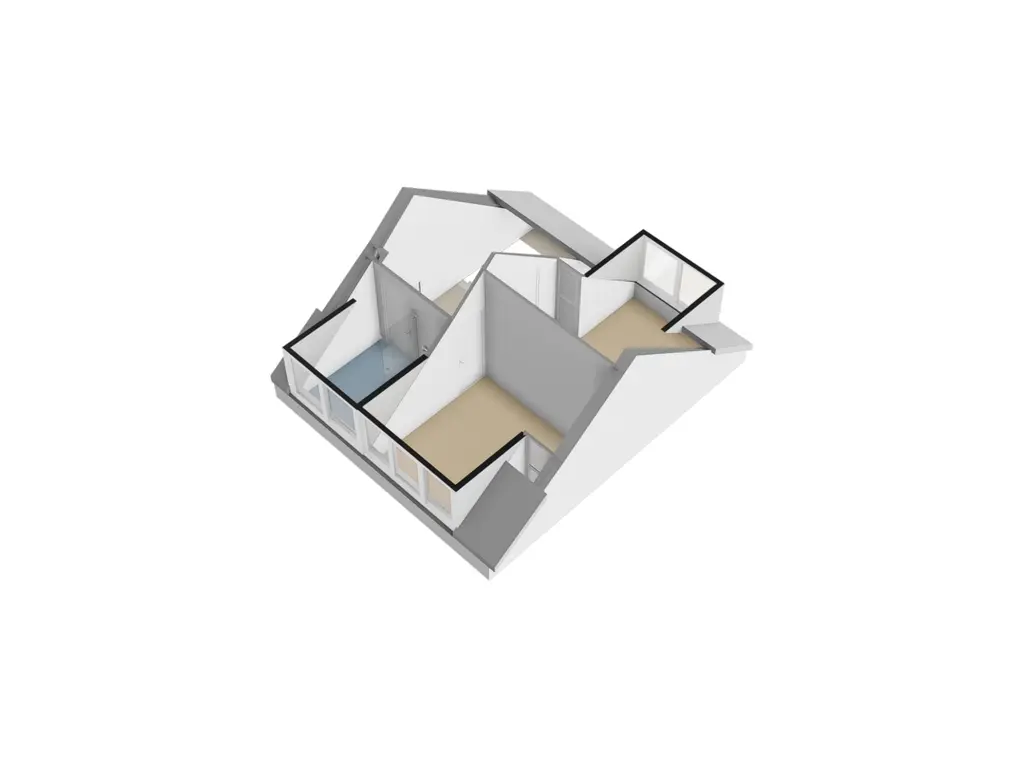 Ruime overloop met luik naar de bergzolder en dakraam, twee mooie slaapkamers, beide met dakkapel en vaste kastruimte en één met wastafel. Tenslotte een eenvoudige badkamer voorzien van douchecabine, wastafel en dakkapel.