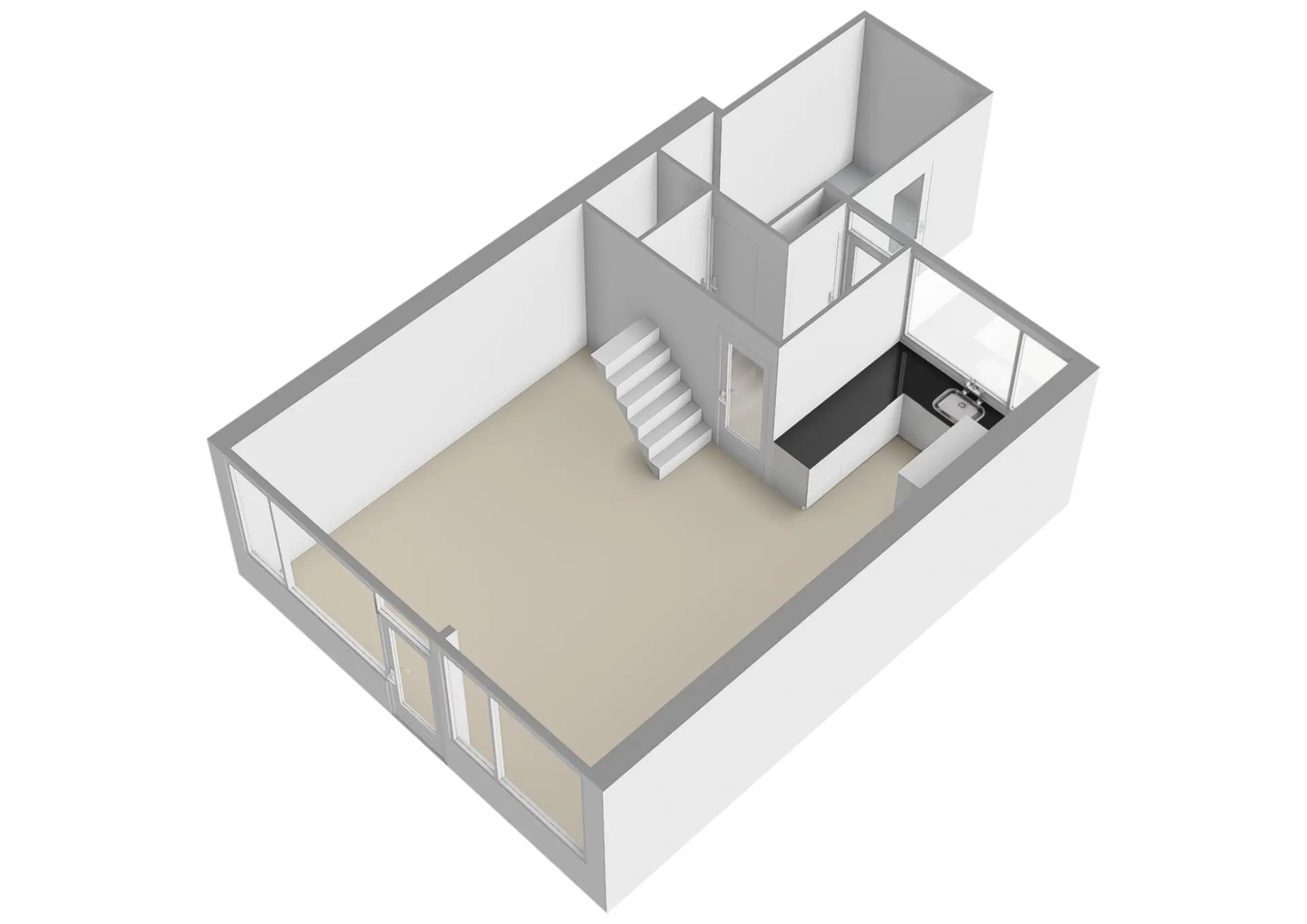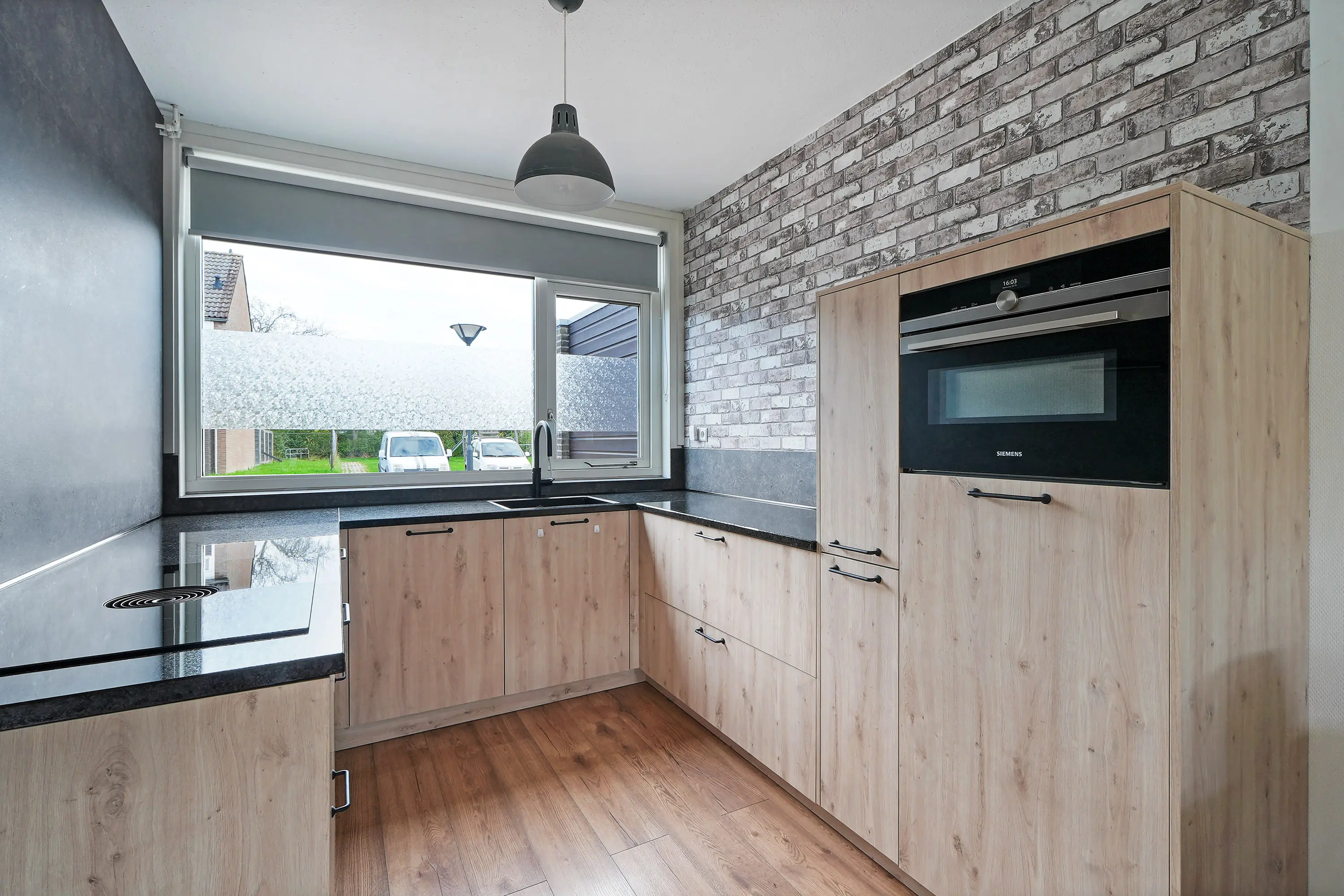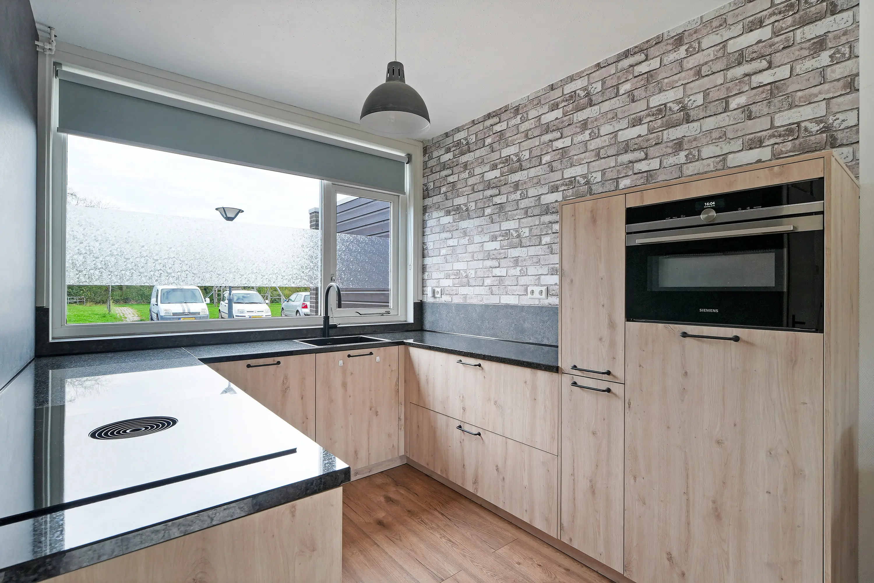 De woonkamer ligt over de volle breedte aan de achterzijde en ontvangt dankzij de grote raampartijen veel natuurlijk licht. De keuken, gelegen aan de voorzijde, is vernieuwd in 2022 en uitgerust met luxe inbouwapparatuur: een Bora-inductiekookplaat met geïntegreerde afzuiging, vaatwasser, koelkast, combi-oven en Quooker.