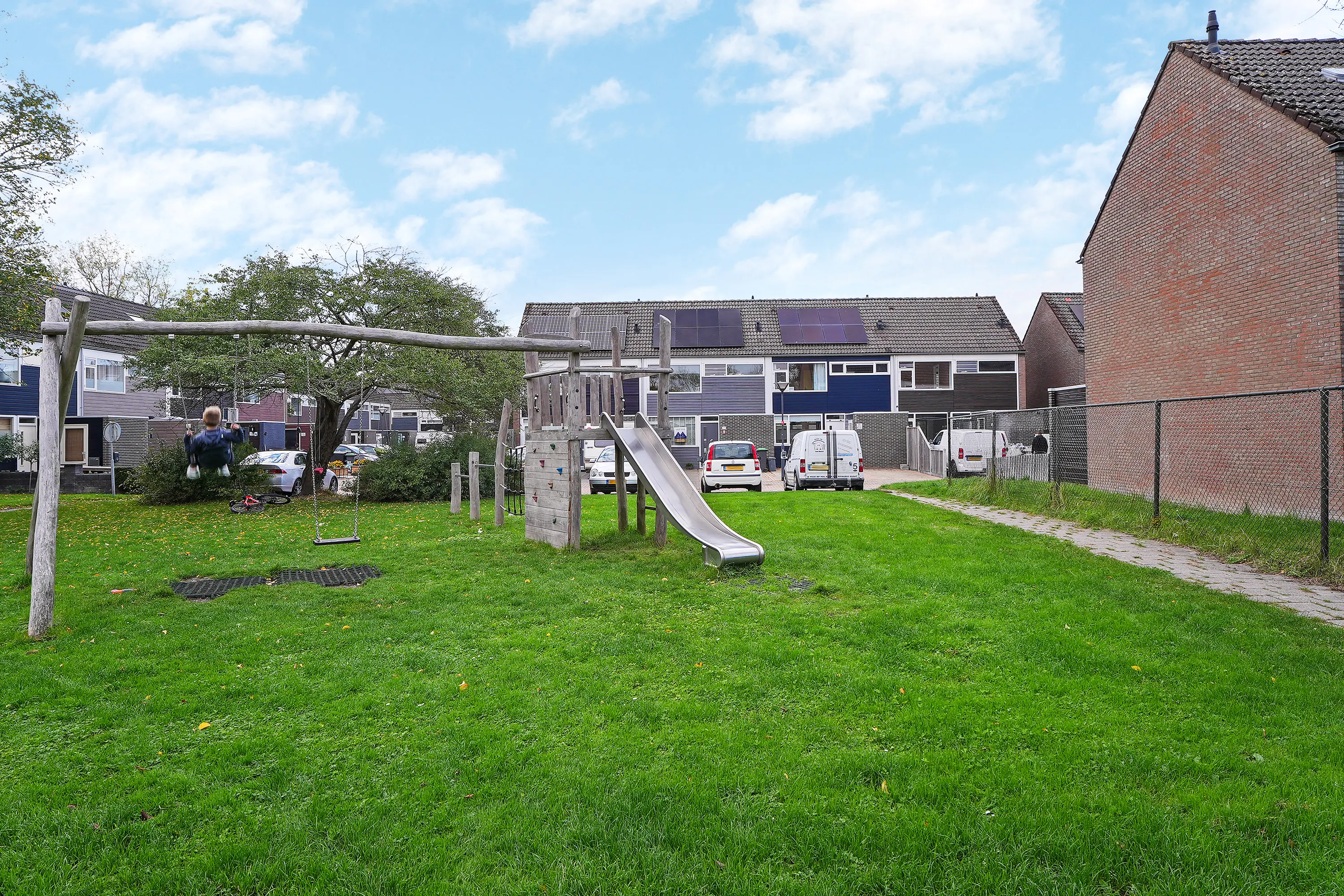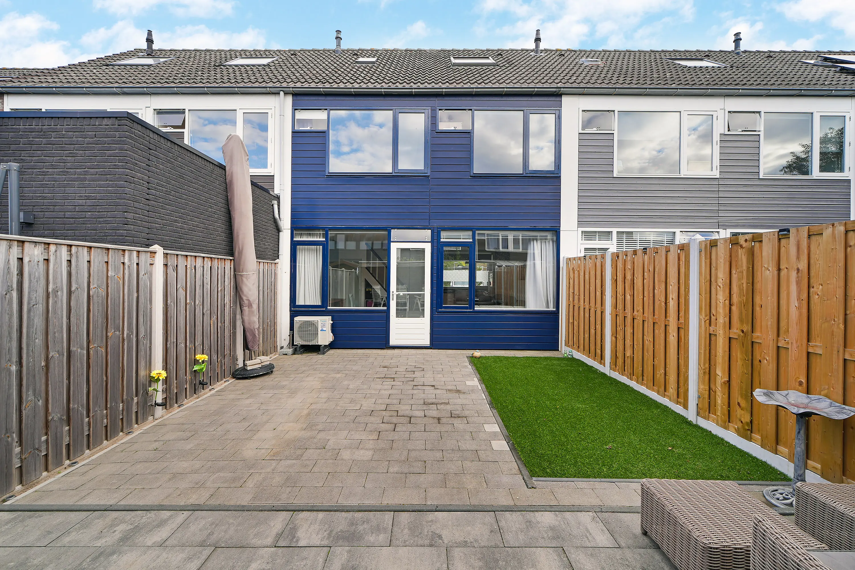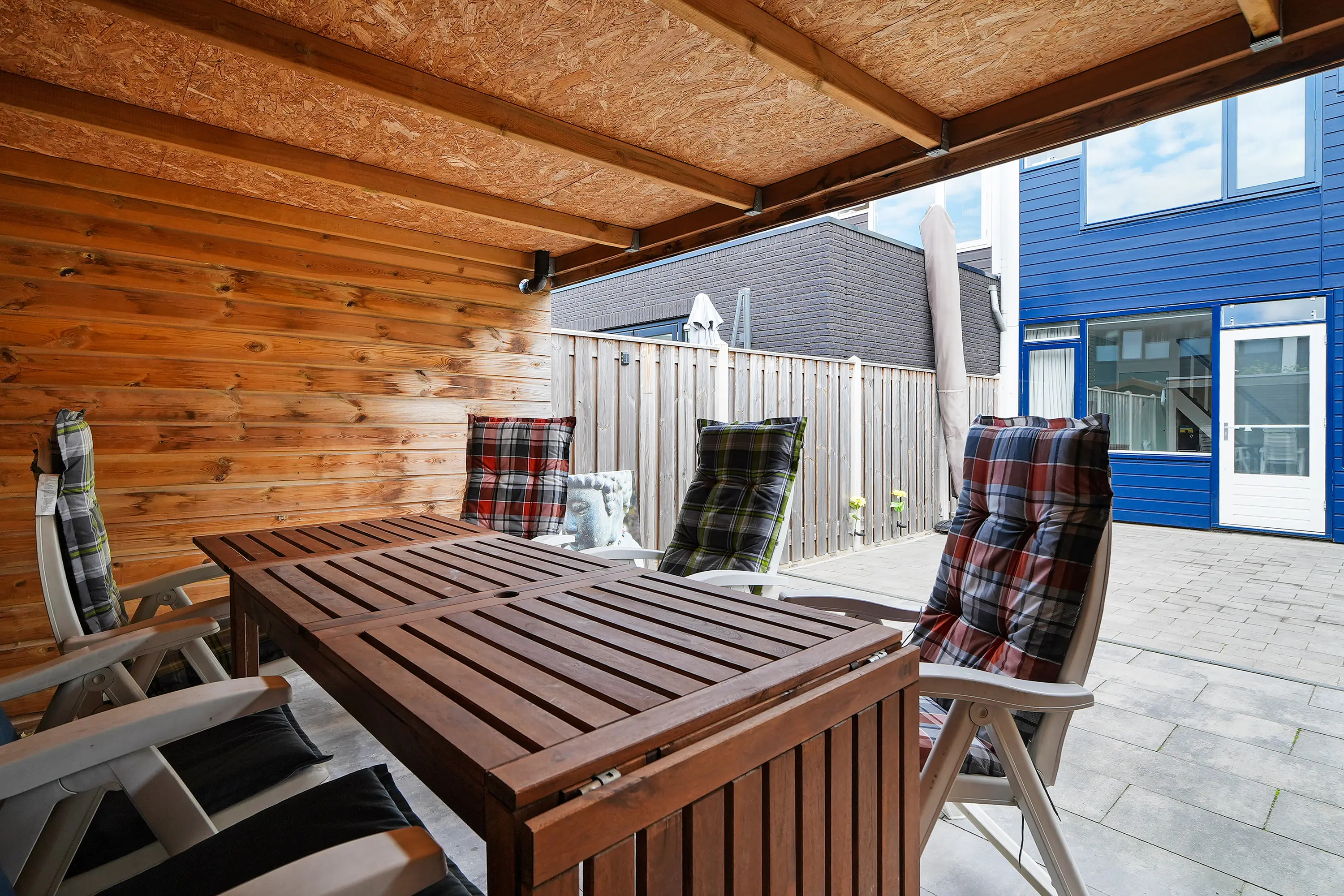 De achtertuin is in 2022 vernieuwd met nieuwe bestrating, schuttingen en een fraaie overkapping. De schutting aan de linkerzijde (vanuit de woning gezien) is recent nog vervangen. De tuin ligt op het westen en heeft geen vrije achterom. Aan de voorzijde is ruimte voor twee auto’s en kunnen fietsen worden gestald in de berging.