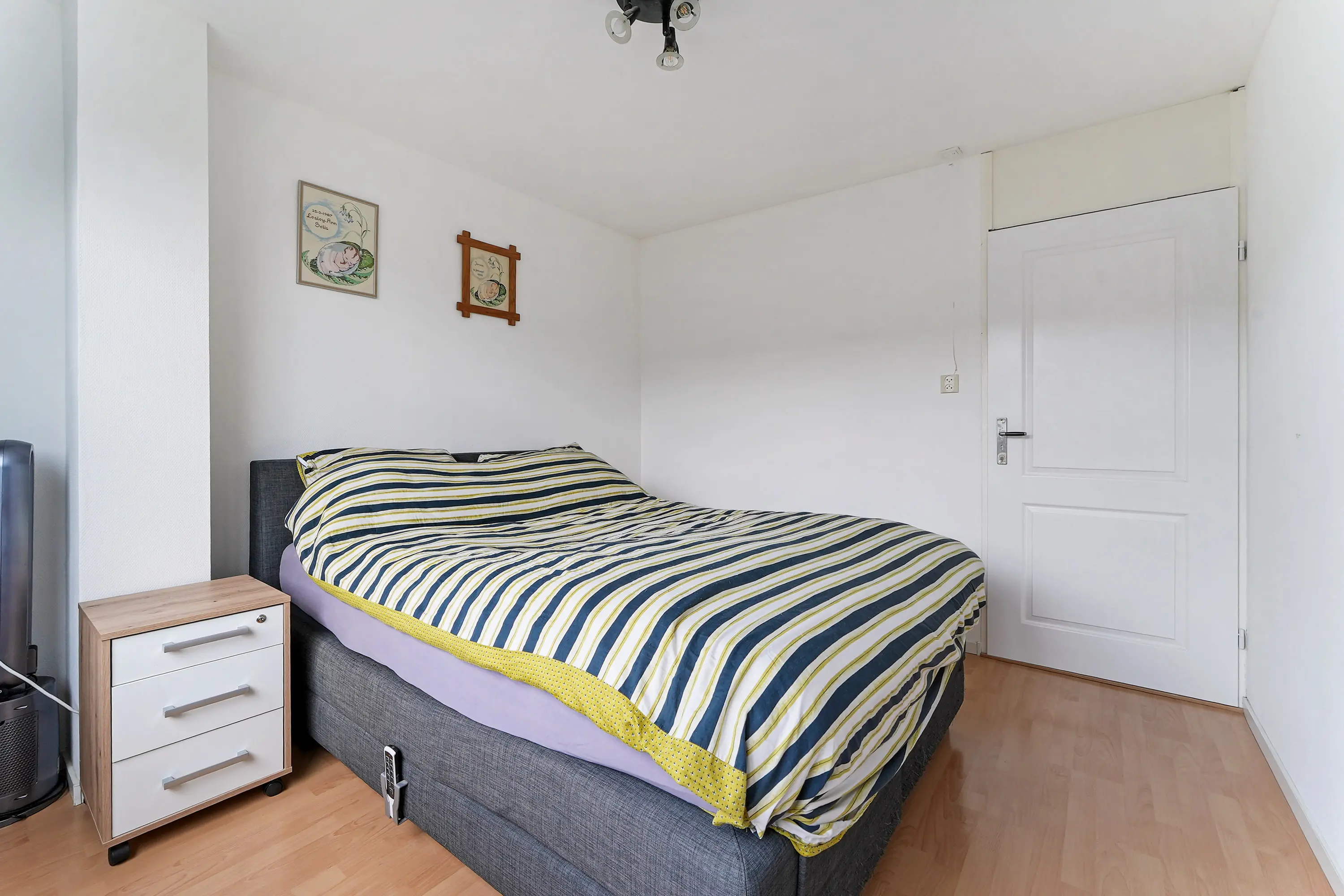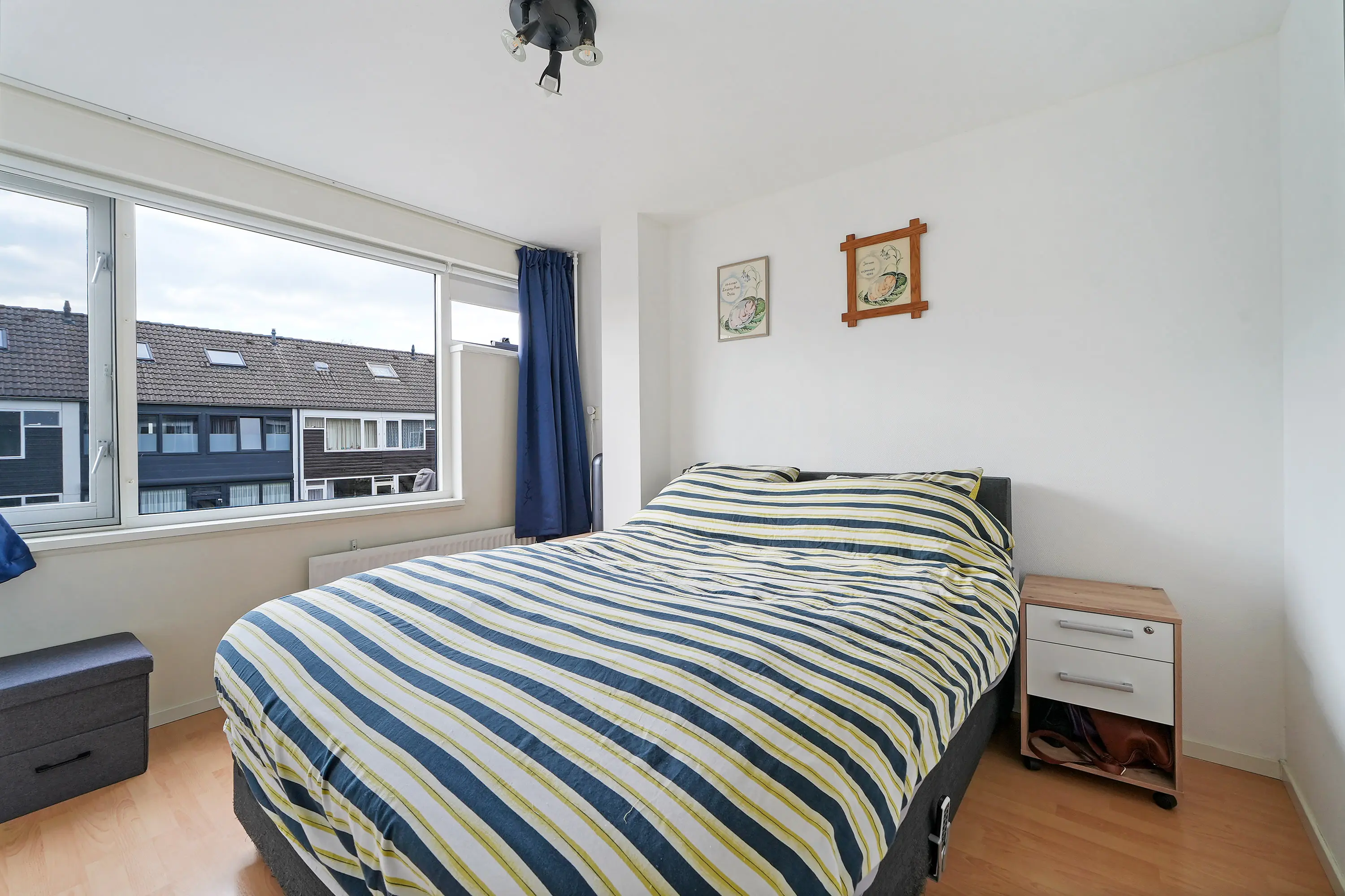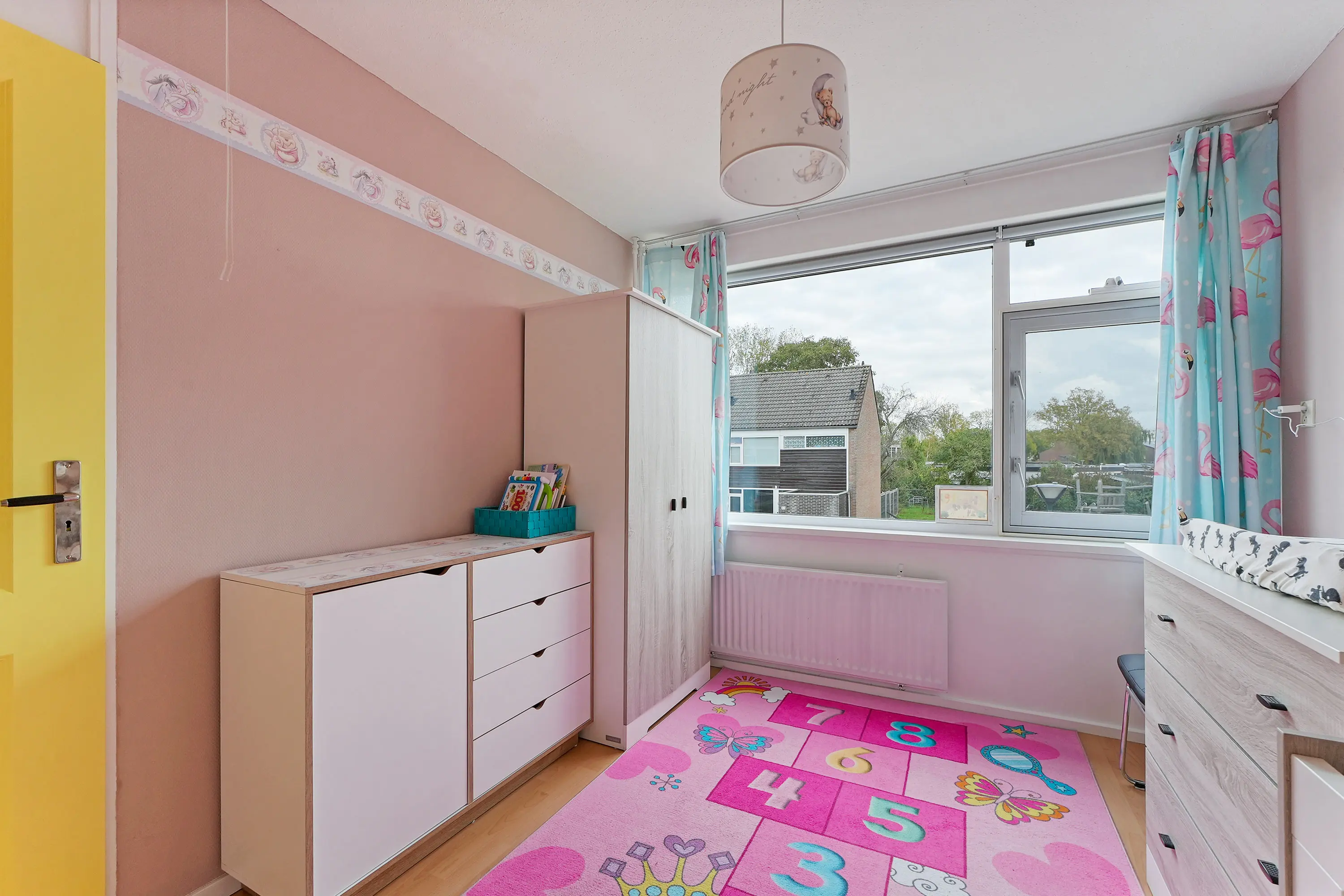 De eerste verdieping biedt vier kamers, waarvan drie slaapkamers en een royale badkamer. Twee slaapkamers liggen aan de achterzijde, één aan de voorzijde. De moderne badkamer (2023) is eveneens aan de voorzijde gesitueerd en beschikt over een ligbad, douche, tweede toilet en wastafelmeubel. Ook hier zijn kunststof kozijnen geplaatst.