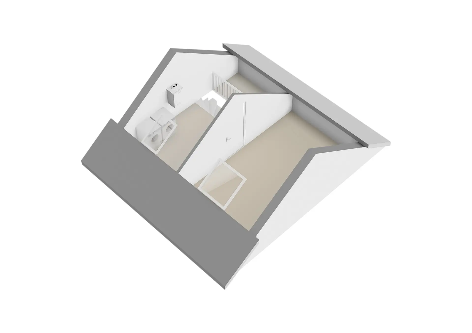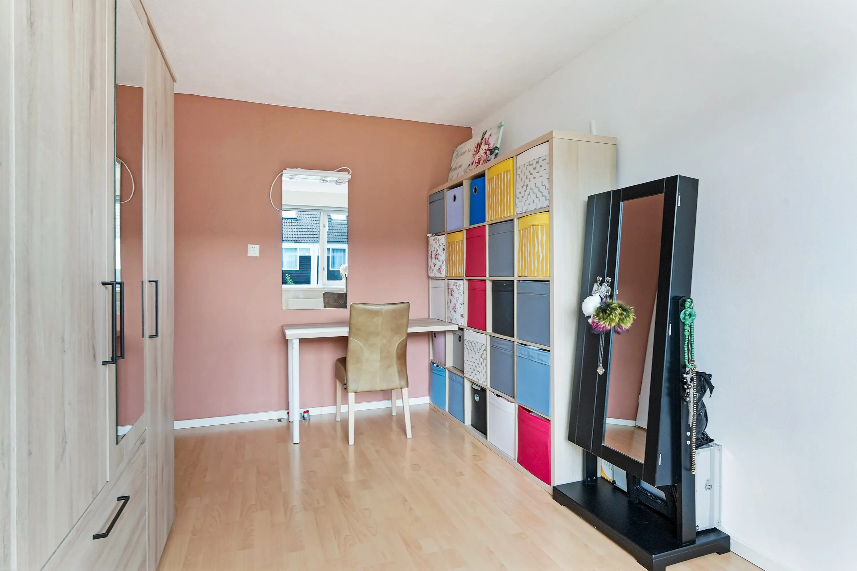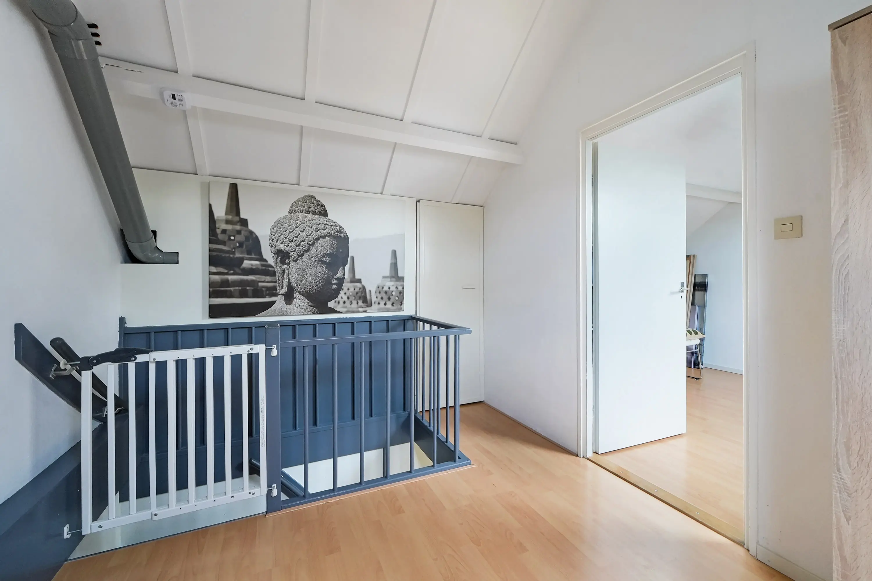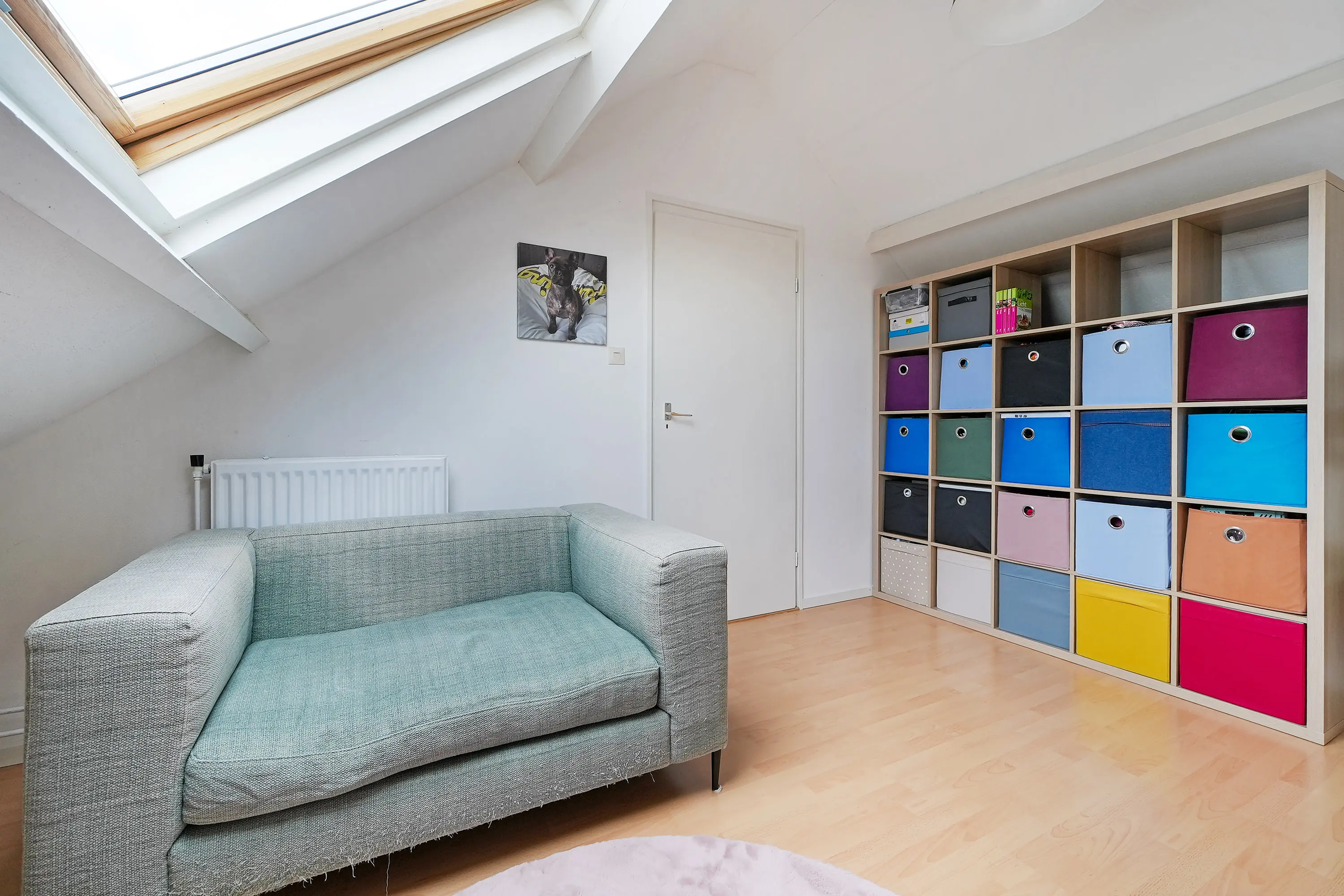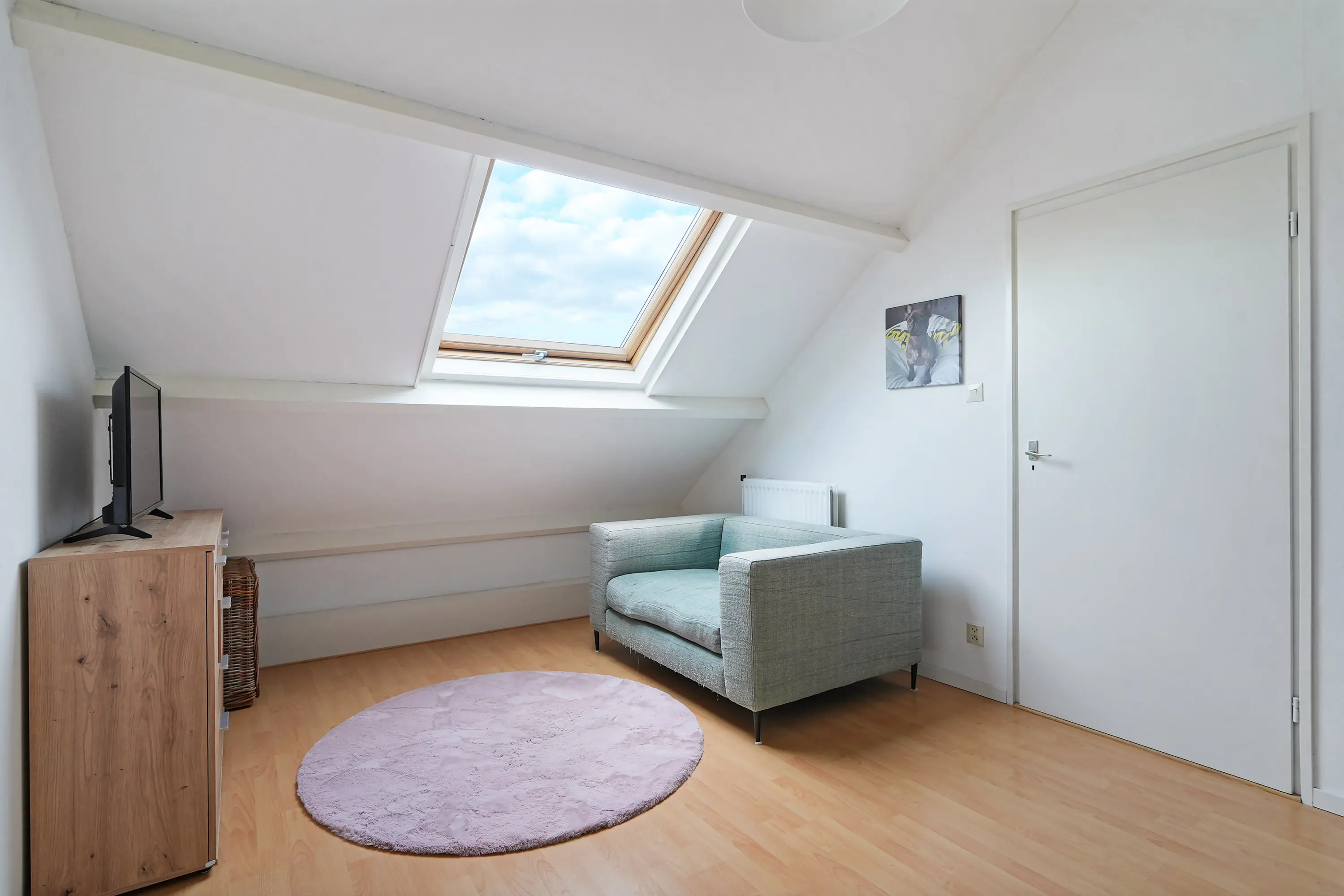 De tweede verdieping is verrassend ruim en ingedeeld met een overloop, aansluitingen voor witgoed, de cv-installatie en de omvormer van de PV-panelen. Daarnaast bevindt zich hier een vierde slaapkamer, uitstekend te gebruiken als kantoor of hobbyruimte.