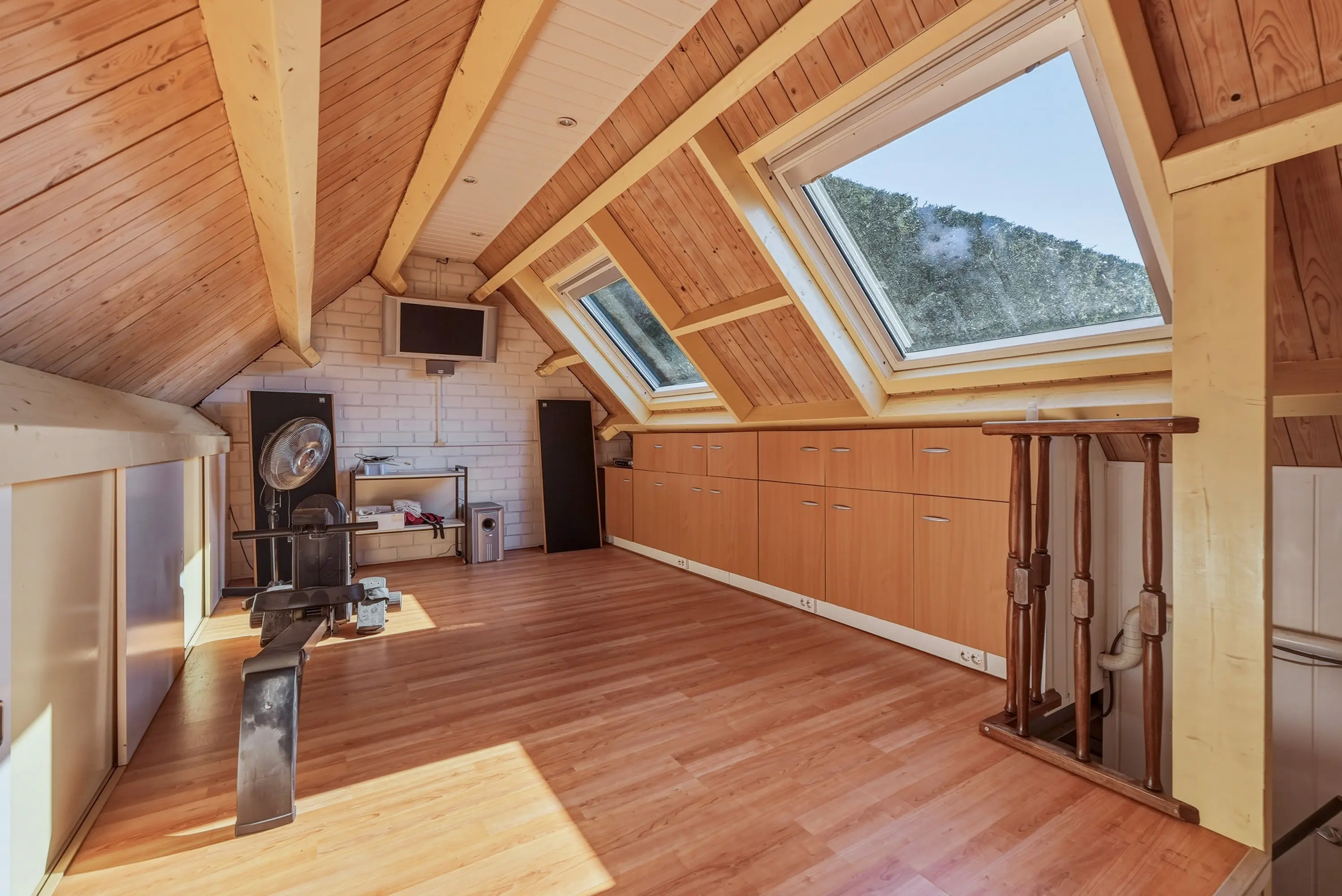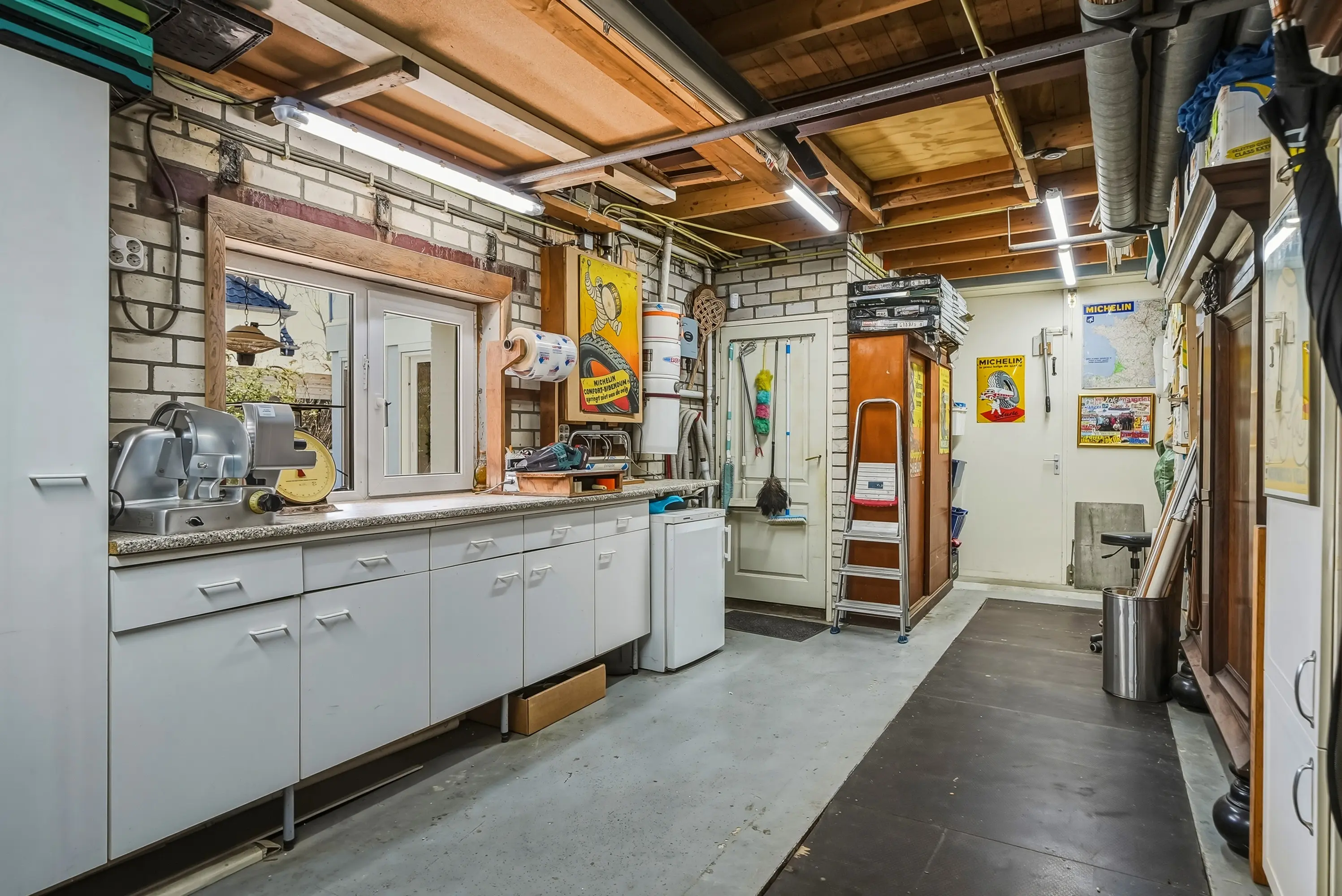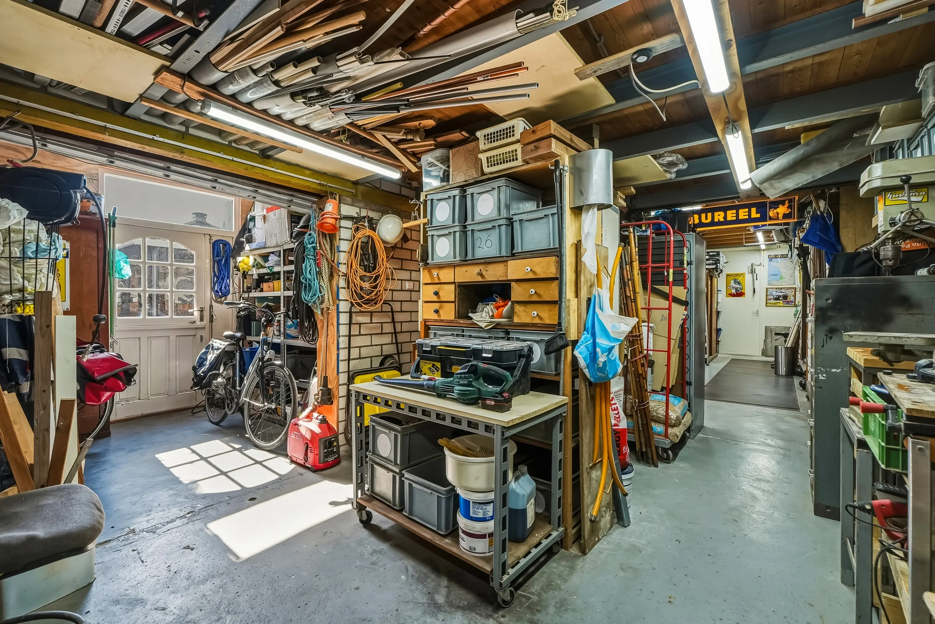 De ruime garage met zolderverdieping is een absoluut pluspunt van deze woning. De begane grond biedt volop ruimte voor het stallen van fietsen, motoren of het inrichten van een werkplaats. Via de vaste trap bereikt u de praktische zolderverdieping, ideaal als extra opslagruimte, hobbyruimte of — na aanpassingen — als atelier, werkstudio of gastenverblijf. Dankzij de royale afmetingen en de zelfstandige ligging naast de woning is dit een bijzonder multifunctioneel geheel met talloze gebruiksmogelijkheden.