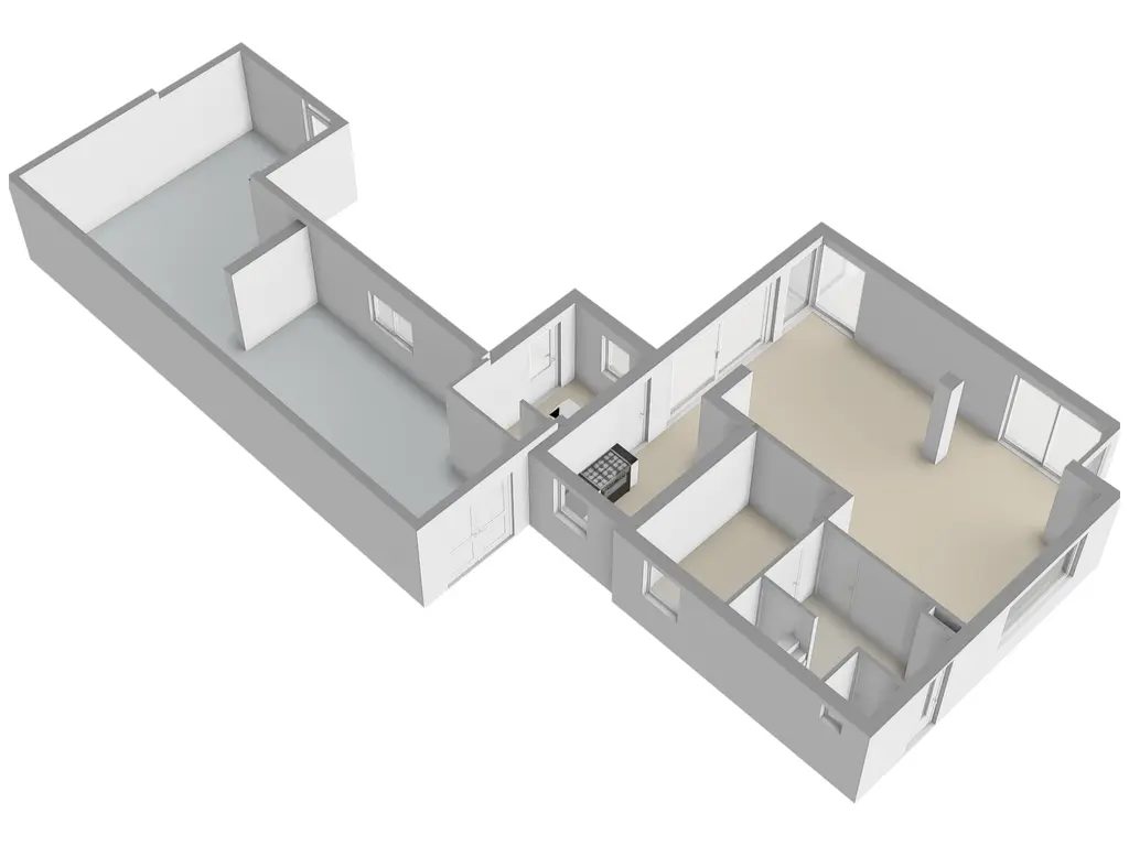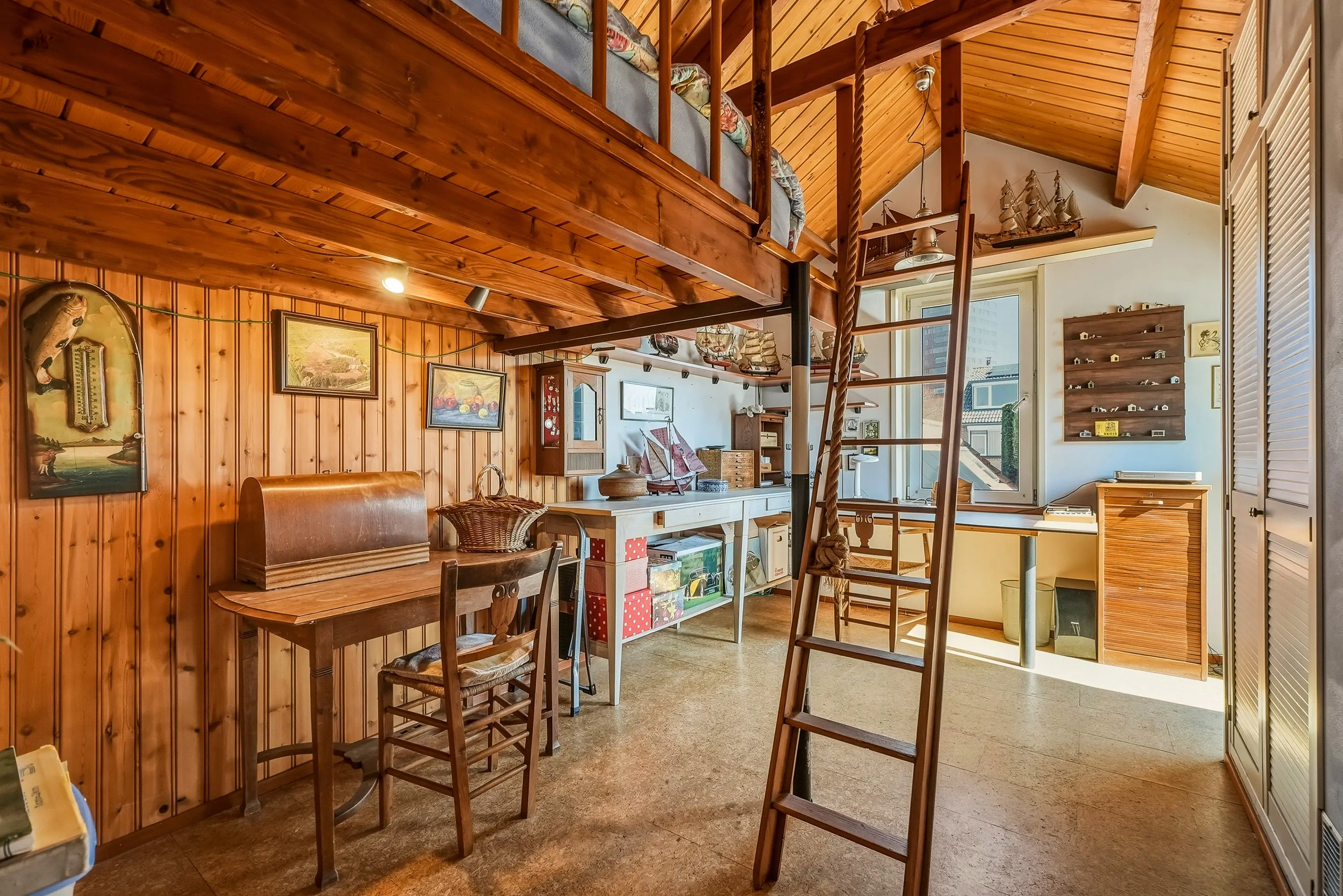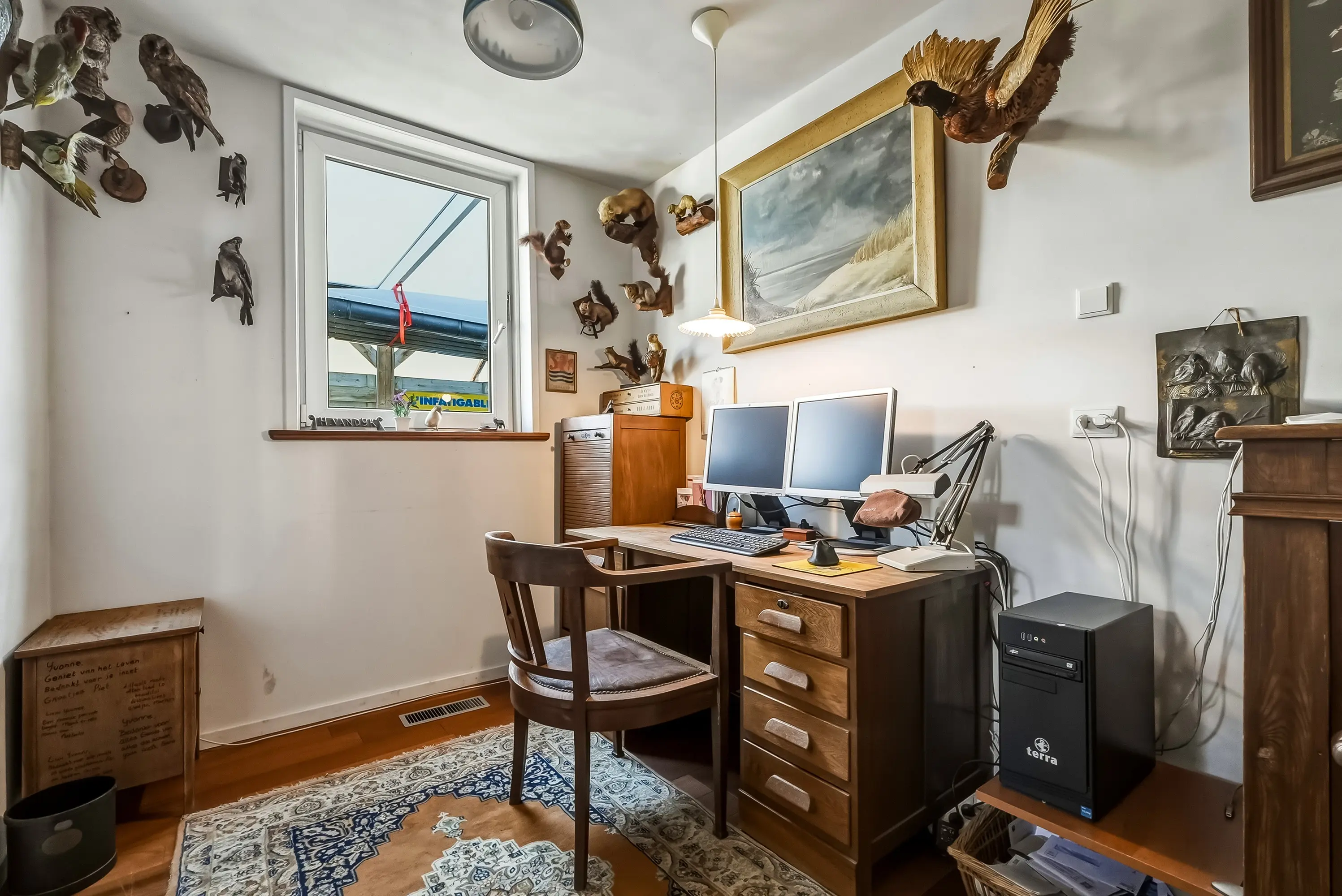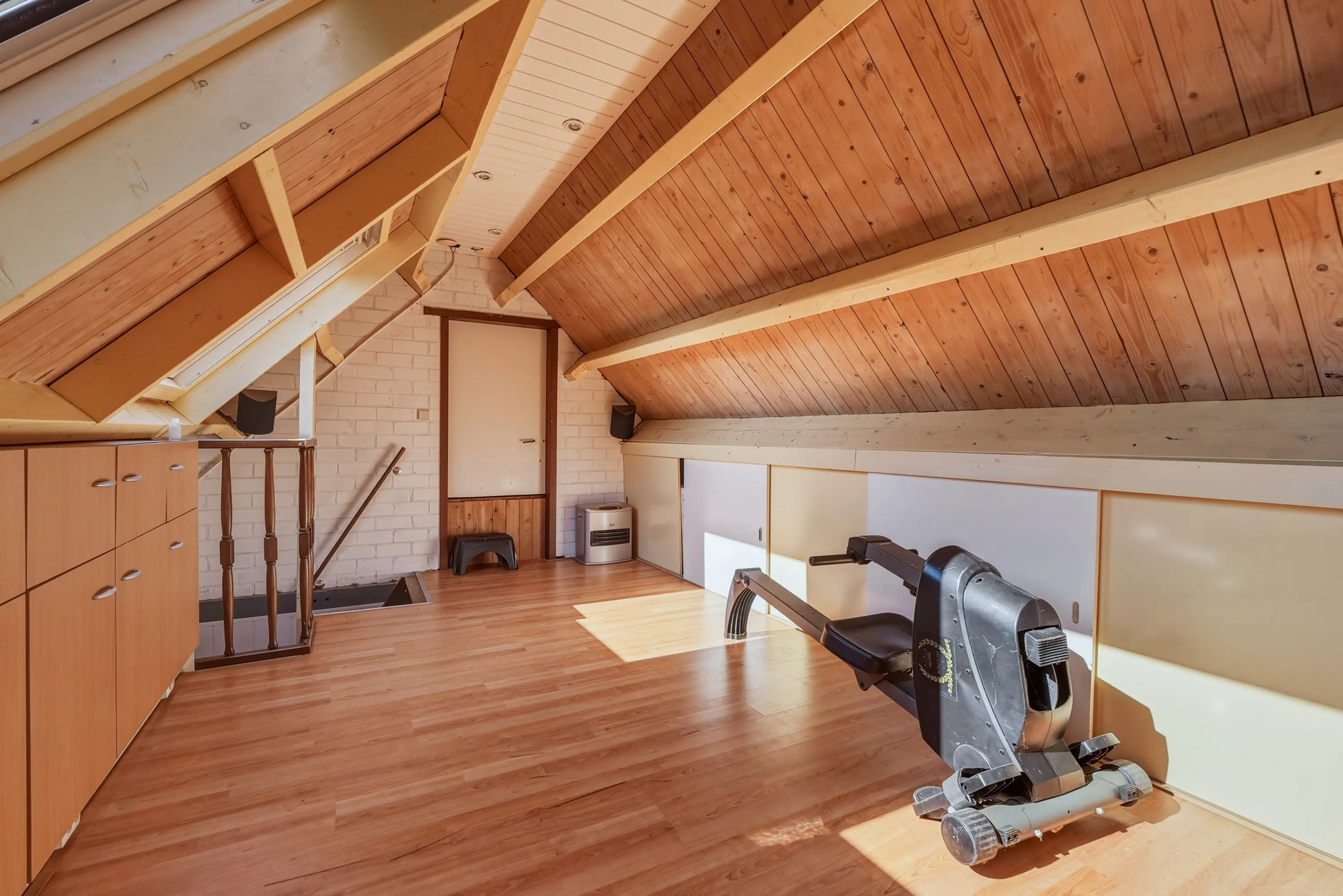 De ruime garage met zolderverdieping is een absoluut pluspunt van deze woning. De begane grond biedt volop ruimte voor het stallen van fietsen, motoren of het inrichten van een werkplaats. Via de vaste trap bereikt u de praktische zolderverdieping, ideaal als extra opslagruimte, hobbyruimte of — na aanpassingen — als atelier, werkstudio of gastenverblijf. Dankzij de royale afmetingen en de zelfstandige ligging naast de woning is dit een bijzonder multifunctioneel geheel met talloze gebruiksmogelijkheden.