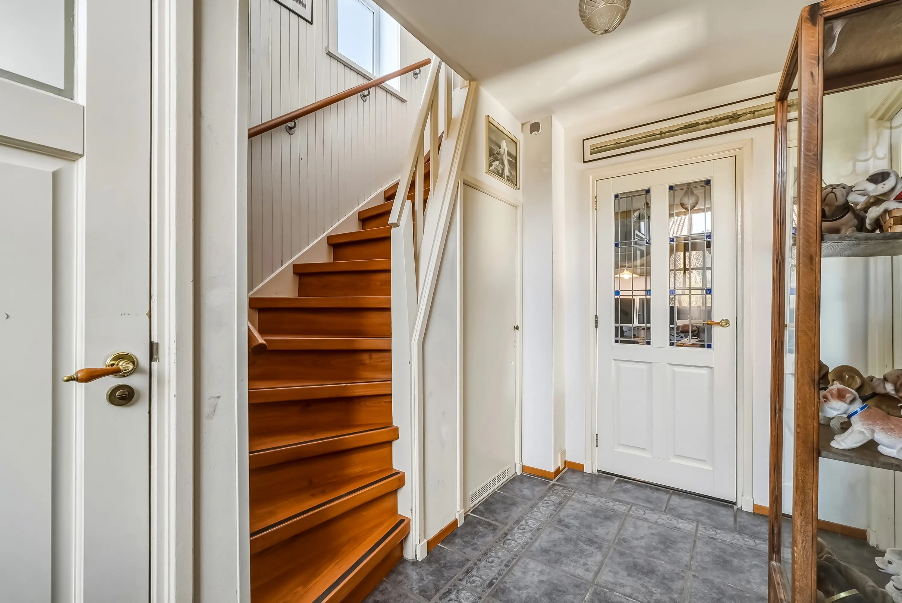 De hal met meterkast, toilet, trapkast, trapopgang naar de 1e verdieping en toegang tot het kantoor en de riante woonkamer. Bij binnenkomst in de woonkamer ervaart u direct licht, sfeer én ruimte. Doordat de woonkamer aan zowel de tuinzijde als de rechterzijde is uitgebouwd, heeft u meer dan genoeg ruimte voor een riante zit- en eethoek. Aan de tuinzijde loopt u via de grote kunststof schuifpui zo de tuin in.