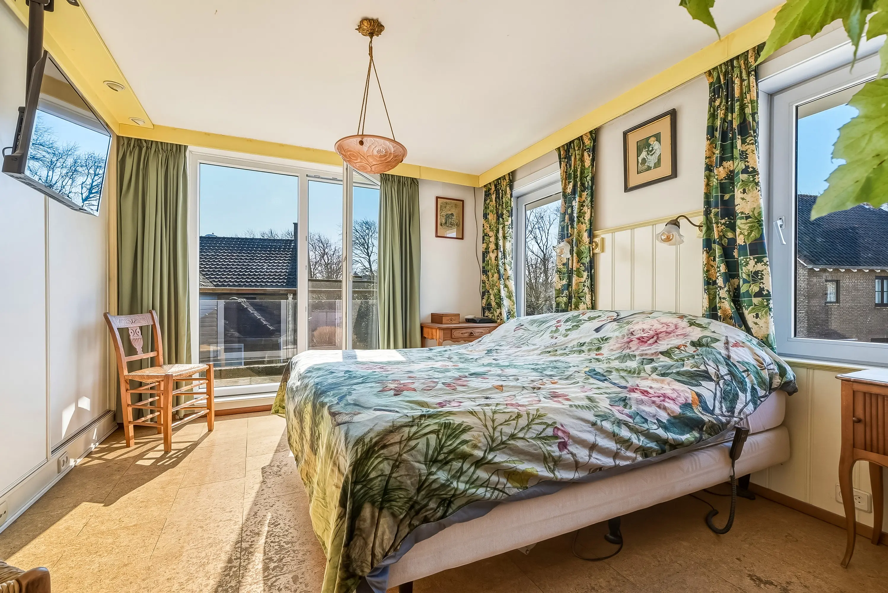 De overloop geeft toegang tot 3 mooie slaapkamers, waaronder de riante ouderslaapkamer en de sfeervolle, een beetje nostalgische slaapkamer met slaapniveau op hoogte. De recent vernieuwde badkamer biedt een ruime inloopdouche, tweede toilet en passend wastafelmeubel met waskom. Verder voorzien van een draai-/kiepraam en vloerverwarming.