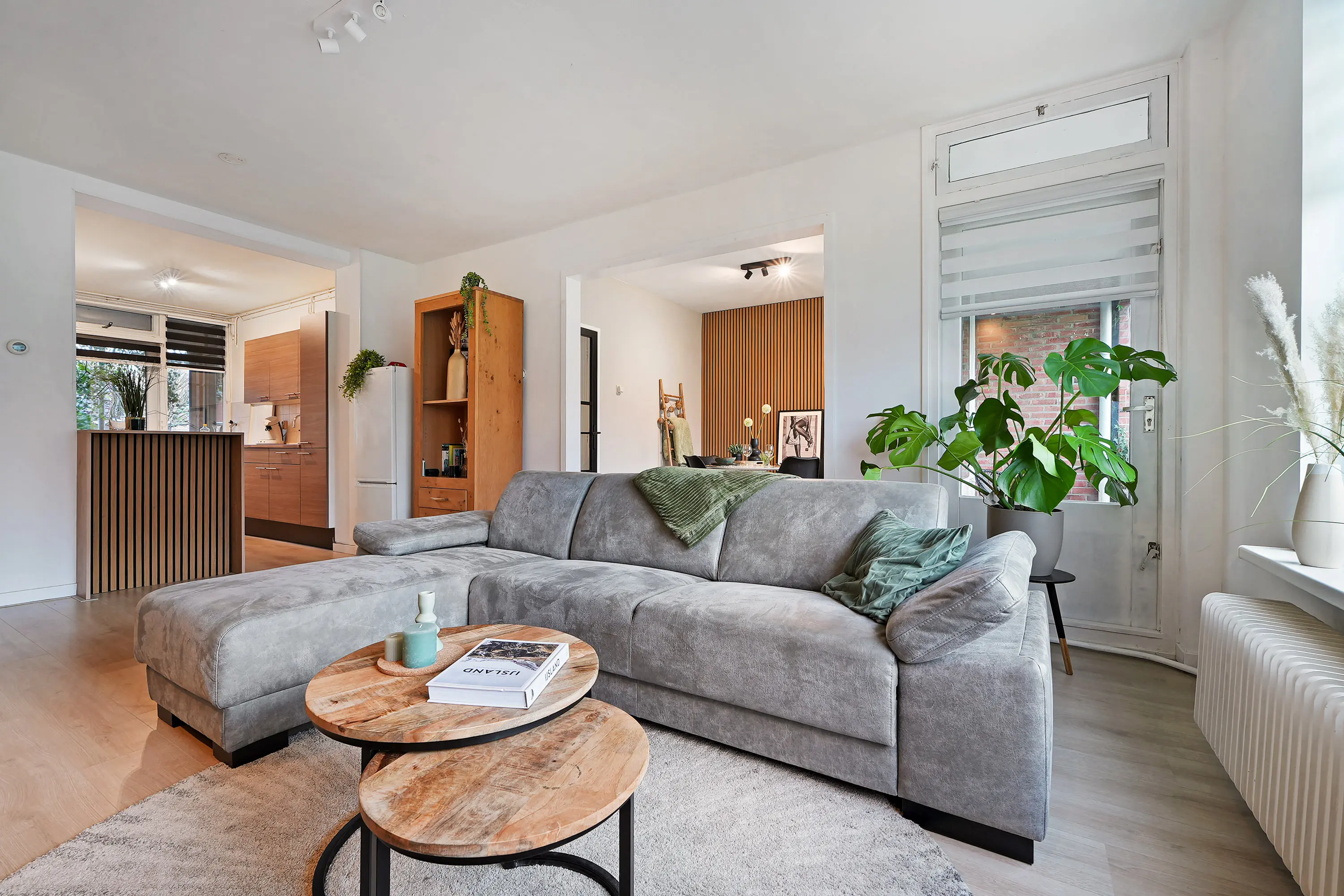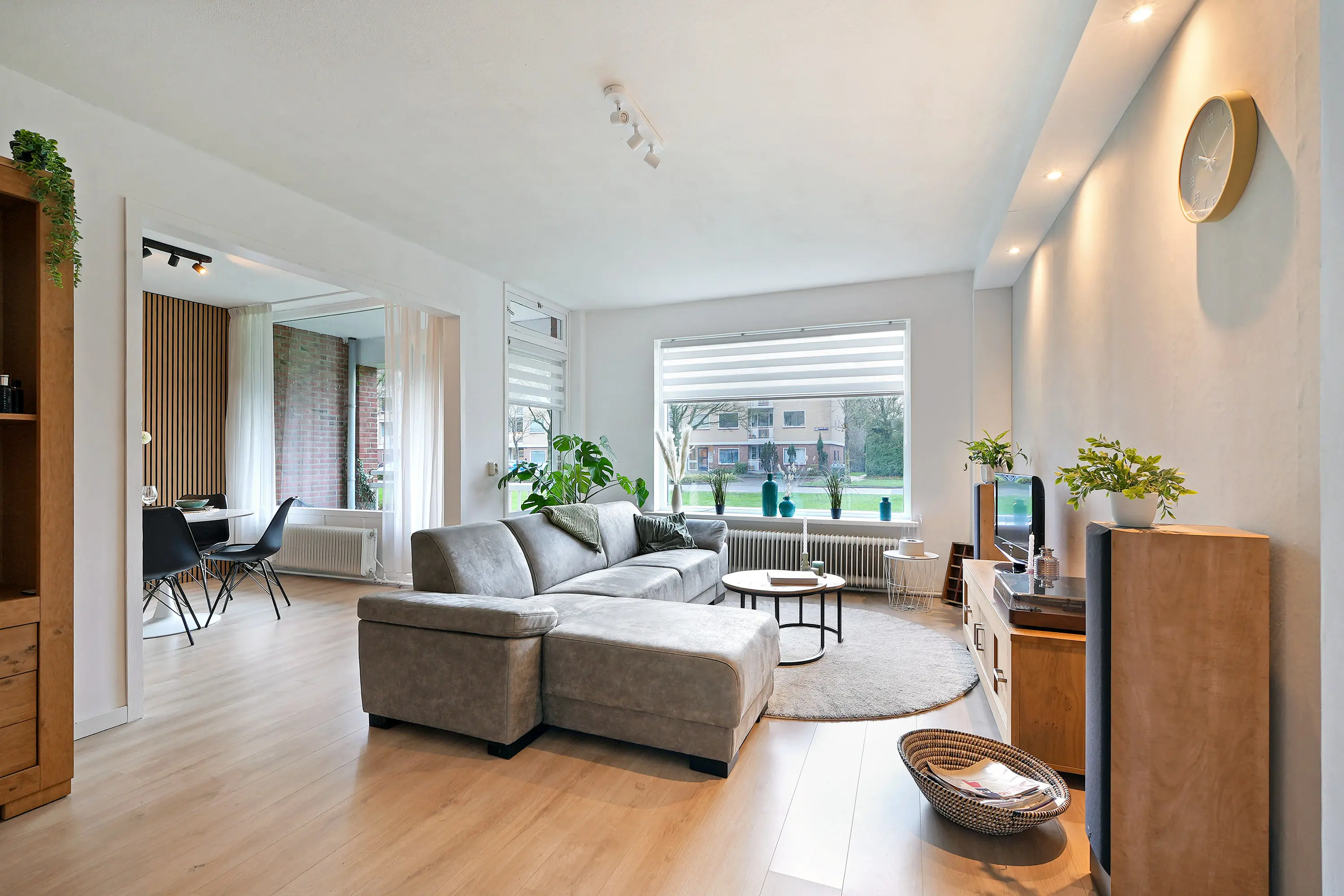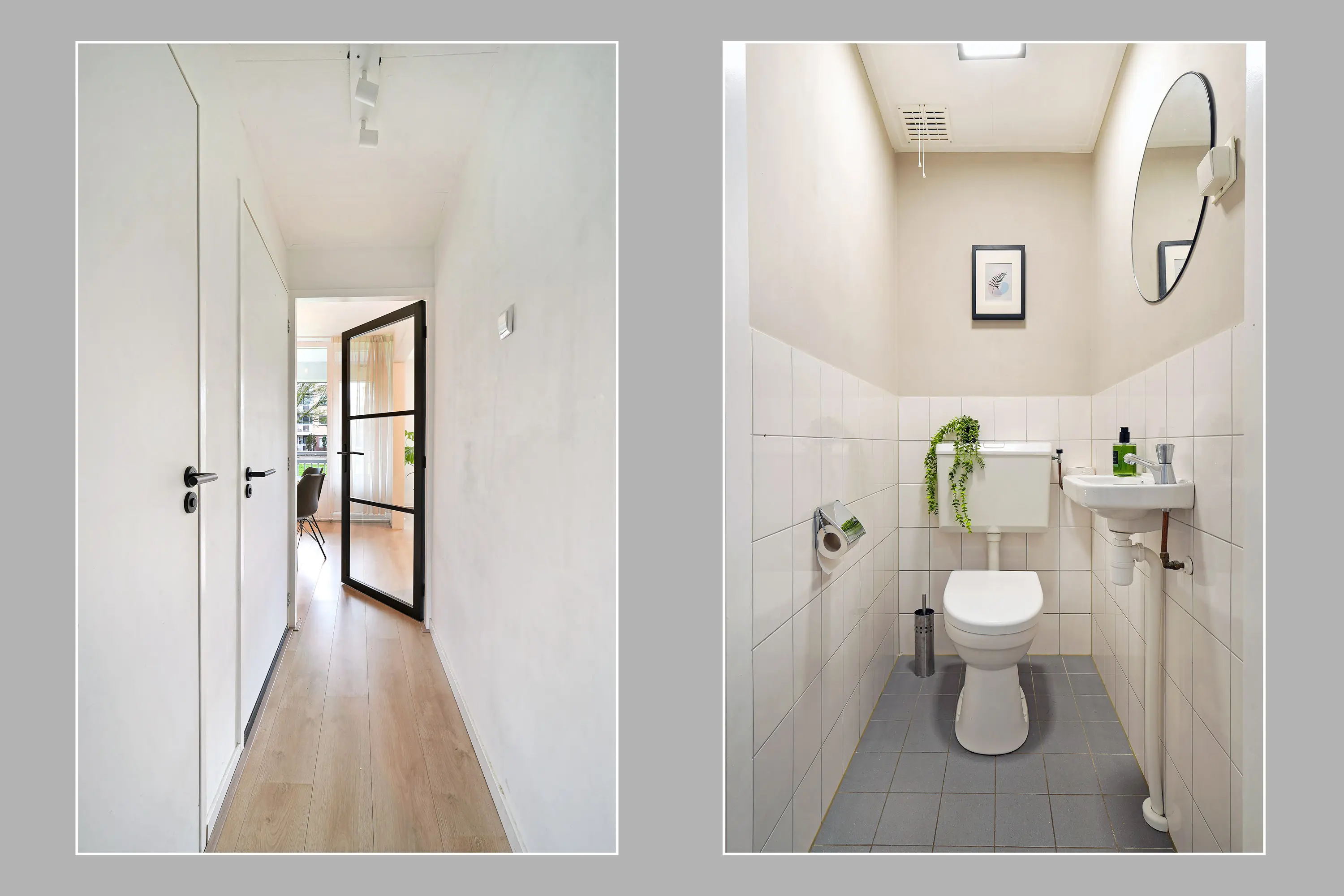 Je komt binnen in de hal met vernieuwde meterkast en doorgang naar de woonkamer. Zodra je de woonkamer binnenstapt, ervaar je direct de ruimtelijke en lichte uitstraling, met een prettig uitzicht op groen. Aan de voorzijde van het appartement bevindt zich de zithoek met aansluitend de eethoek. Vanuit hier heb je toegang tot het balkon, ofwel de loggia. Dankzij de ligging op het zuidwesten kun je hier tot in de late uurtjes heerlijk zitten.