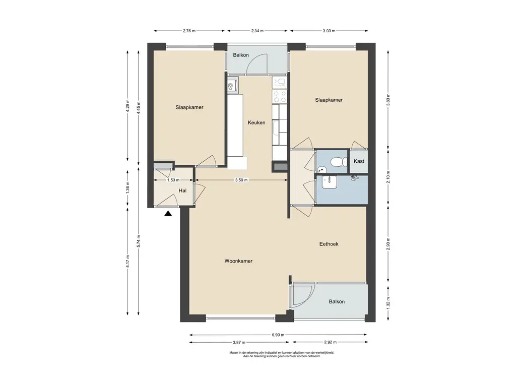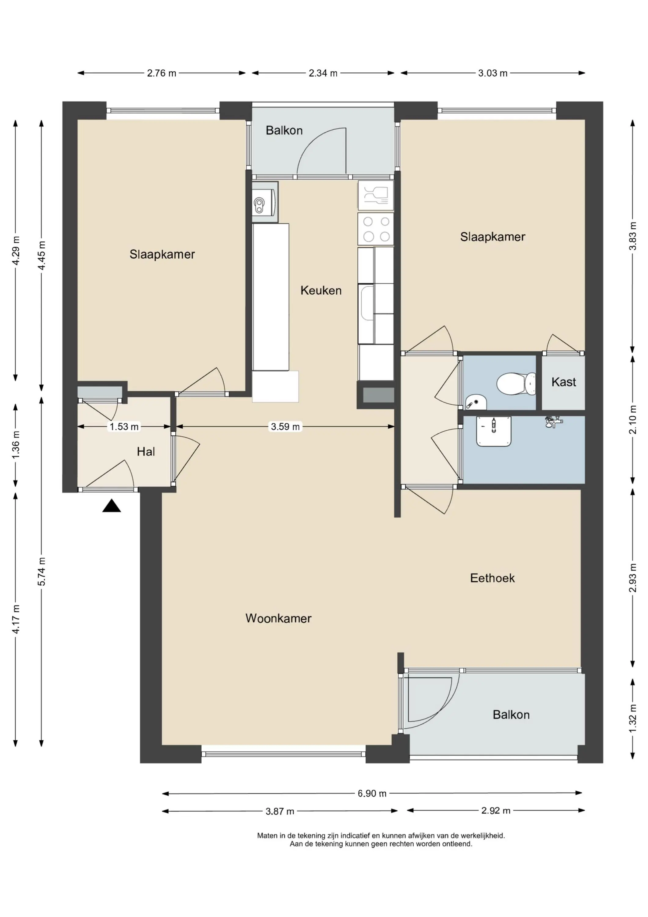 Deze informatie is door ons met de nodige zorgvuldigheid samengesteld. Onzerzijds wordt echter geen enkele aansprakelijkheid aanvaard voor enige onvolledigheid, onjuistheid of anderszins, dan wel de gevolgen daarvan. Alle opgegeven maten en oppervlakten zijn indicatief.