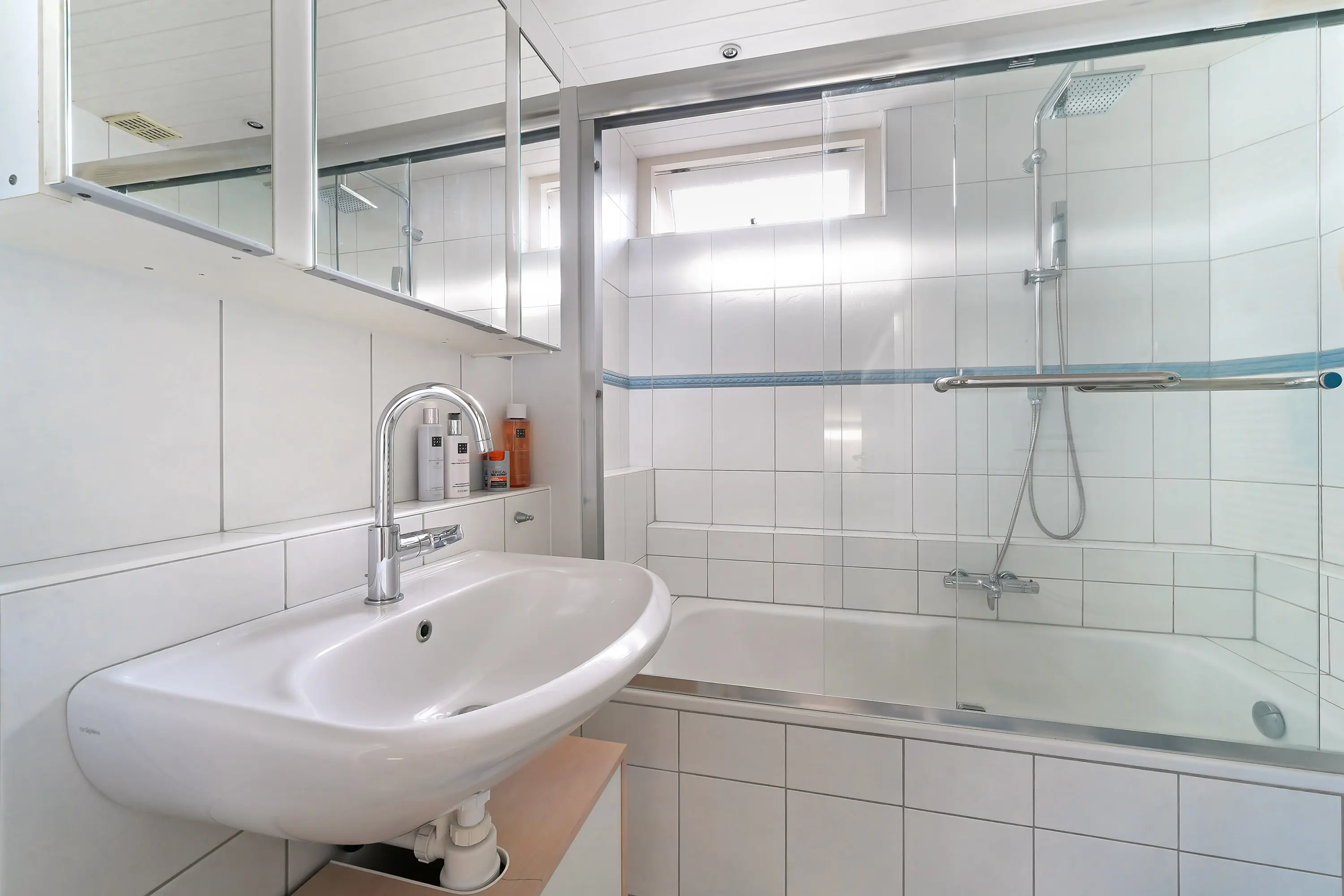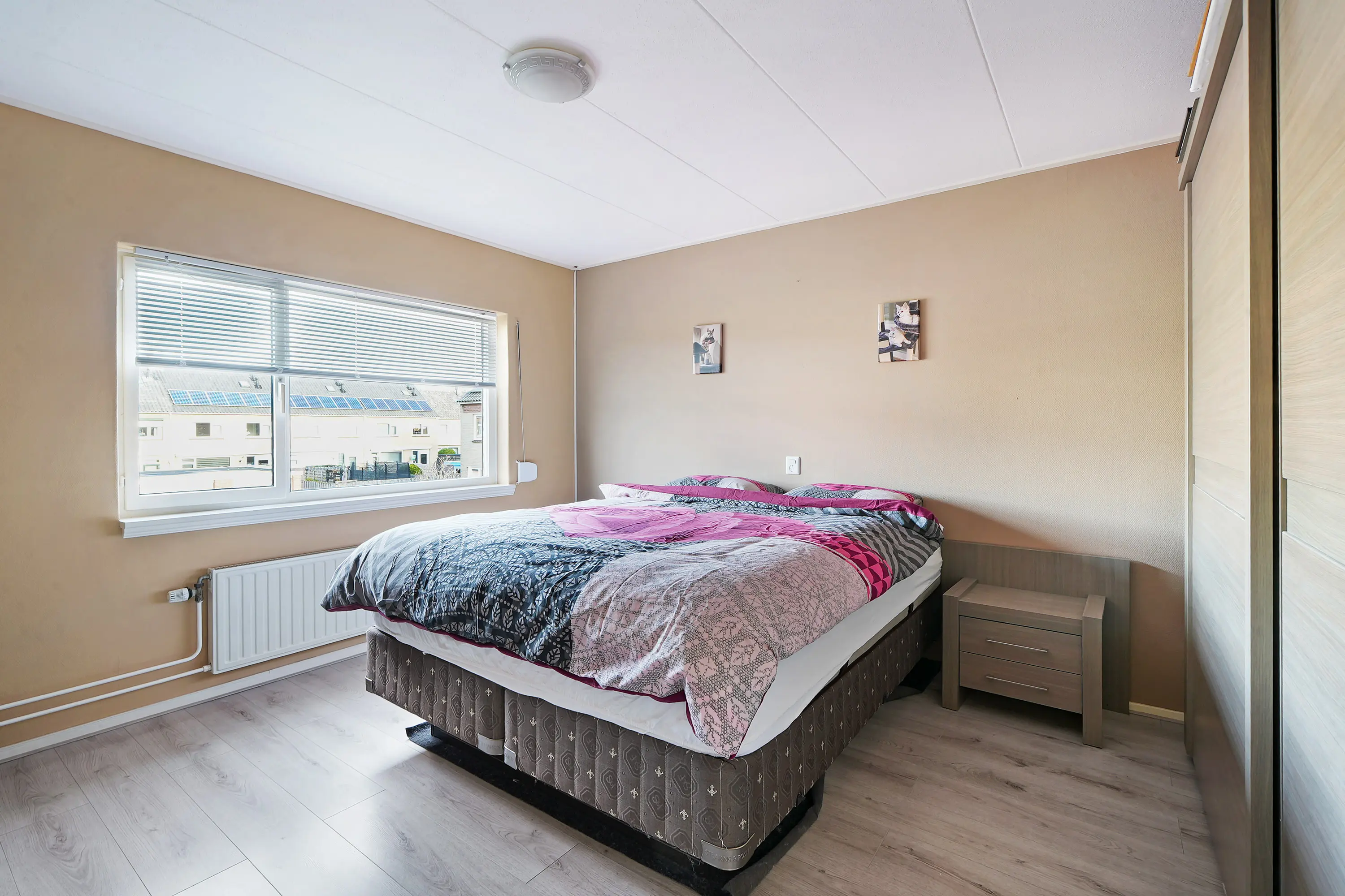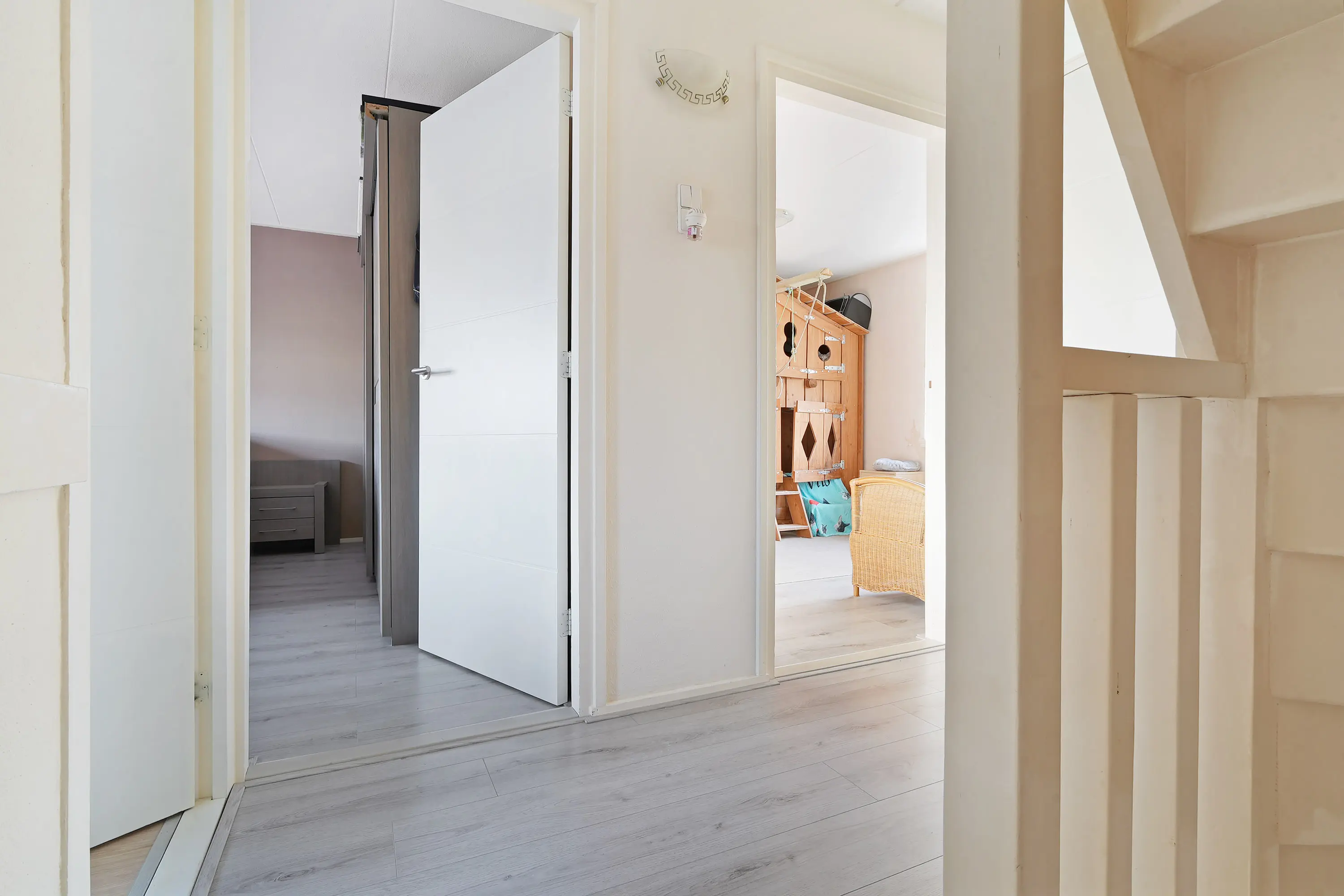Op de eerste verdieping treft u drie fijne slaapkamers, allen voorzien van rolluiken voor extra comfort en privacy. De badkamer is netjes afgewerkt en beschikt over alle benodigde voorzieningen, ideaal voor een gezin of thuiskantoor.
