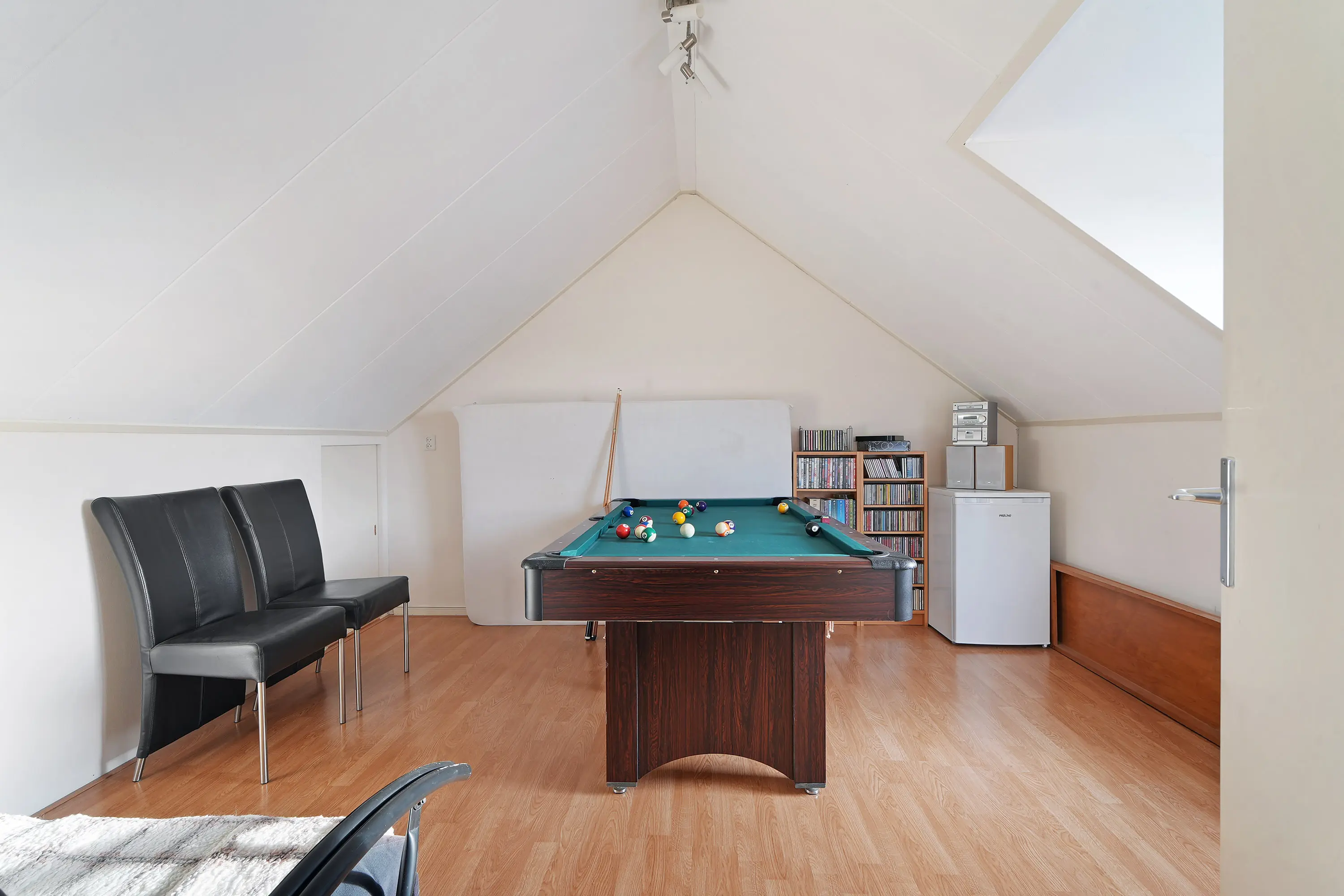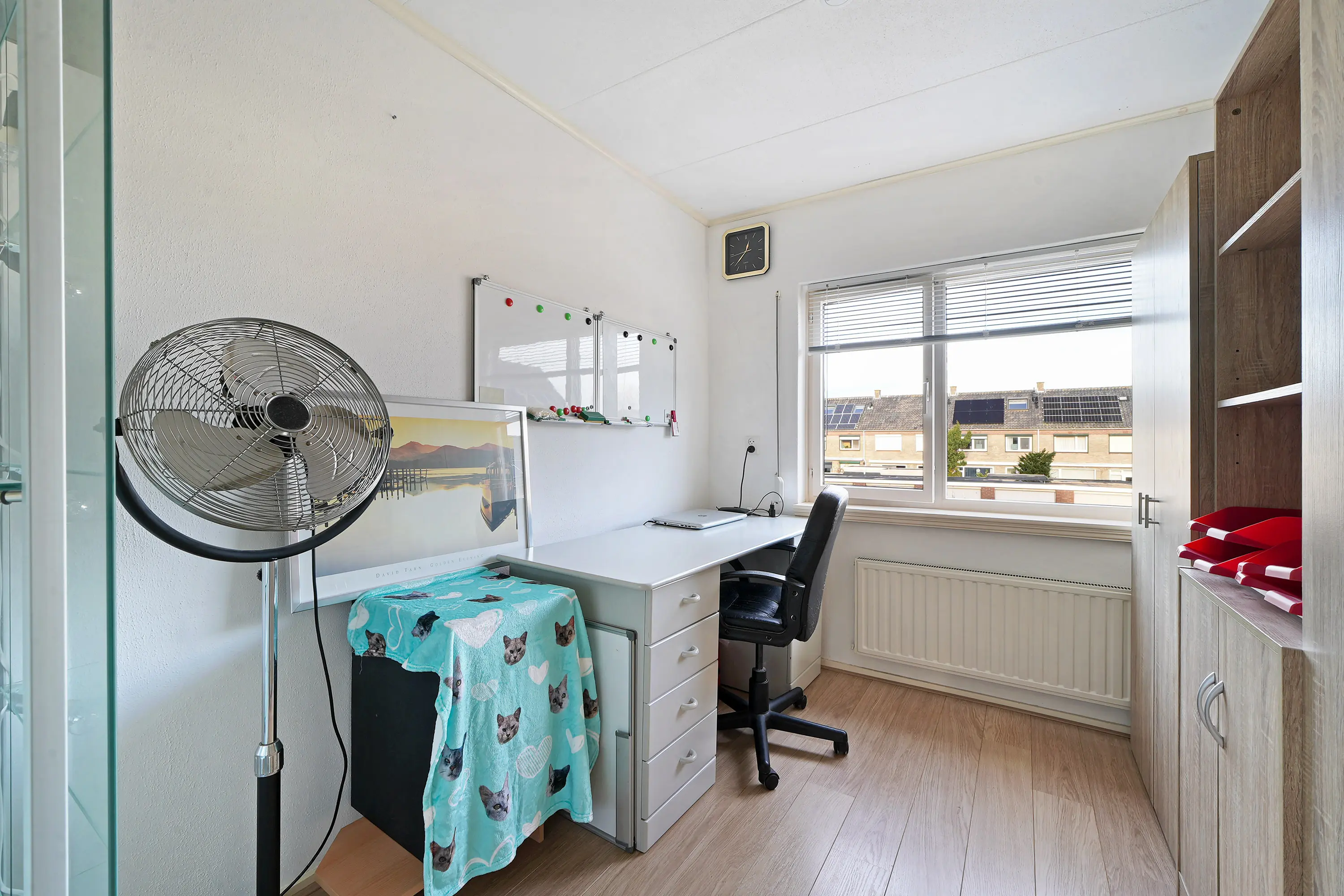 De tweede verdieping herbergt de vierde slaapkamer, perfect als kinderkamer, hobbyruimte of werkkamer. Hier vindt u ook de recent vernieuwde cv-installatie uit 2024 op de overloop, wat zorgt voor een energiezuinig en comfortabel binnenklimaat.