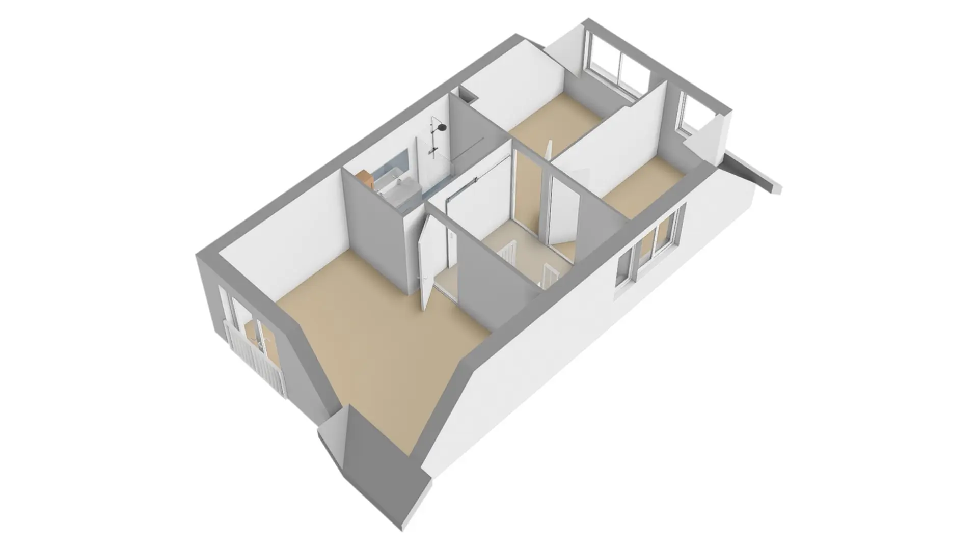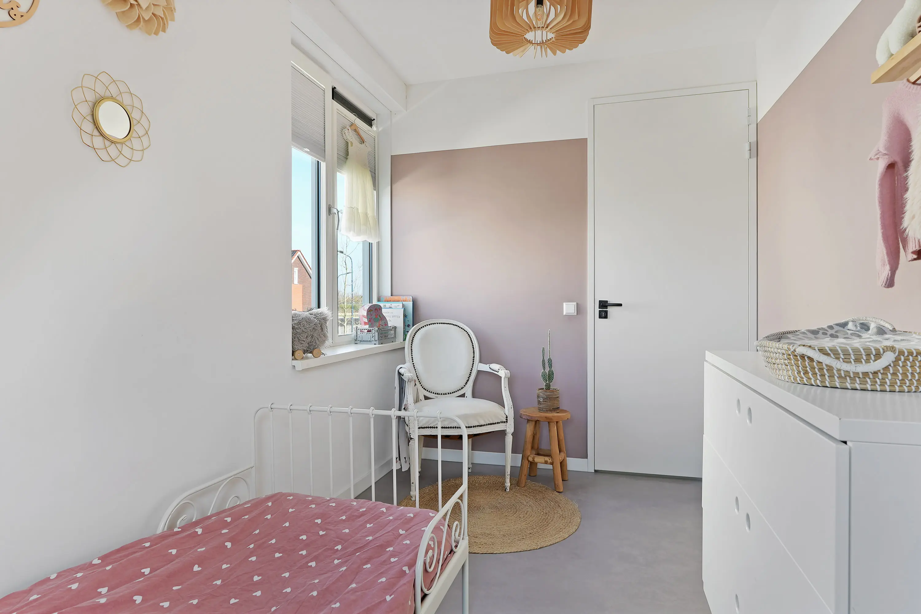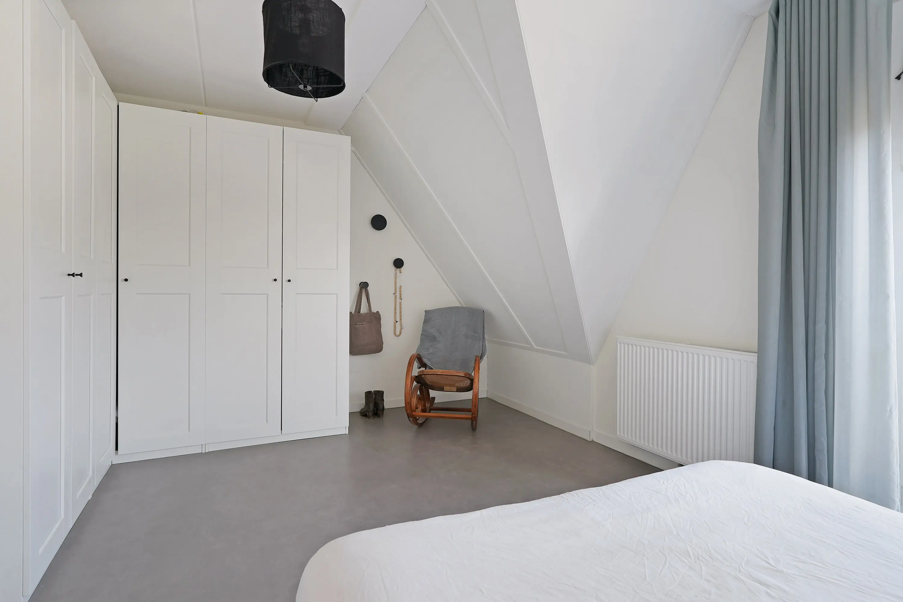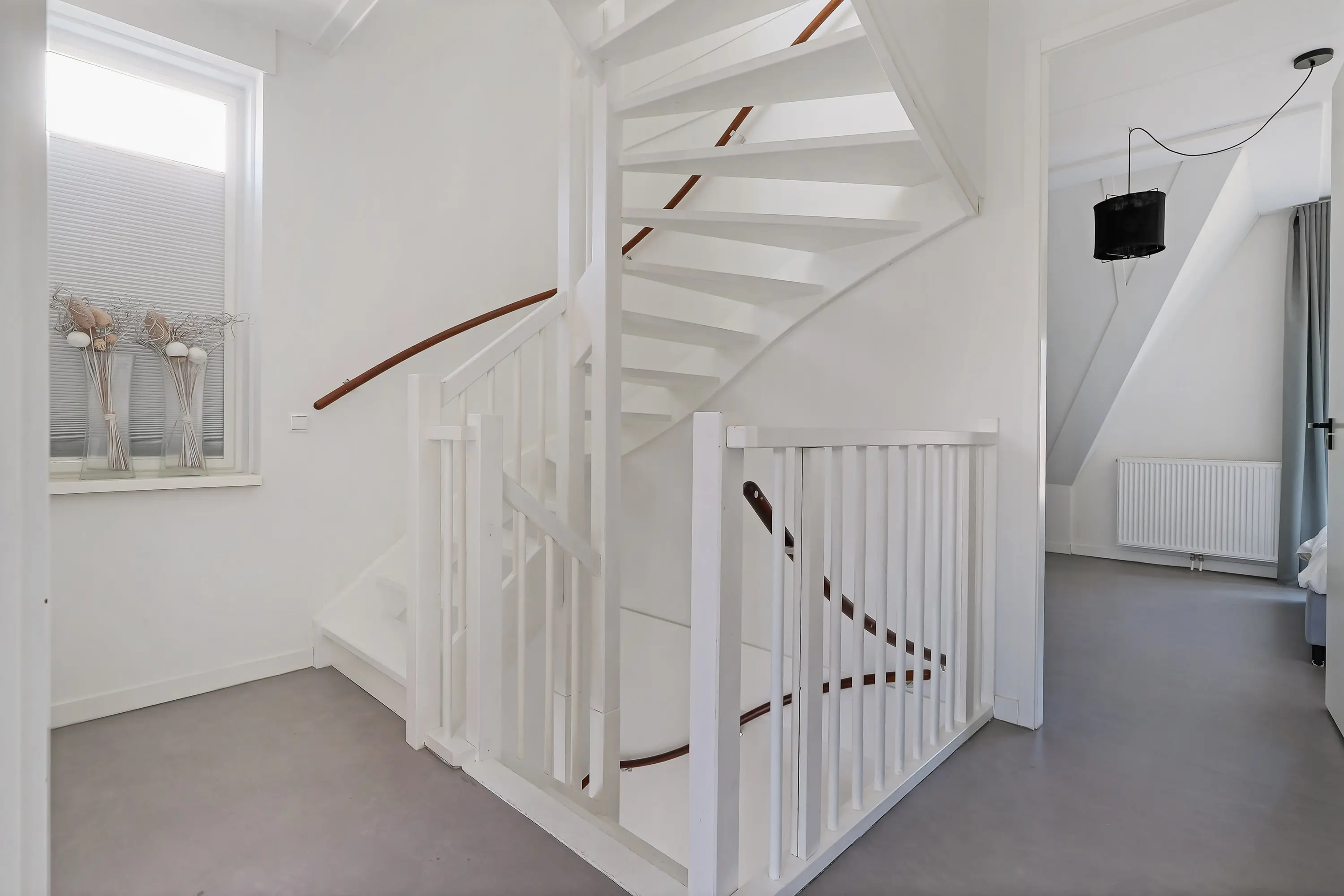 Tweede verdieping: Overloop met c.v.-opstelling en witgoedaansluitingen. En een flinke 4e slaapkamer, ook prima te gebruiken als werk- of speelruimte. Ook is hier nog voldoende bergruimte.
