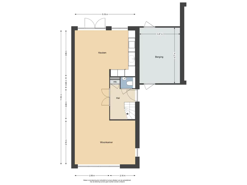 Deze informatie is door ons met de nodige zorgvuldigheid samengesteld. Onzerzijds wordt echter geen enkele aansprakelijkheid aanvaard voor enige onvolledigheid, onjuistheid of anderszins, dan wel de gevolgen daarvan. Alle opgegeven maten en oppervlakten zijn indicatief.