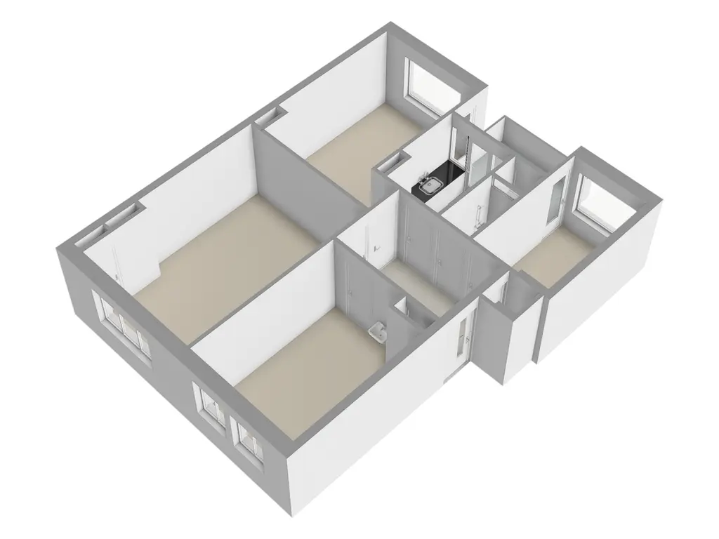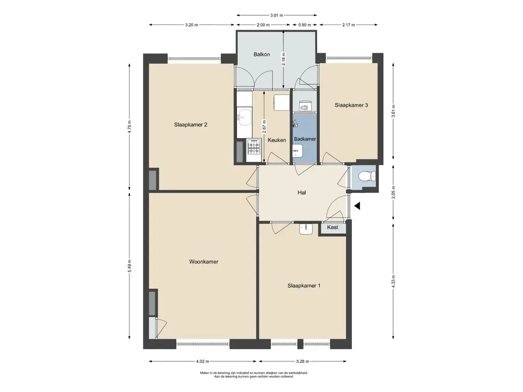 U komt binnen in de hal, hier bevindt zich het toilet en de meterkast, verder heeft u vanuit hier toegang tot 3 fijne slaapkamers. In het midden bevindt zich de badkamer en keuken, vanuit de keuken heeft u toegang tot het balkon.