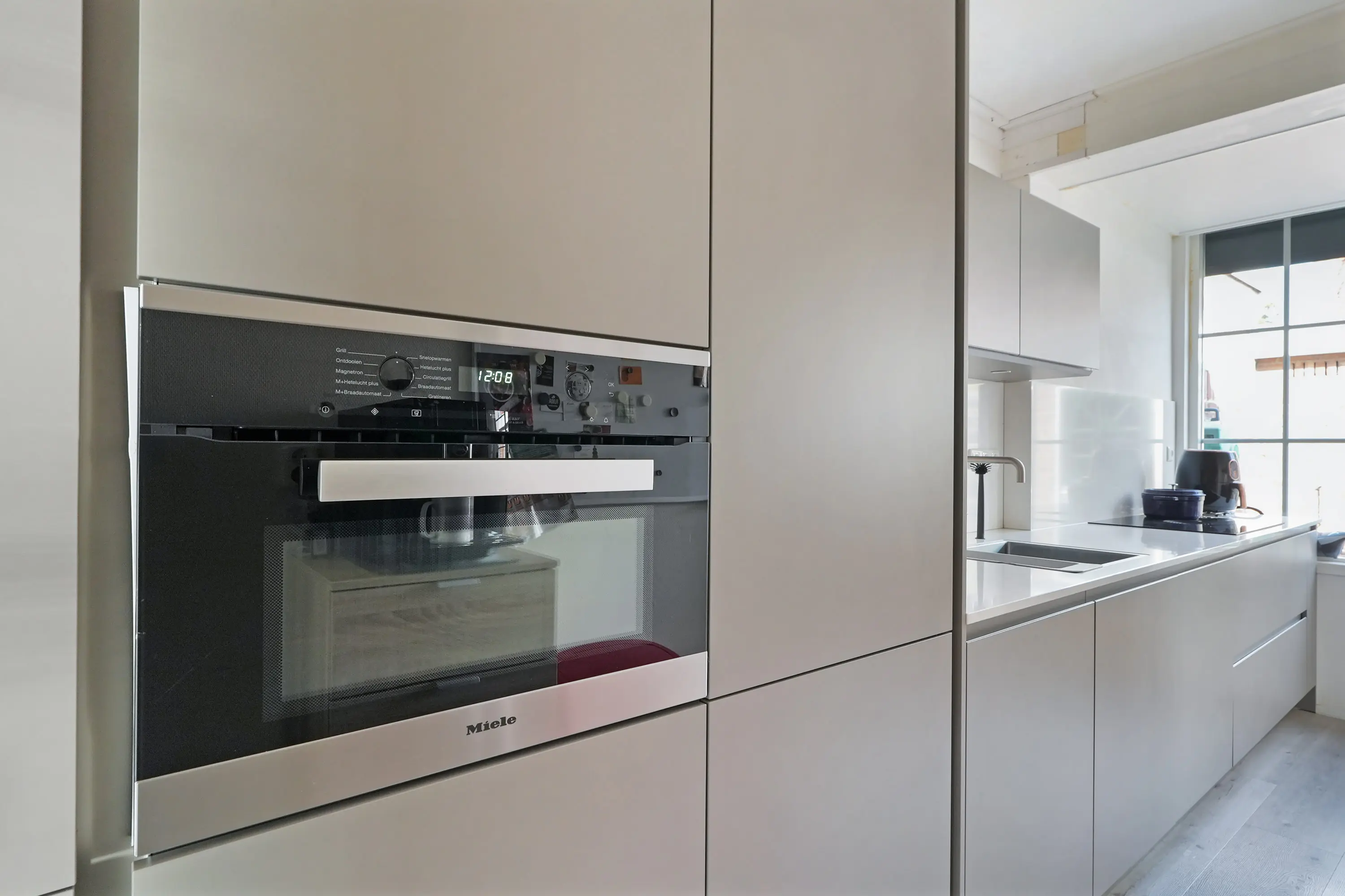 De halfopen keuken is recent vernieuwd en modern uitgevoerd met hoogwaardige materialen en inbouwapparatuur. De keuken is voorzien van een Quooker-kraan en biedt volop werk- en bergruimte. Ook hier zorgt elektrische vloerverwarming voor extra comfort. Daarnaast beschikt de woning over een waterontharder, wat bijdraagt aan comfort van uw installaties.