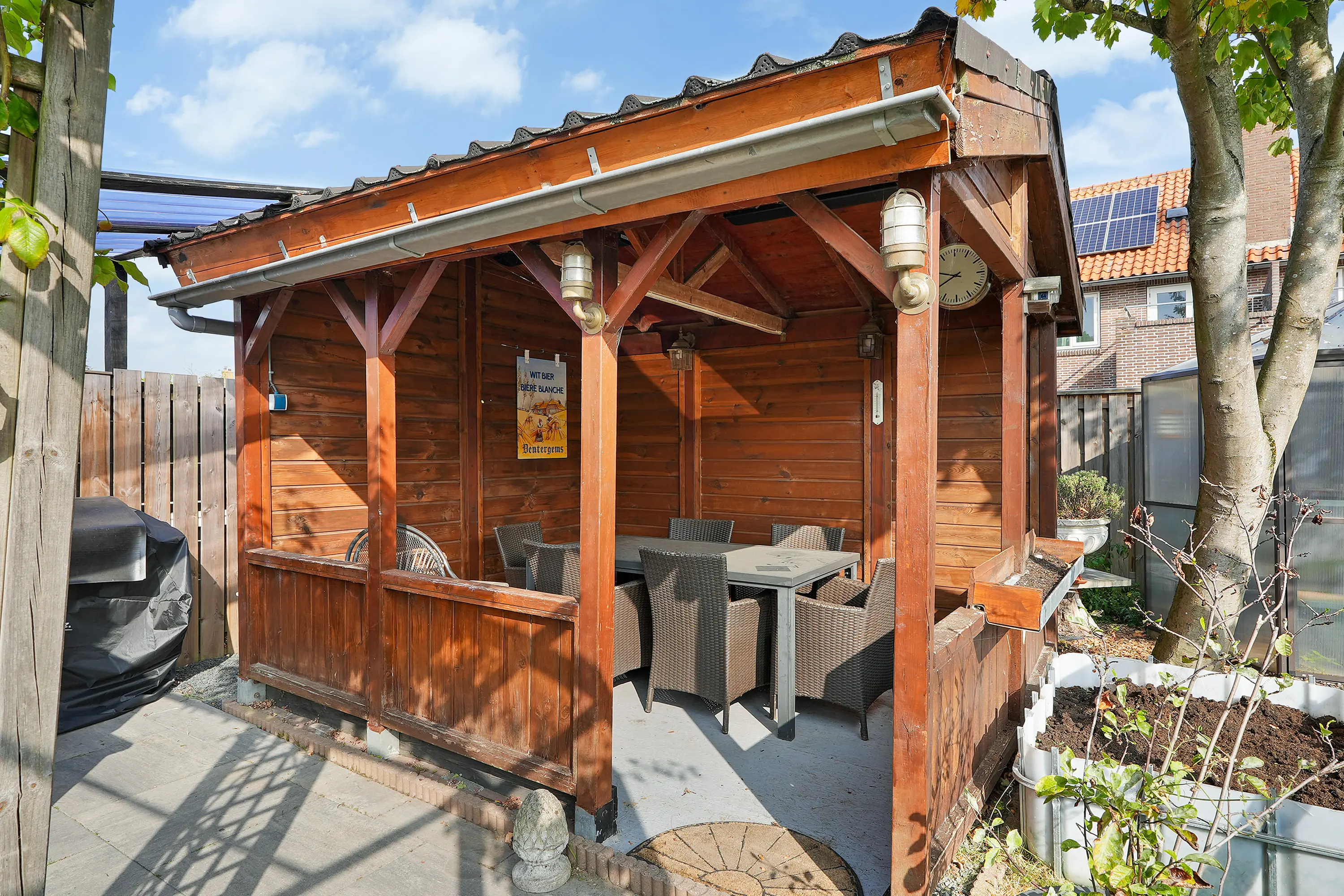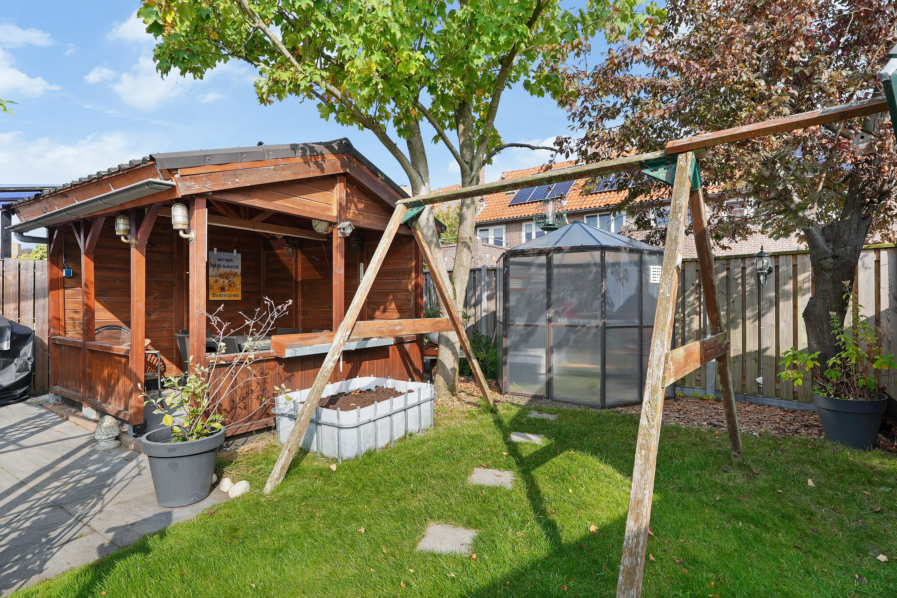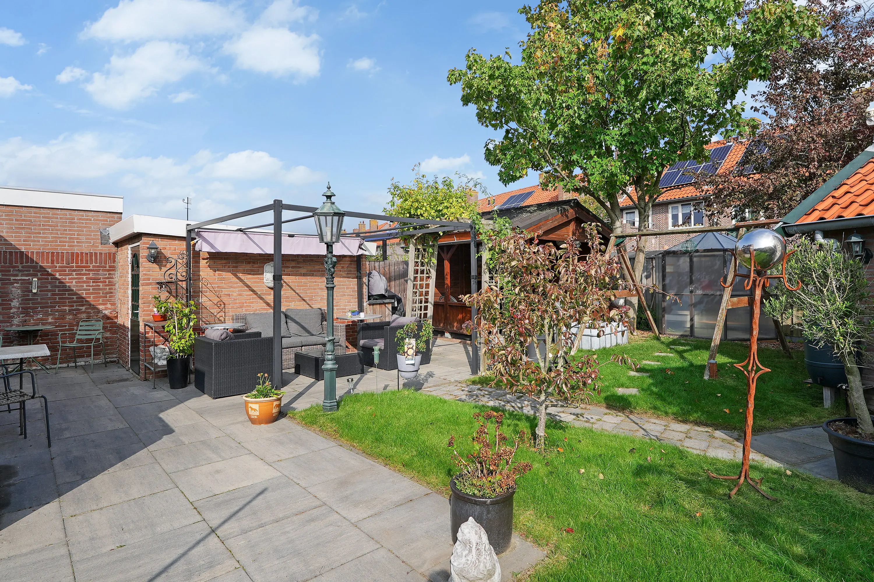 De zonnige, vrij gelegen tuin is zonder twijfel één van de grote pluspunten van deze woning. Fraai aangelegd en met veel privacy biedt deze tuin een heerlijke plek om te ontspannen. De ruime garage en veranda vormen geen losse elementen, maar zijn harmonieus geïntegreerd in het geheel. Ideaal voor opslag, hobby, werk aan huis of het stallen van een auto.